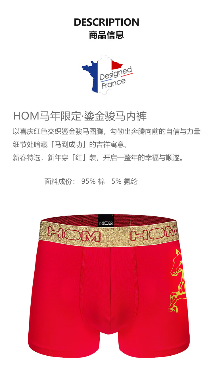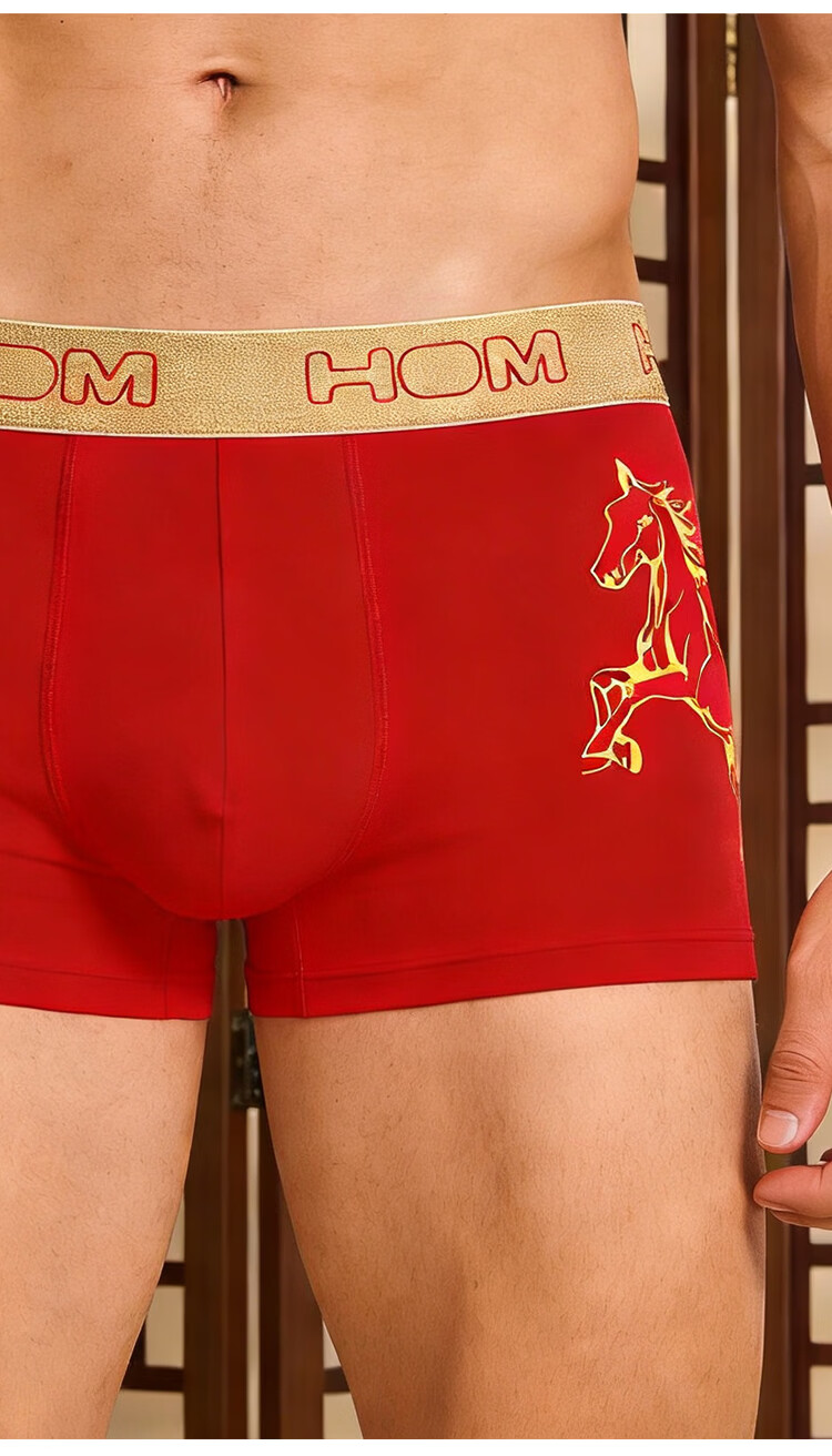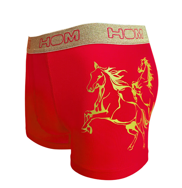 HOM马年限定男士平角裤时尚轻奢鎏金骏马红色内裤 【鎏金骏马】红色 1条 L