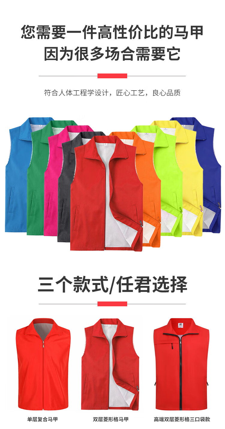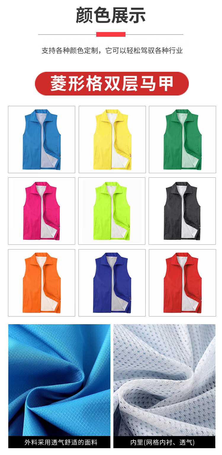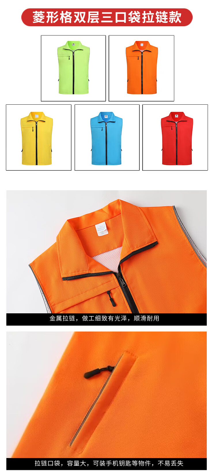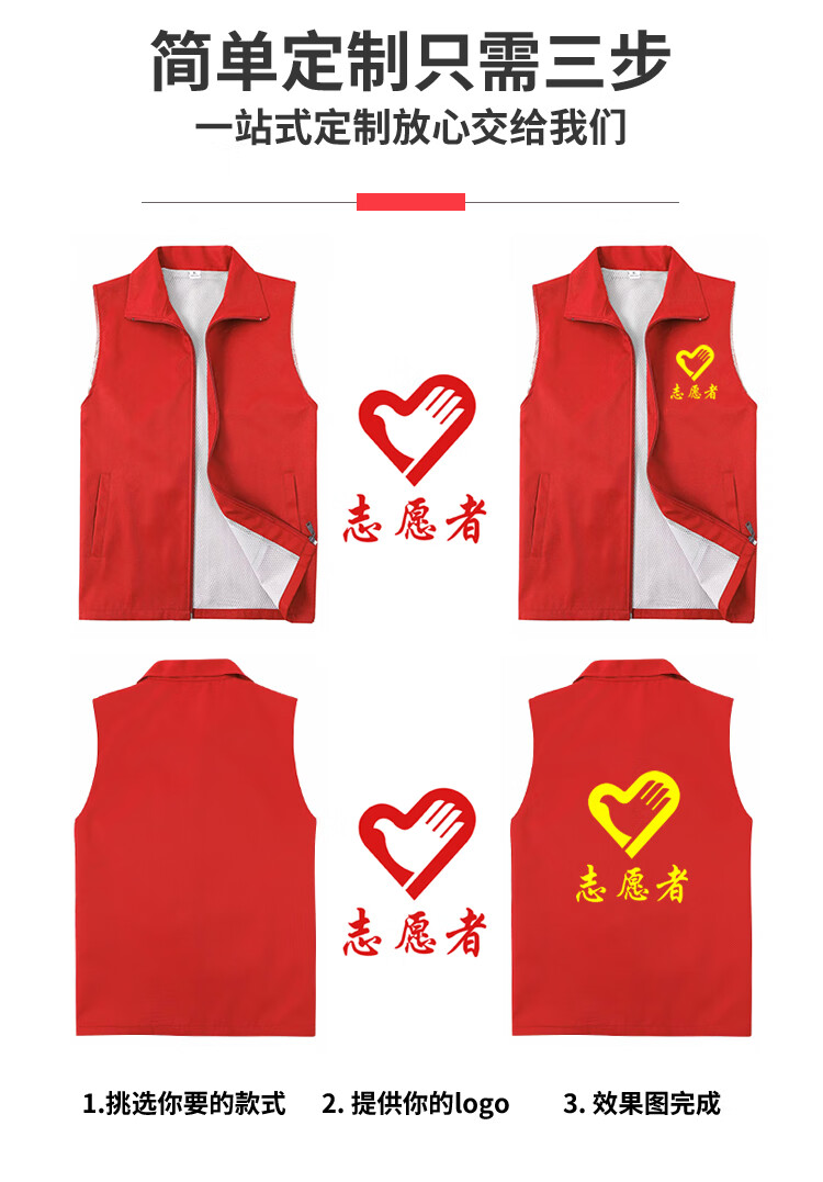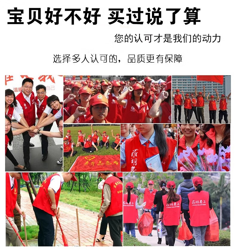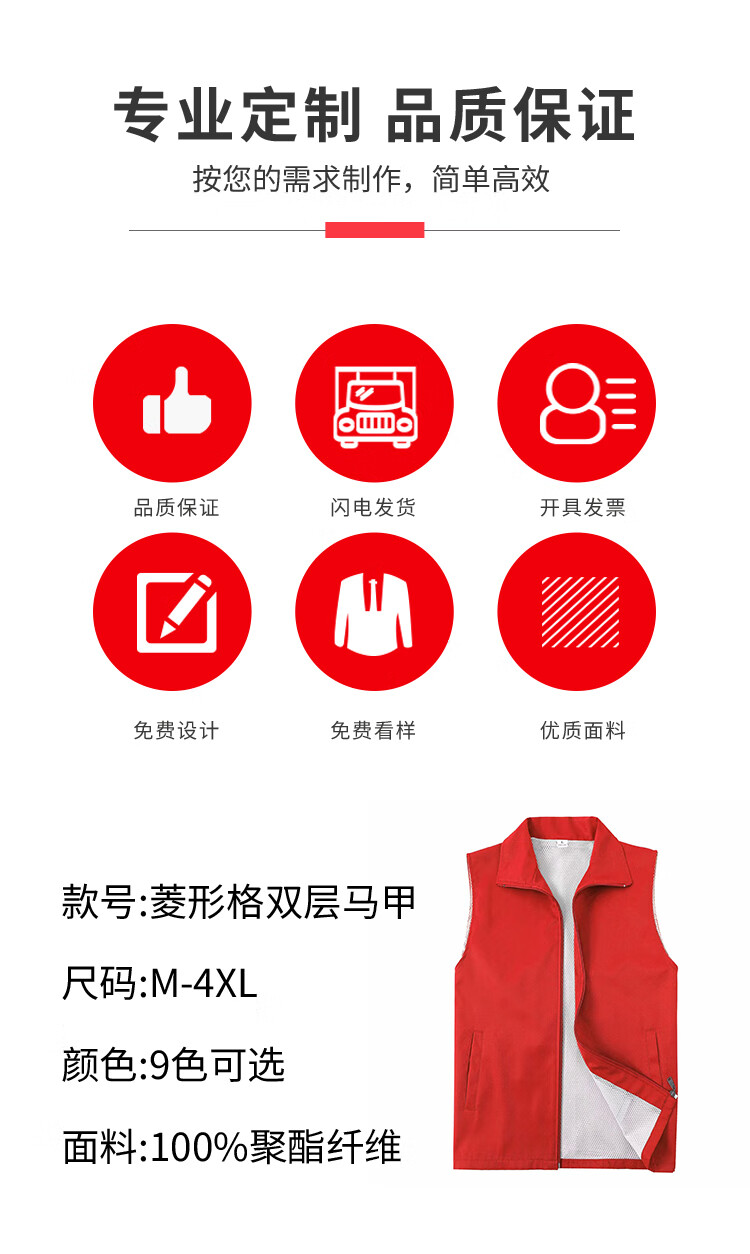 奥义驰社区志愿者马甲定制印字logo党员义工宣传公益活动护学岗红色背心 高端-菱形格双层三口袋拉链款+帽子+袖章 4XL