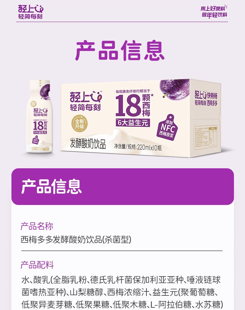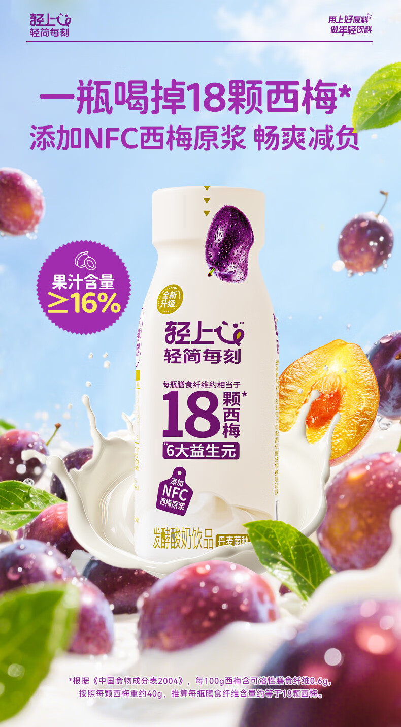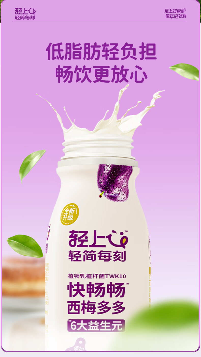 轻上【年货礼盒】轻上西梅多多精选发酵酸奶饮品营养牛奶学生早餐奶 0糖生椰1L*2瓶【无提扣】