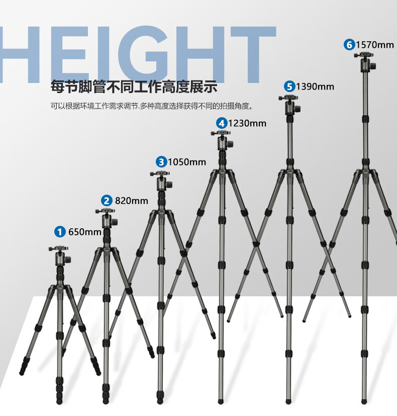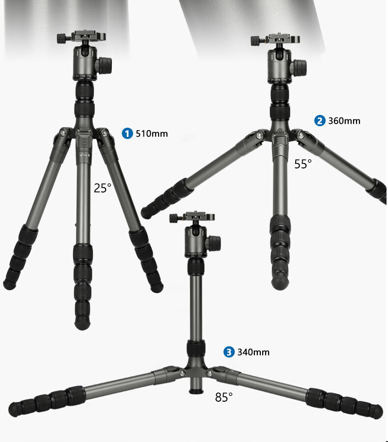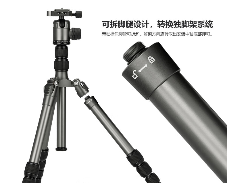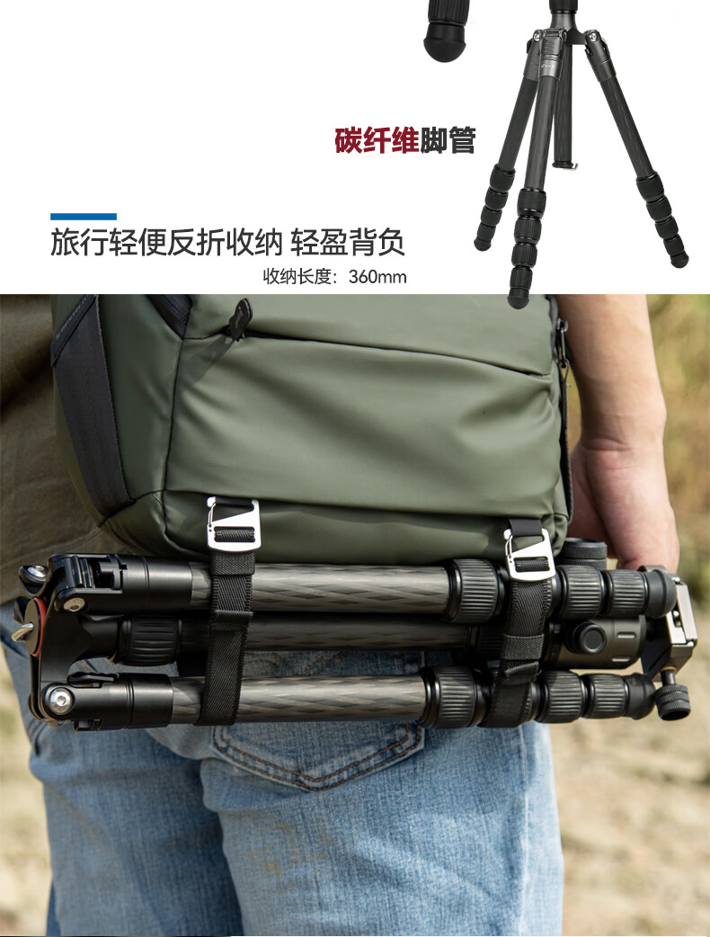仕宏便携式反折叠碳纤维三脚架可拆独脚架球形云台直播视频摄影支架 锖色-碳纤维 碳纤维