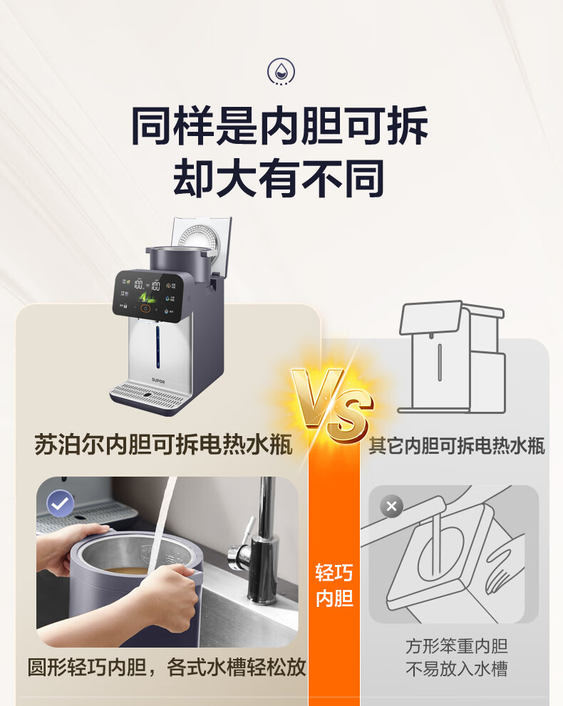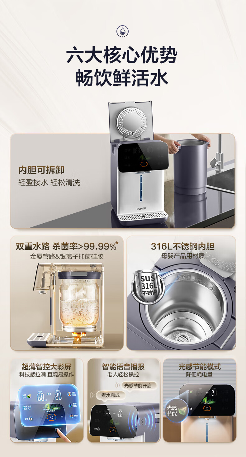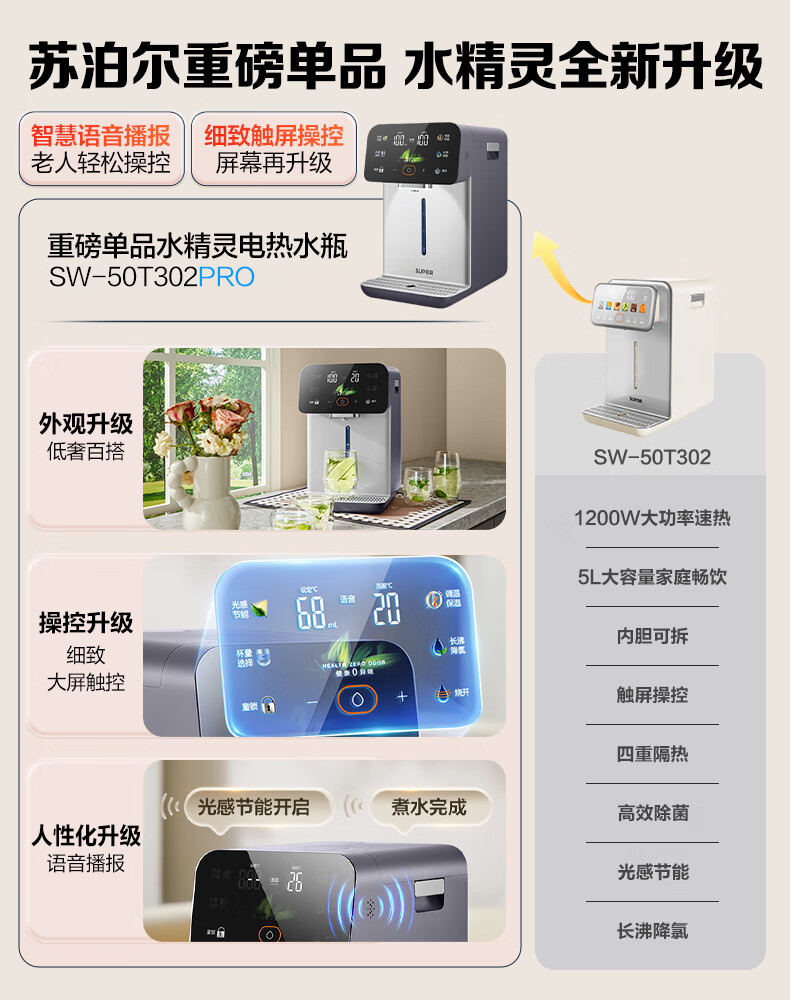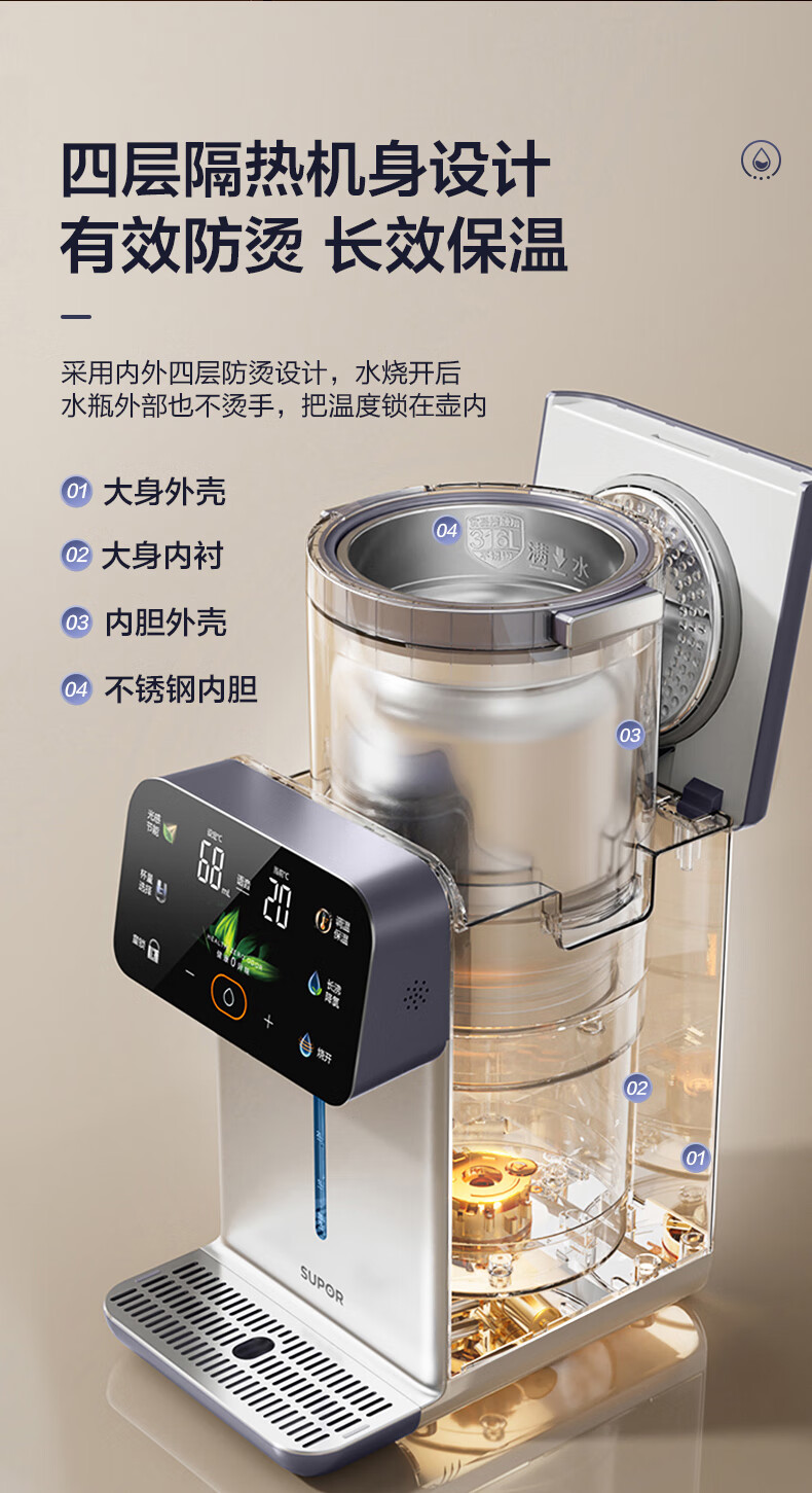 苏泊尔(SUPOR)水精灵烧水壶5L大容量 恒温保温一体电热水壶316L母婴级可拆内胆自动断电台式饮水机家用50T302Pro