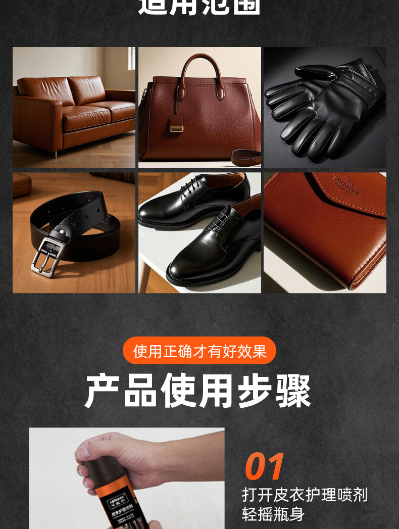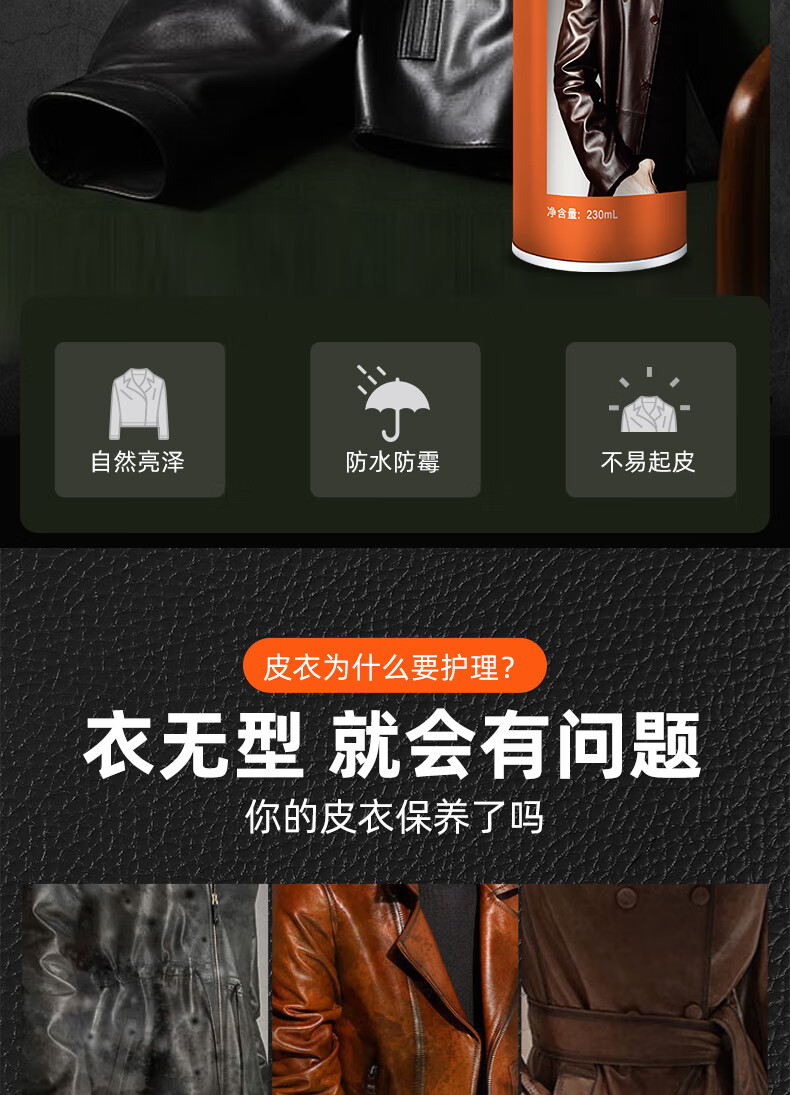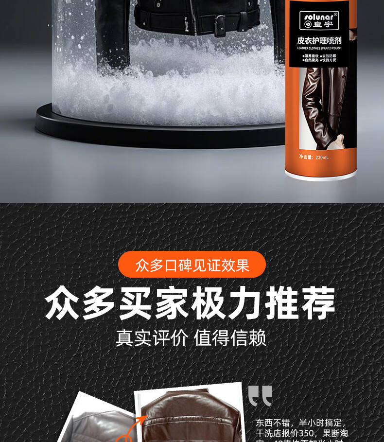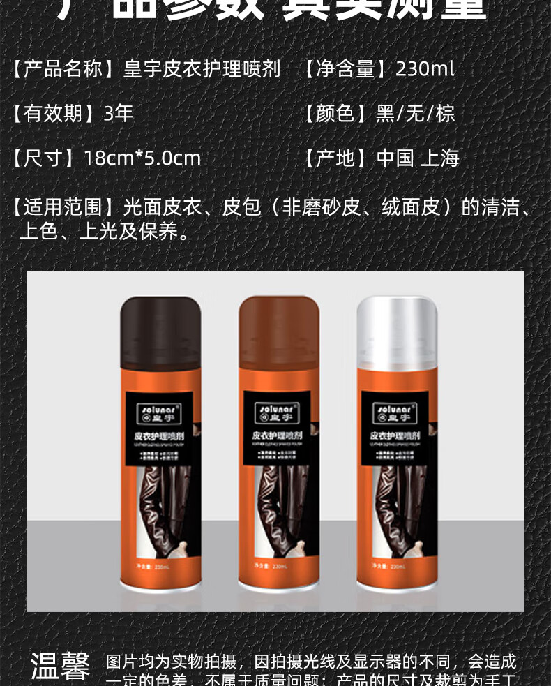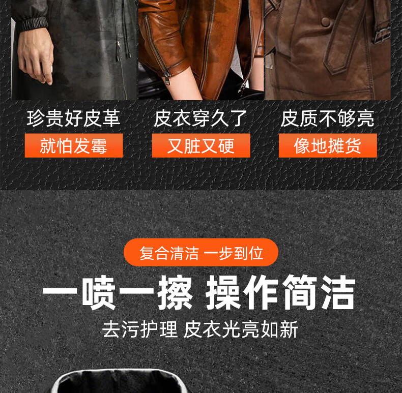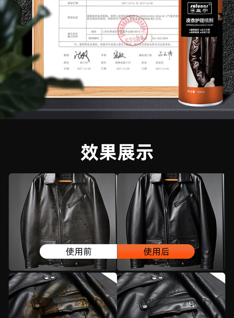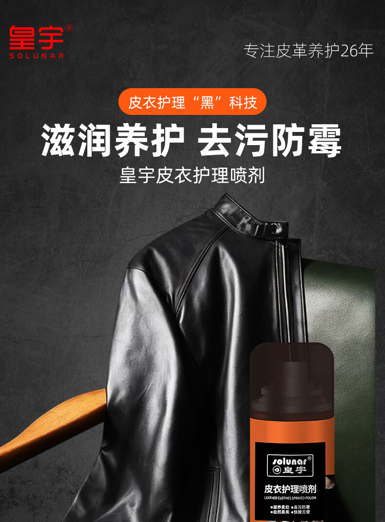 皇宇 皮衣护理喷剂保养油皮夹克皮具上色清洁黑色230ml新老包装随机发