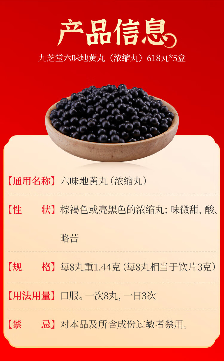 九芝堂六味地黄丸浓缩丸618丸*5盒补肾京东自营六味地黄丸OTC补肾强身阳痿早泄壮阳药 头晕耳鸣潮热盗汗