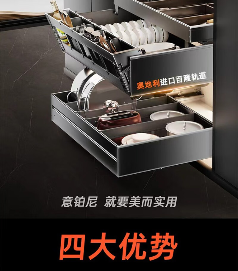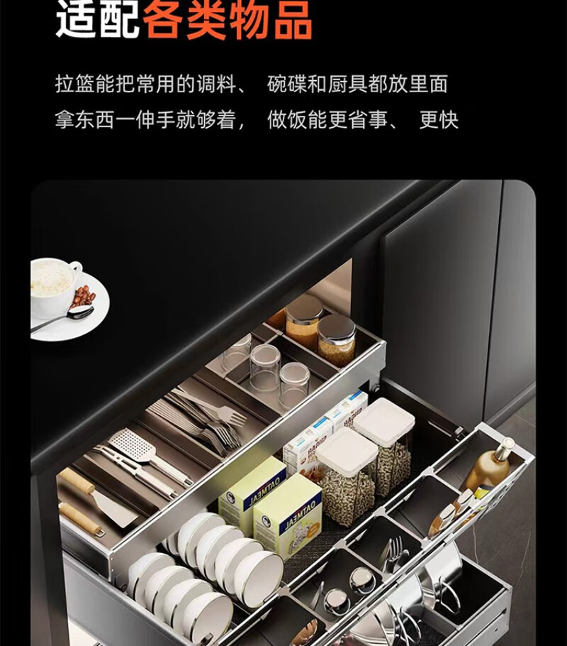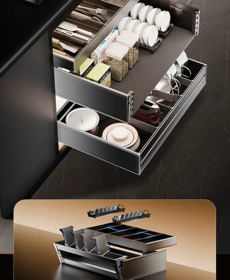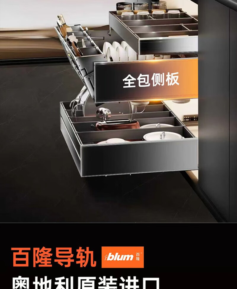 德米莫2025进口百隆拉篮厨房橱柜碗篮抽屉式双层碗碟抽碗柜调味抽中抽 定制尺寸联系客服