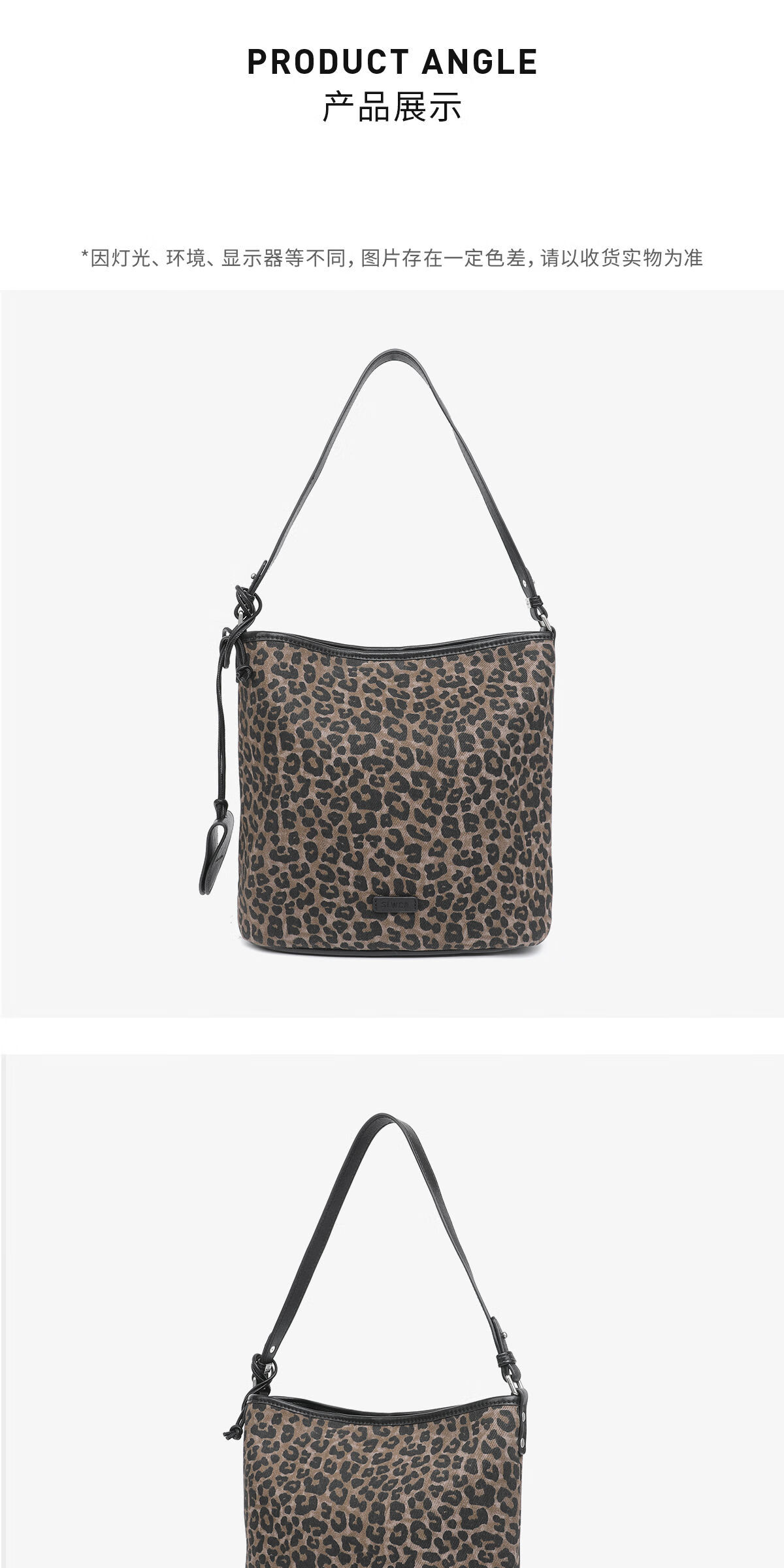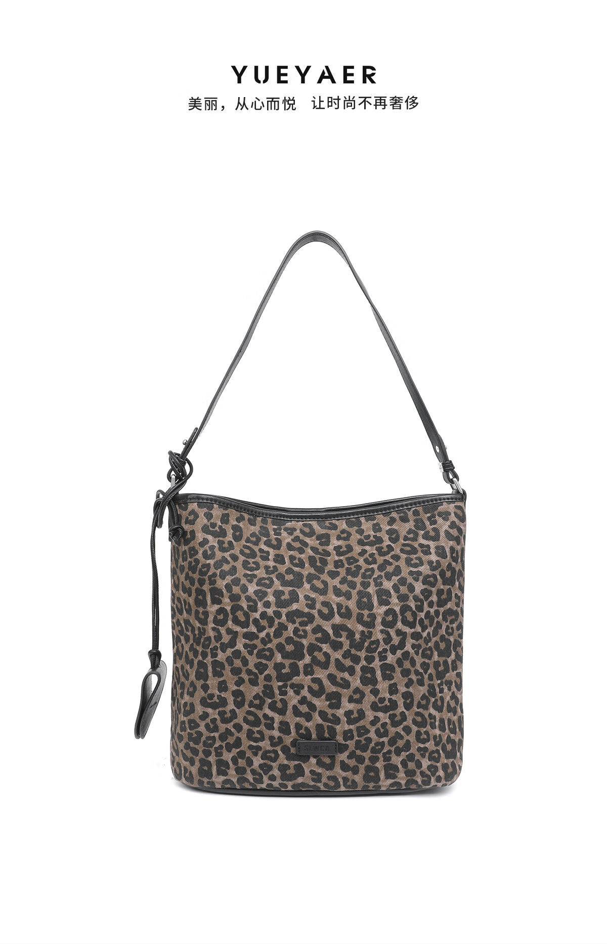 月芽儿豹纹帆织物休闲水桶女包2025新款时尚气质韩版手提复古单肩包 豹纹73