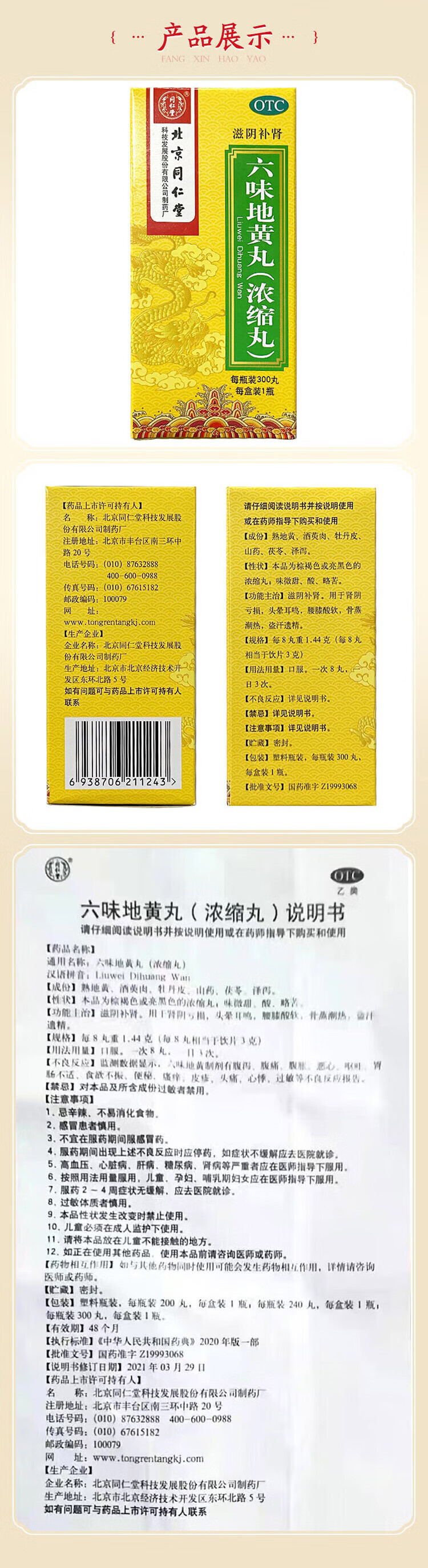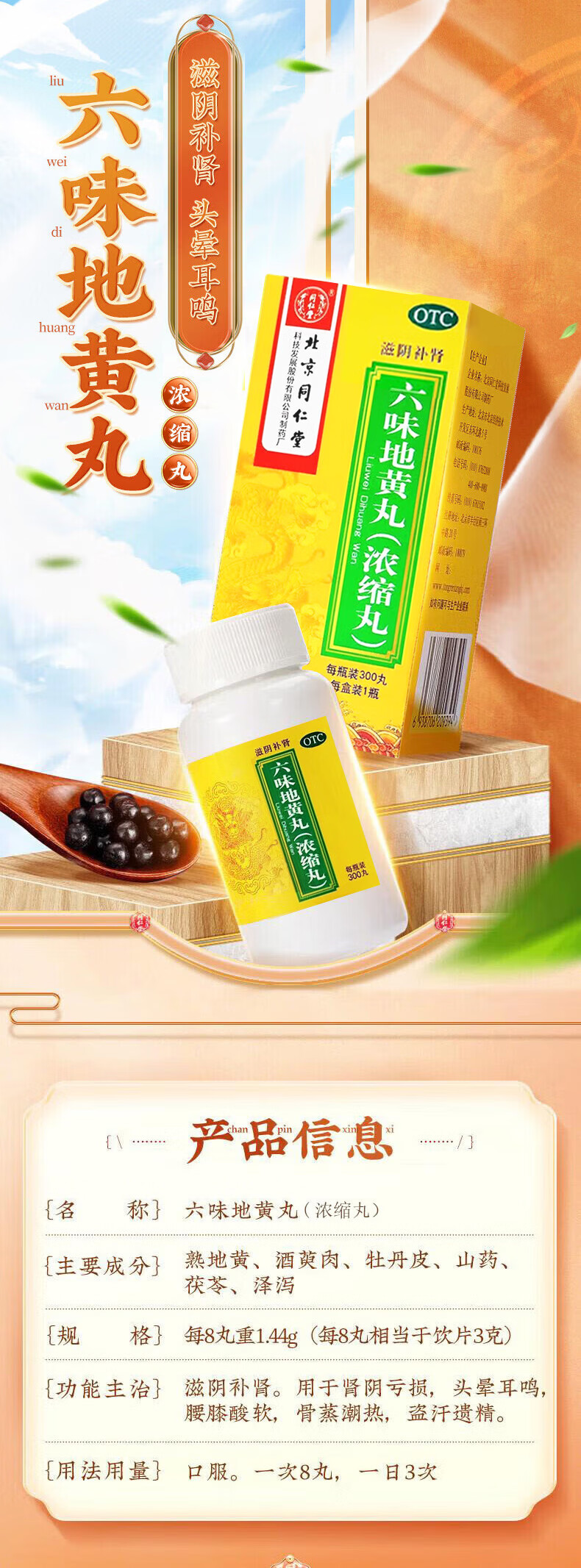 北京同仁堂六味地黄丸(浓缩丸)300丸 遗精盗汗头晕耳鸣腰膝酸软男科用药非处方药京东自营大药房