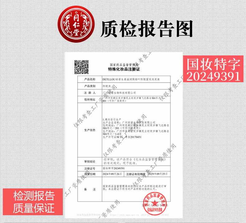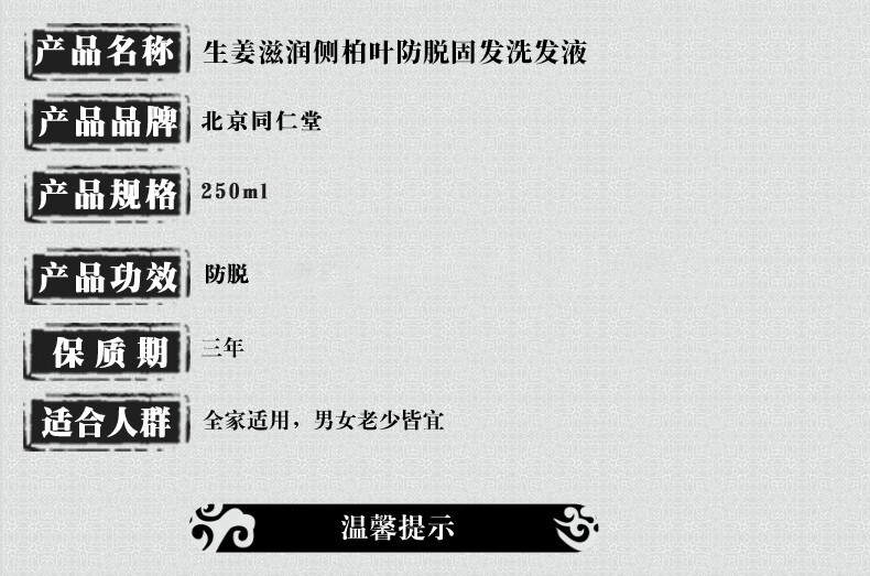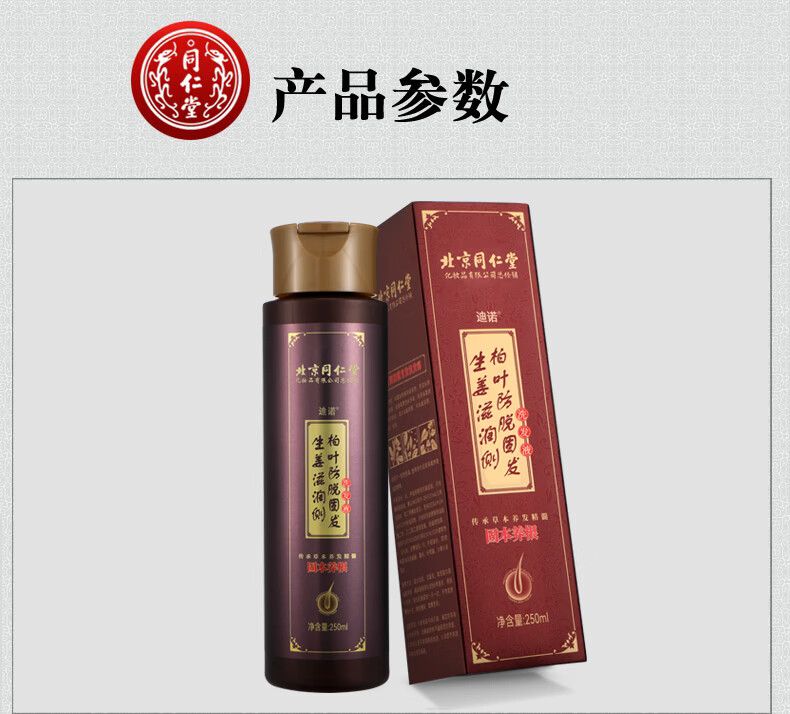 同仁堂(TRT)防脱发控油洗发水生姜何首乌侧柏叶精华男女士全家通用洗发露 250ml*1瓶装