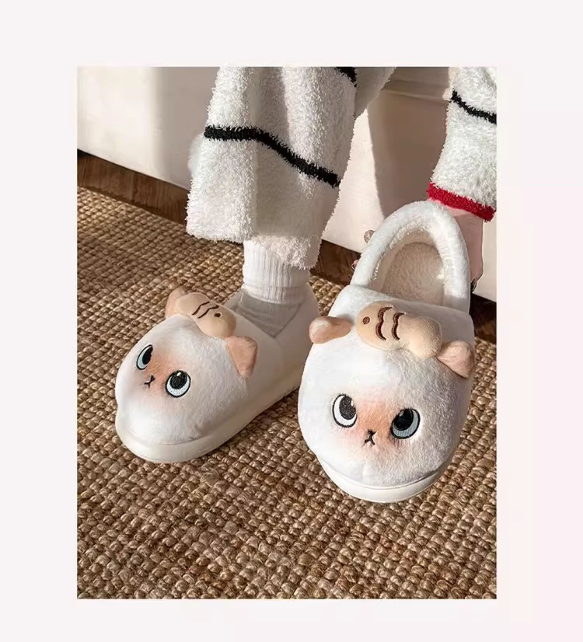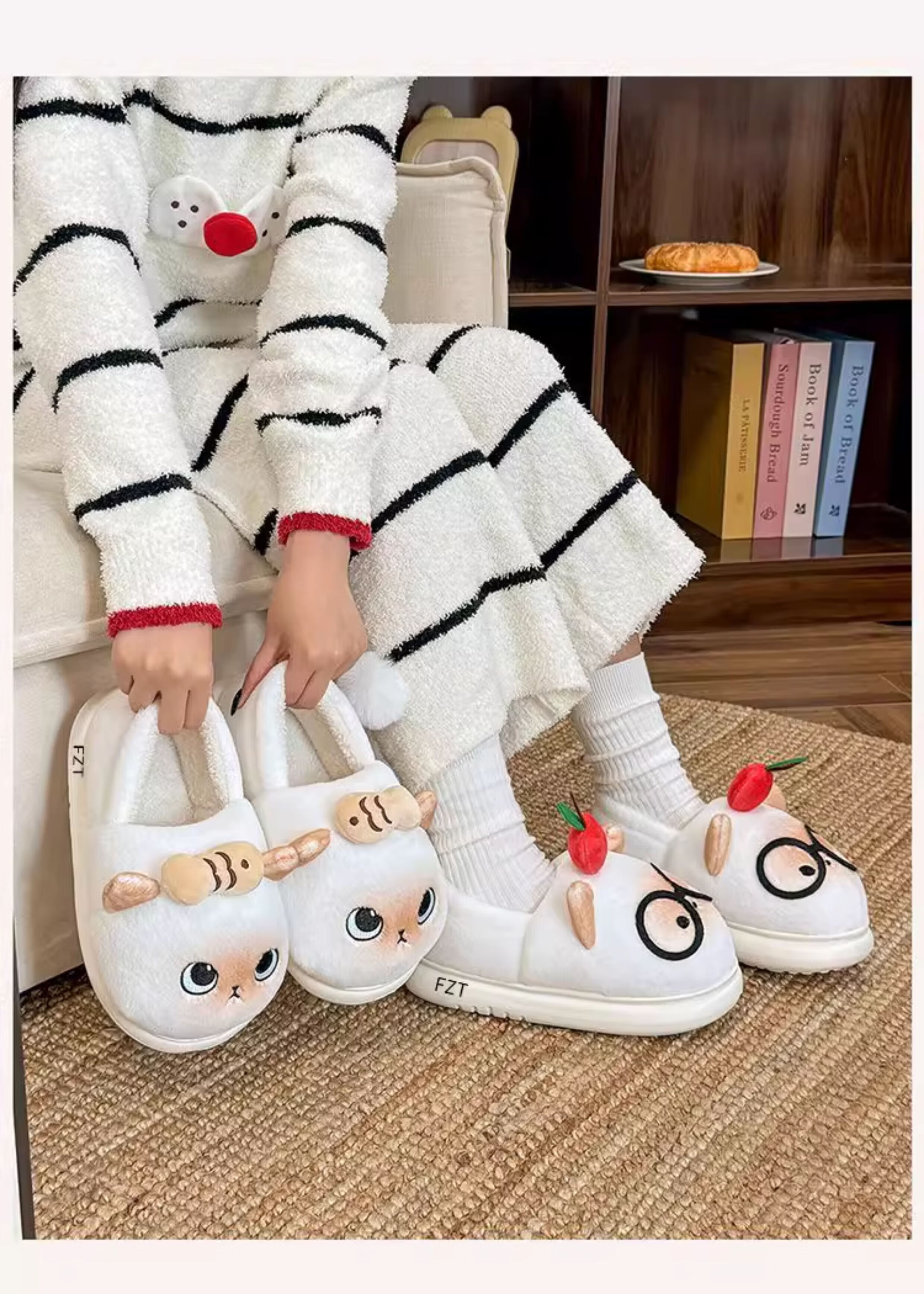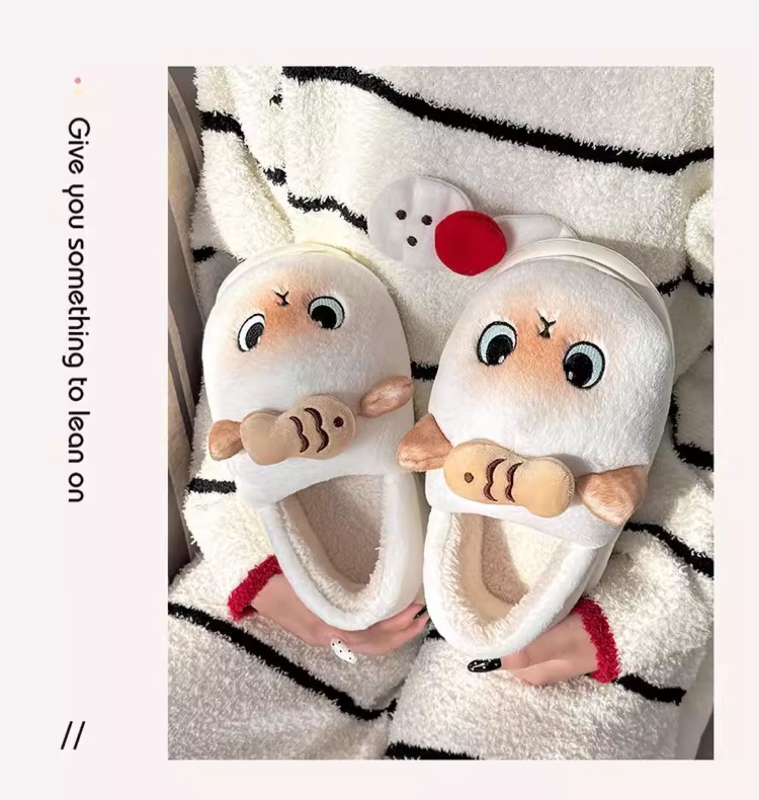 FZT可爱包跟棉拖鞋女款秋冬季2025新款家居室内卡通毛绒保暖外穿棉鞋 【白色小鱼】软萌糯叽 40-41 【标准码内长24.5cm】