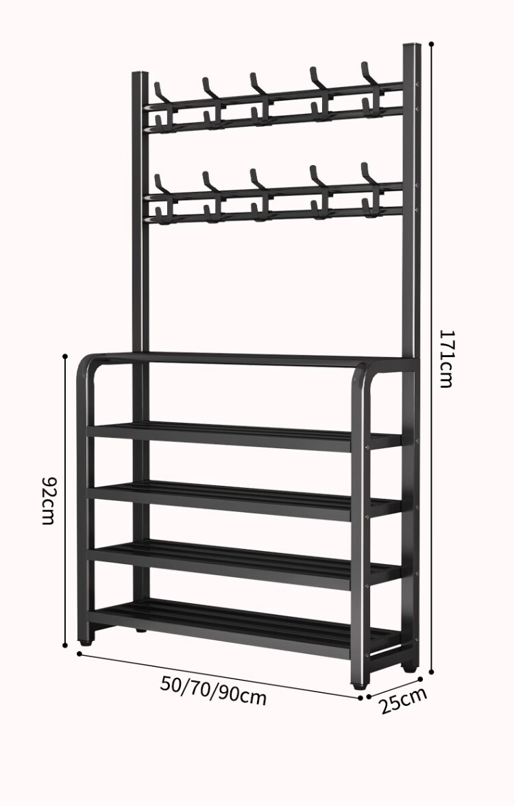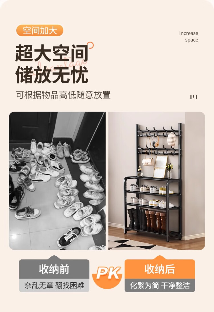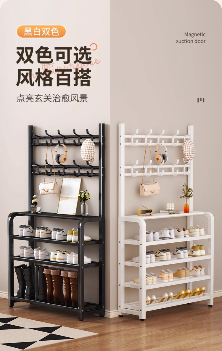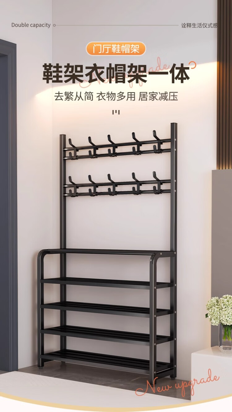 衣炫鞋架多层家用门口衣帽架入户门挂衣架一体出租房用鞋架子简易鞋柜 高级黑-5层50cm/层板款【6挂钩|升级加固】约放8双鞋