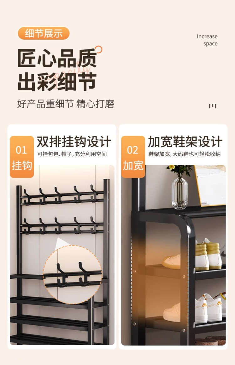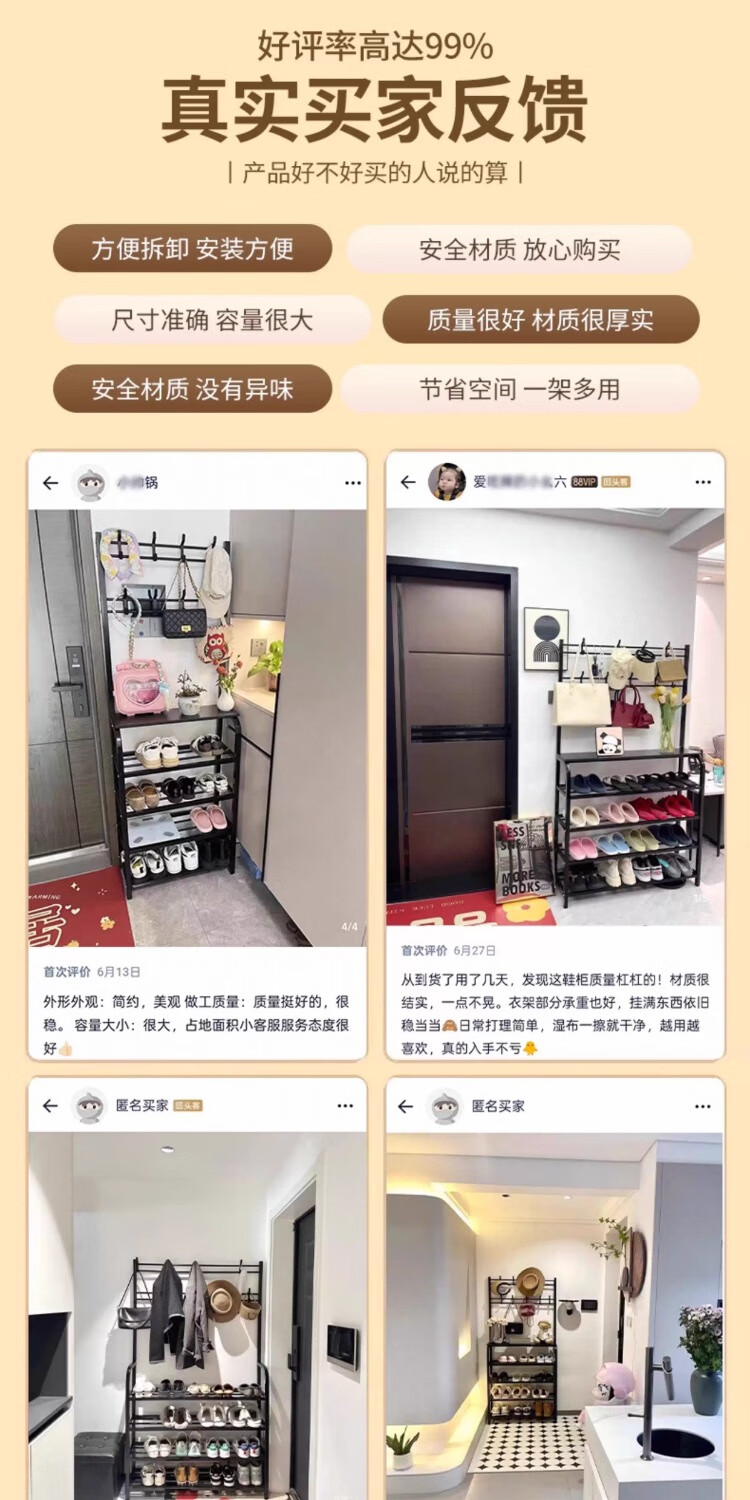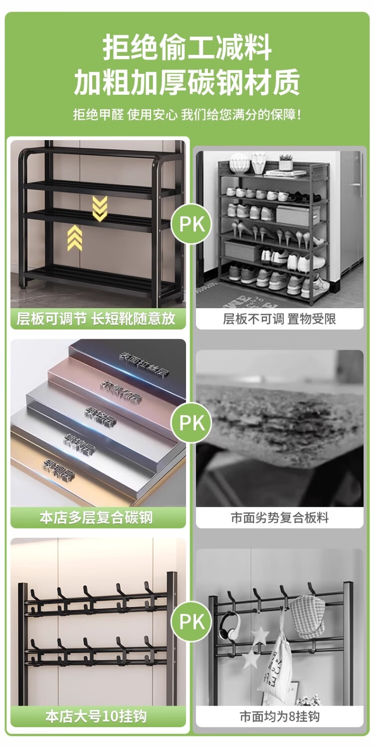 衣炫鞋架多层家用门口衣帽架入户门挂衣架一体出租房用鞋架子简易鞋柜 高级黑-5层50cm/层板款【6挂钩|升级加固】约放8双鞋
