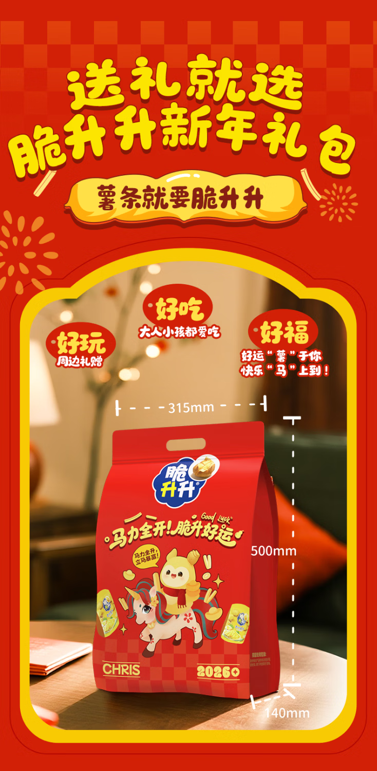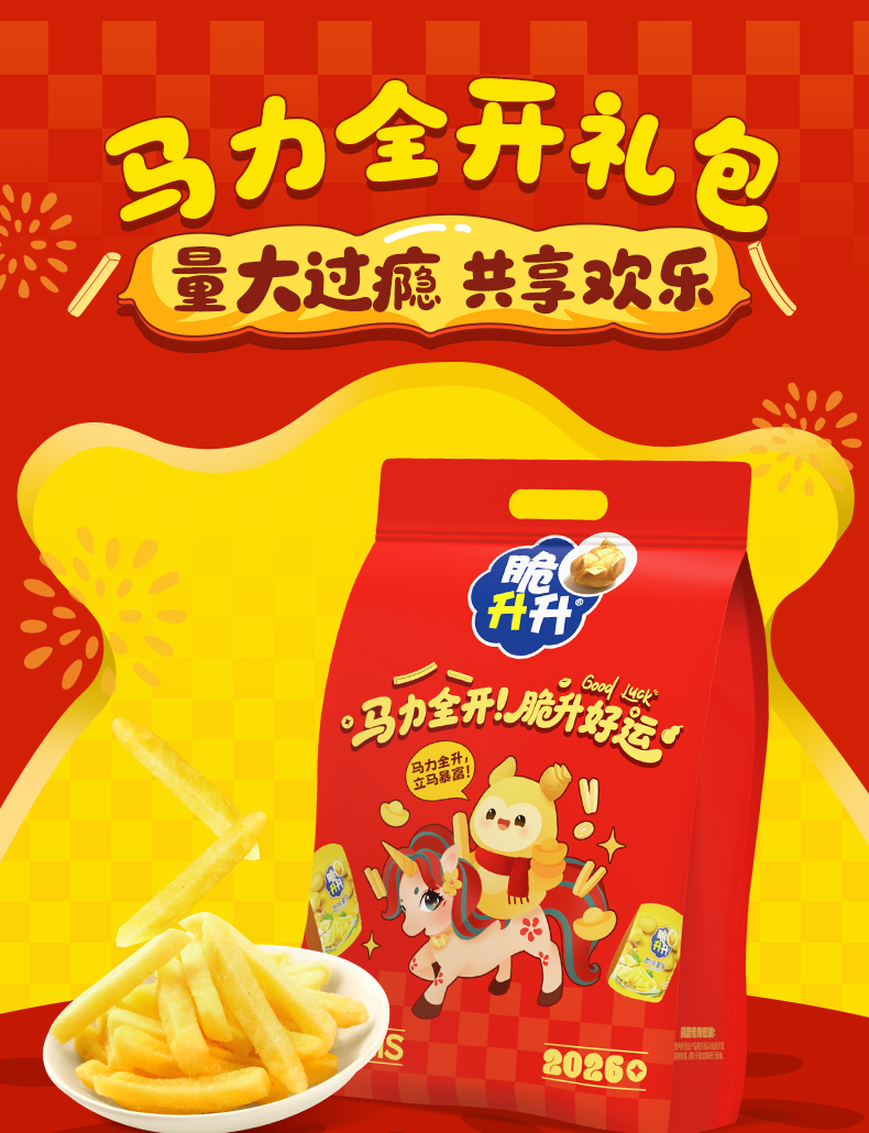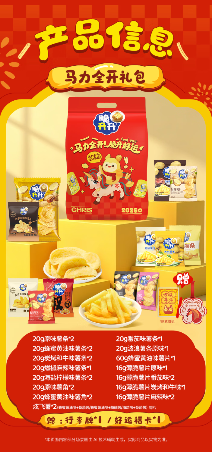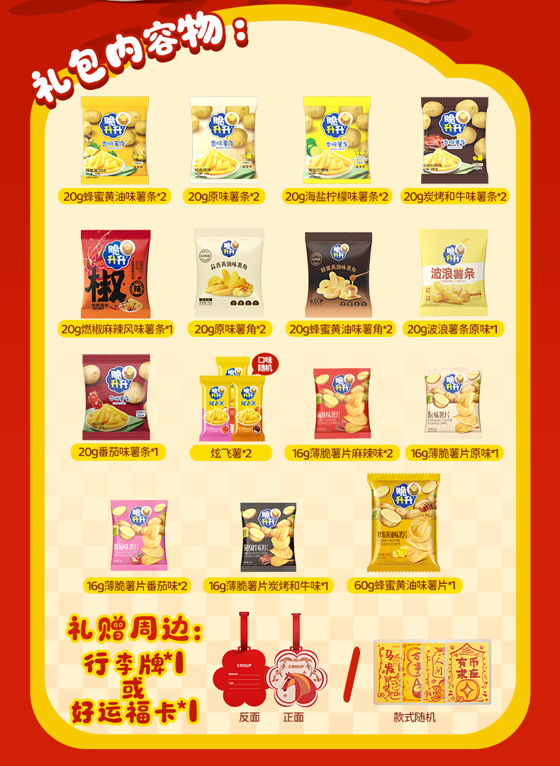 脆升升马力全开新年礼包528g含新年周边薯片零食薯条脆生生零食大礼包 马力全开礼包-好运福卡