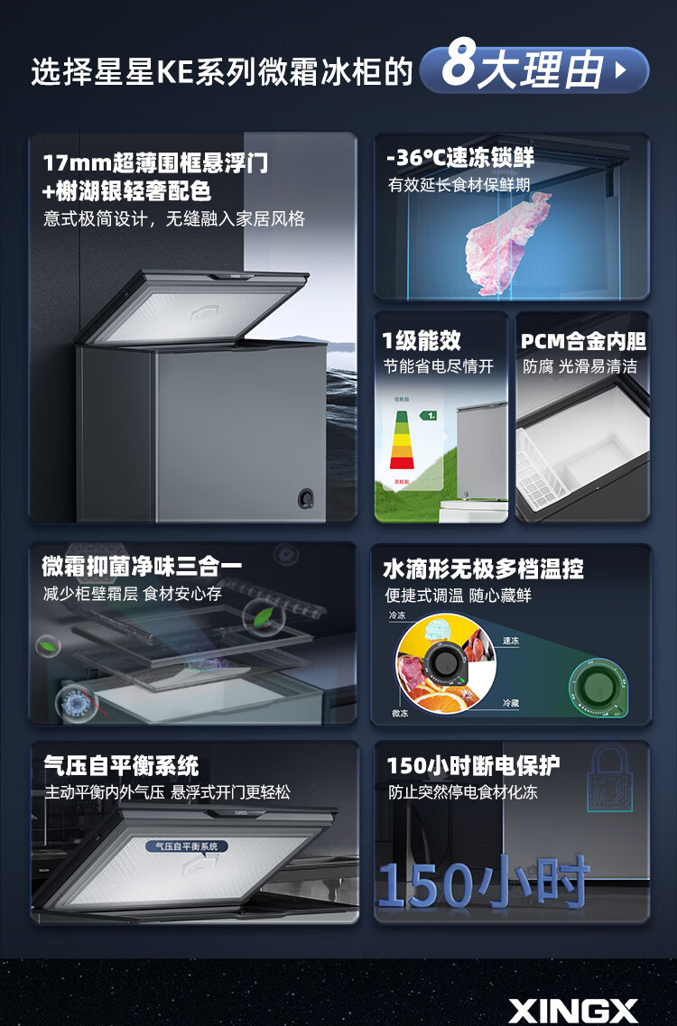 星星(XINGX)200L单温家用小型冰柜 大容量减霜保鲜净味节能一级能效冰箱冷藏冷冻两用冷柜BD/BC-200KE国家补贴