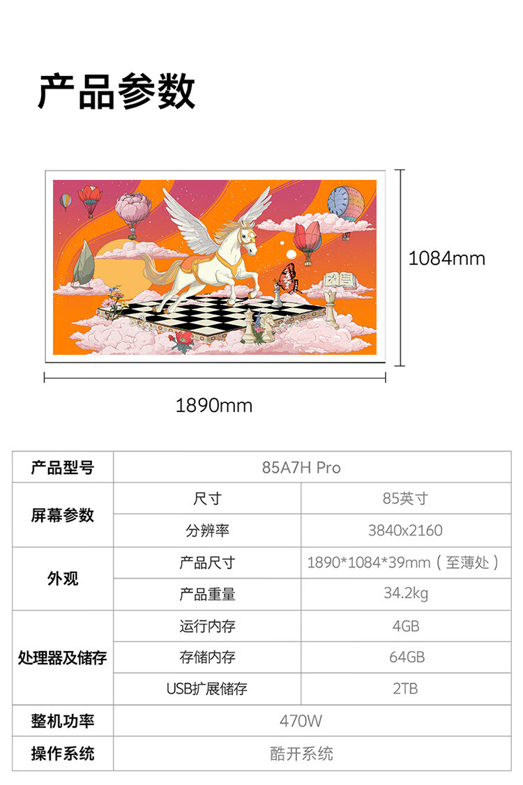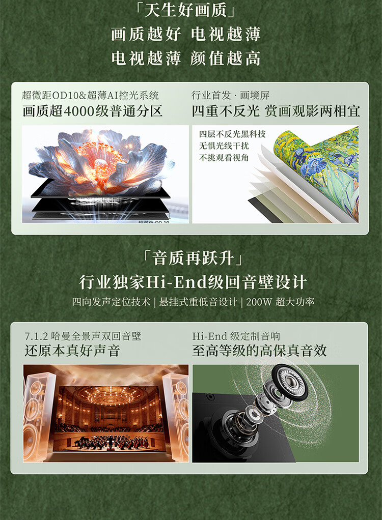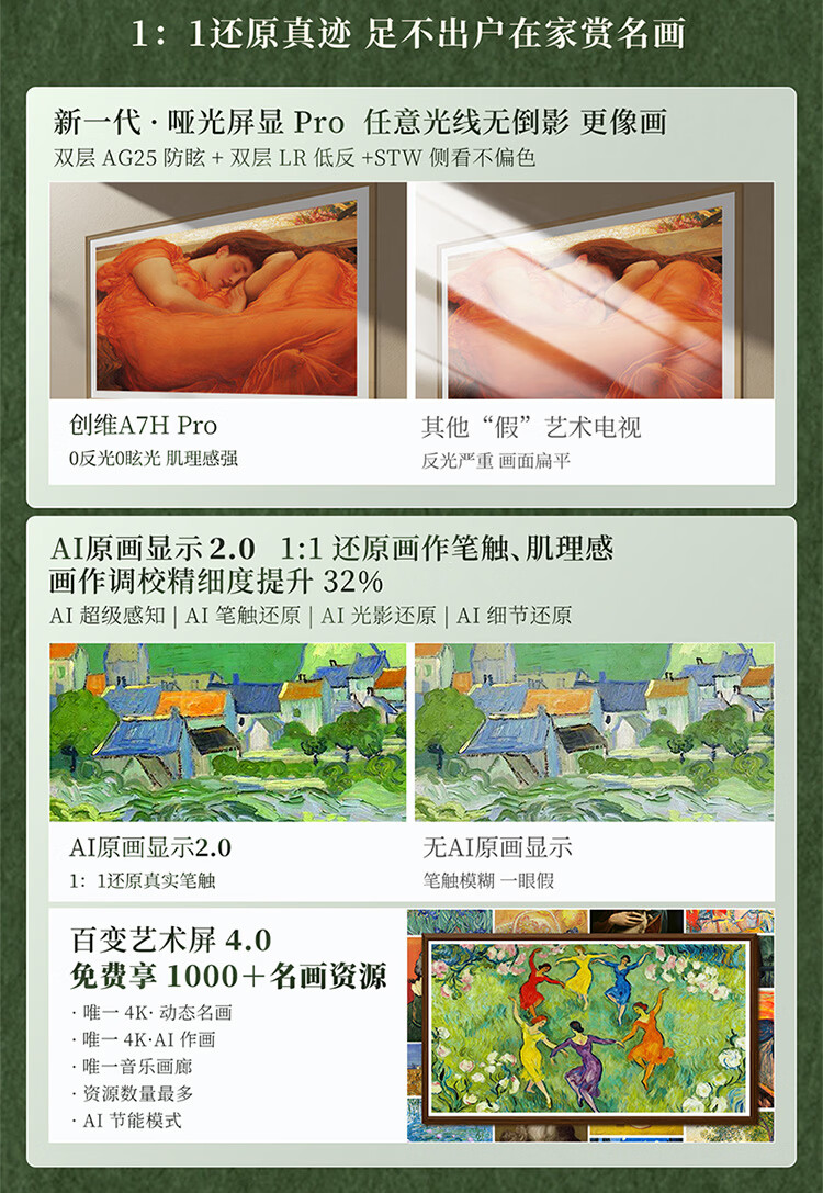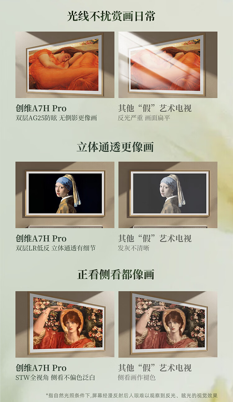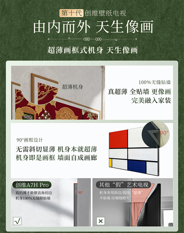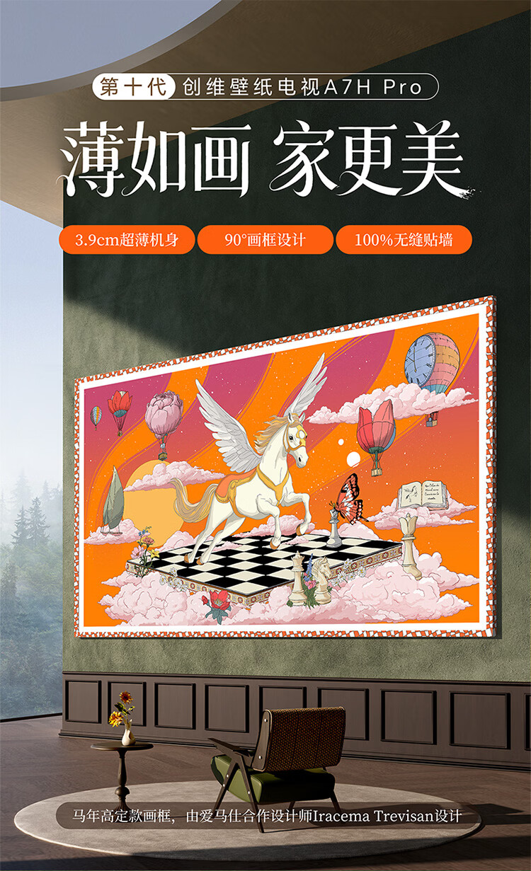 创维电视85A7H Pro 85英寸艺术壁纸电视Mini LED 3.9cm超薄无缝贴墙平板电视机 家电国家补贴A7F升级款