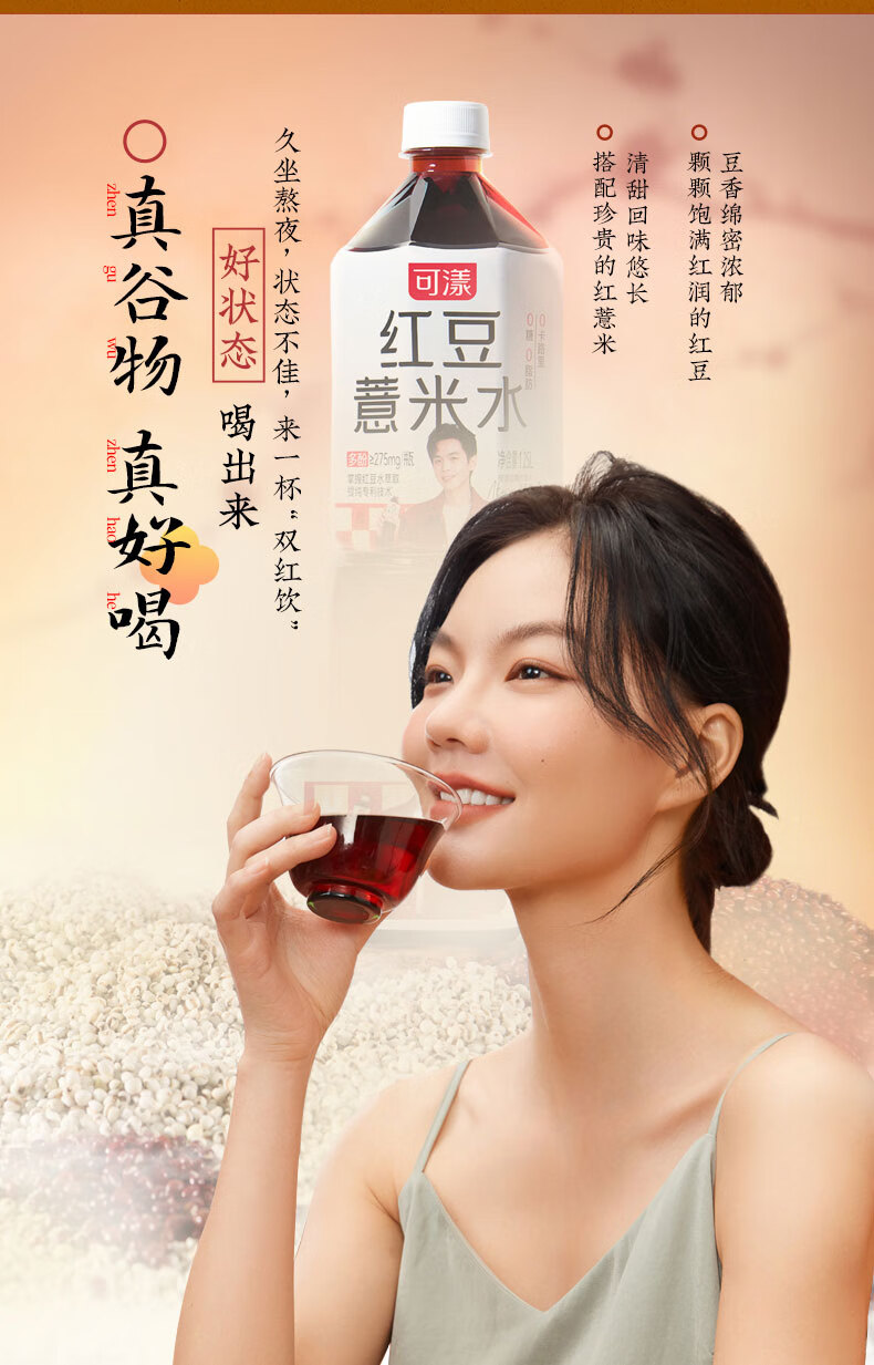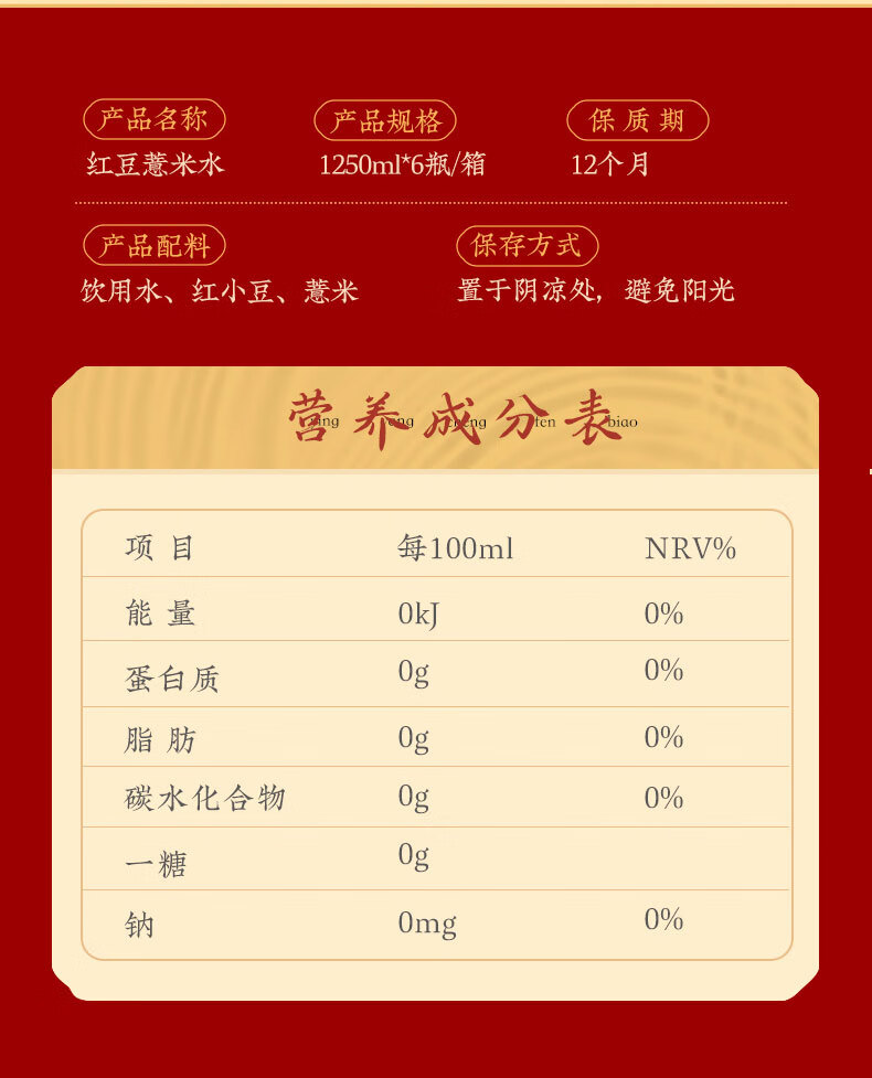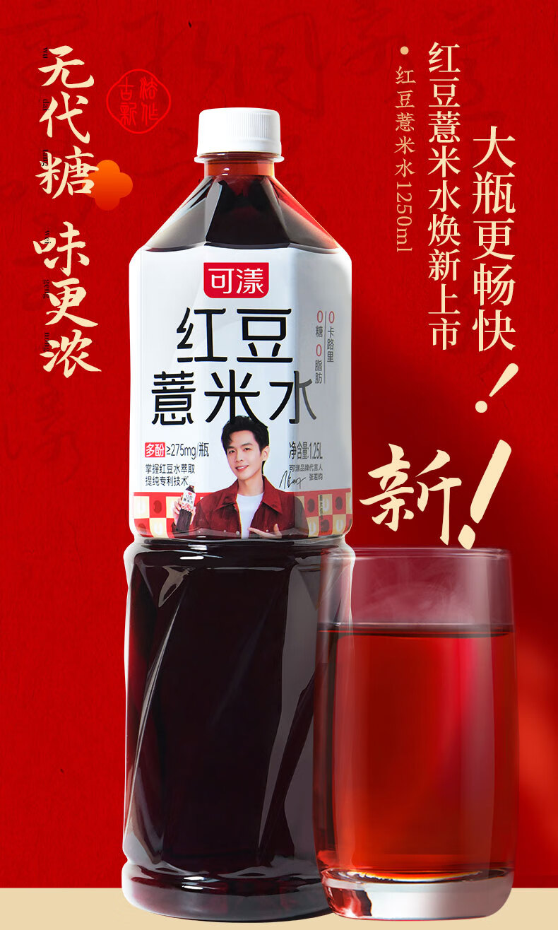 可漾红豆薏米水0卡无脂肪运动薏仁无糖饮料1.25L 1.25L*6瓶装