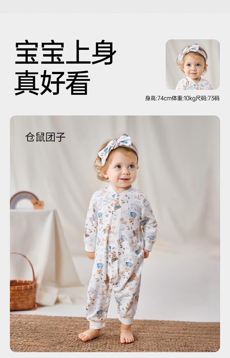 欧孕婴儿连体衣秋季男女宝宝衣服新生儿纯棉长袖四季爬爬服居家睡衣 仓鼠团子【100%新疆棉】 100cm 【推荐身高92-105cm】