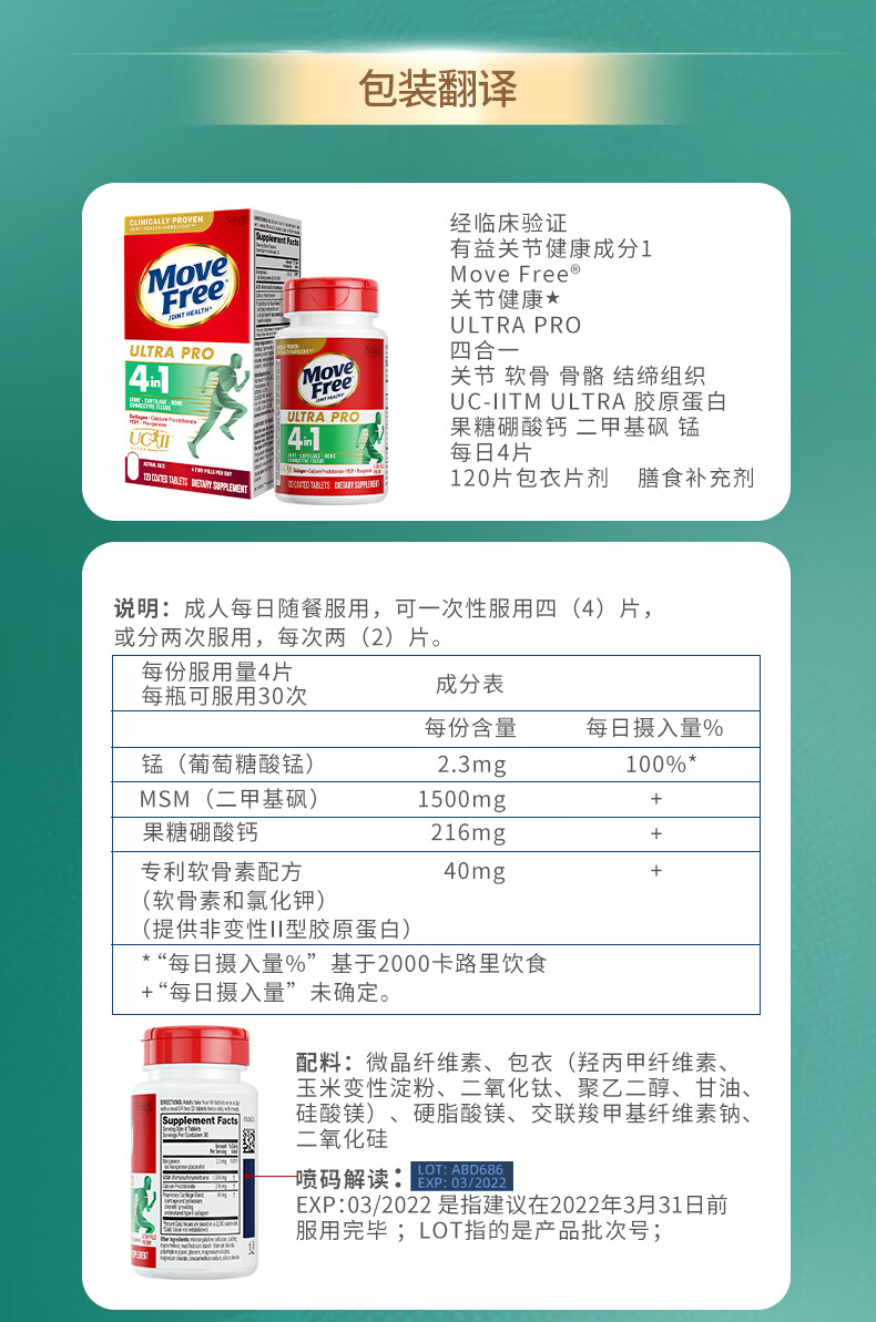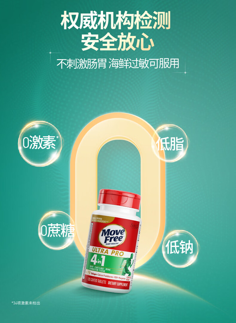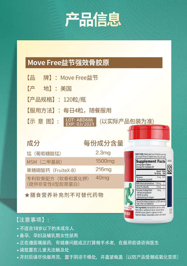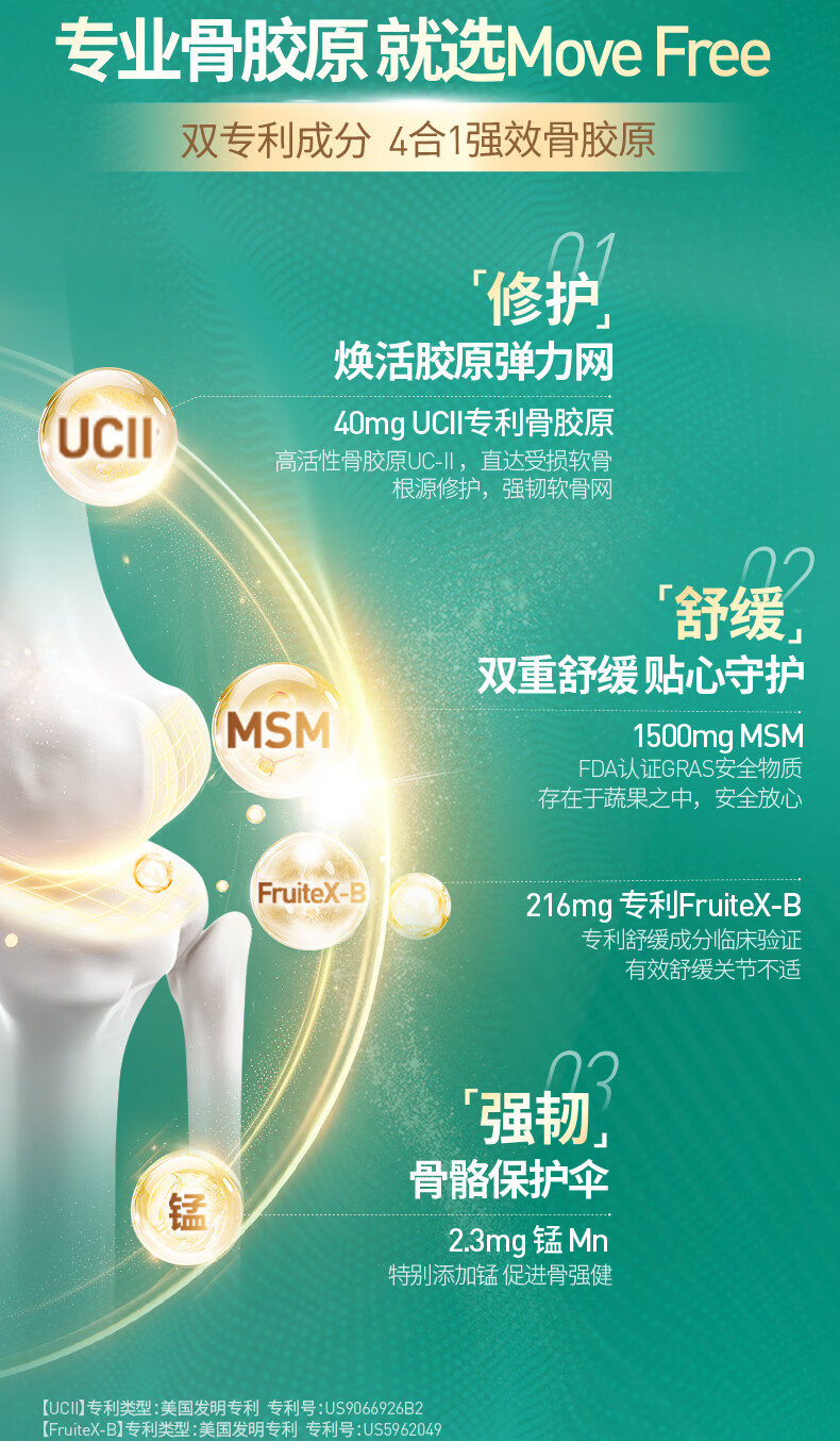益节Move Free 升级版骨胶原蛋白UC2 维骨力MSM锰 成人中老年护关节 【升级版】舒缓修护骨胶原 120粒*1瓶