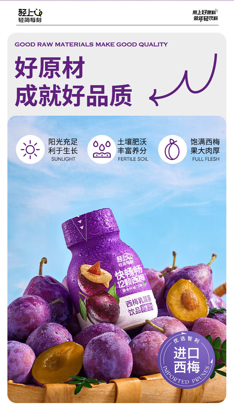 轻上(LIGHT UPPER)轻上西梅乳酸菌饮品西梅饮富含膳食纤维优酸乳饮料0脂肪瓶装饮料 138mL轻上西梅乳酸菌1箱15瓶 无规格