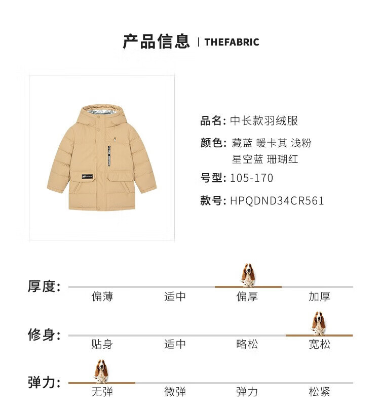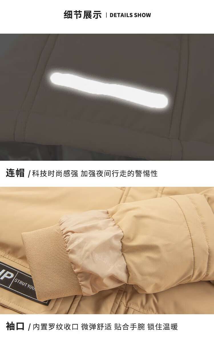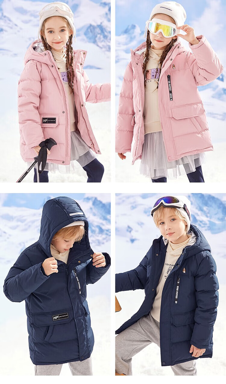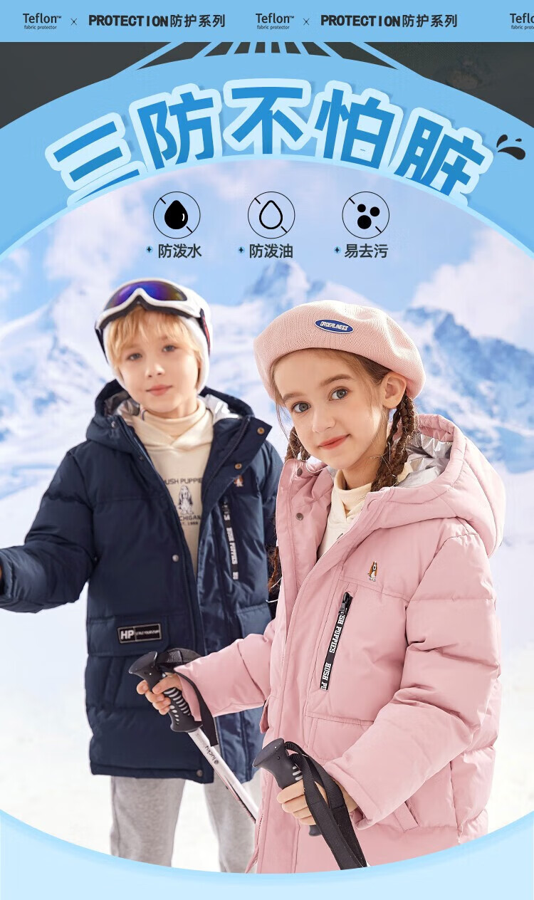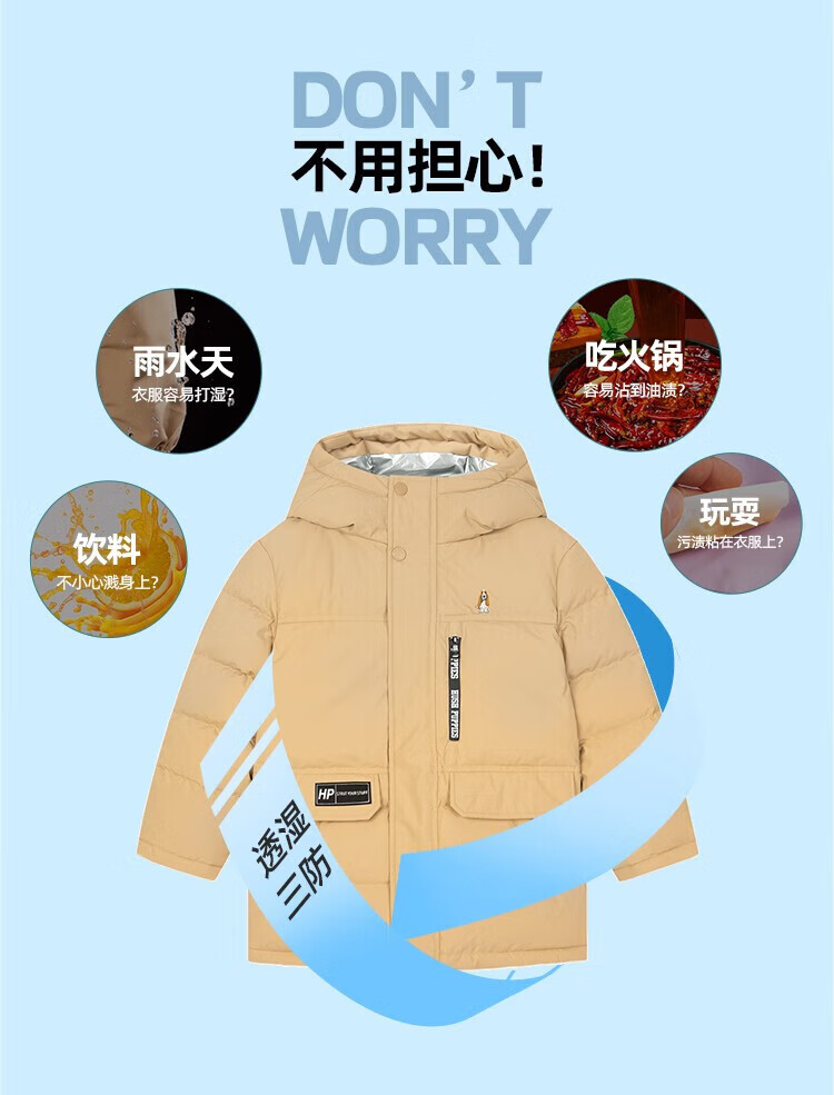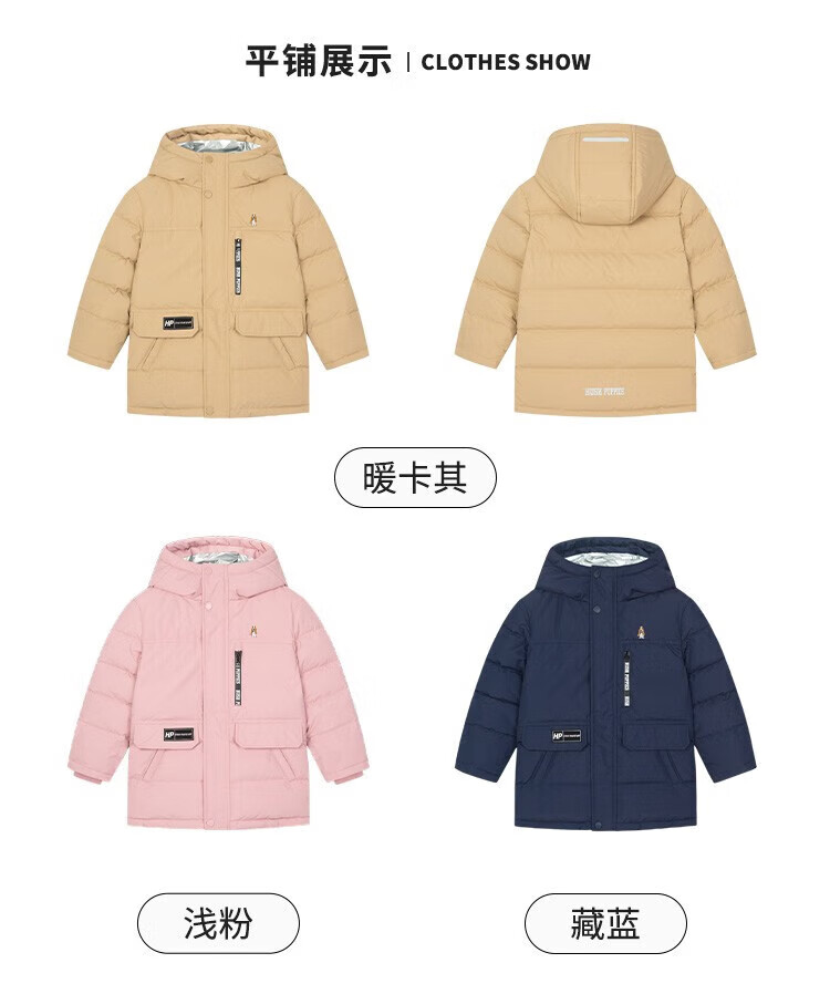 暇步士(Hush Puppies)童装儿童羽绒服男童女童冬季新款男女大童保暖连帽羽绒服 暖卡其 【三防】 130