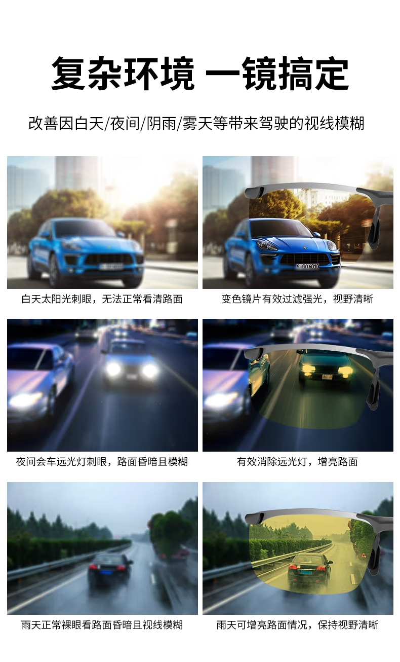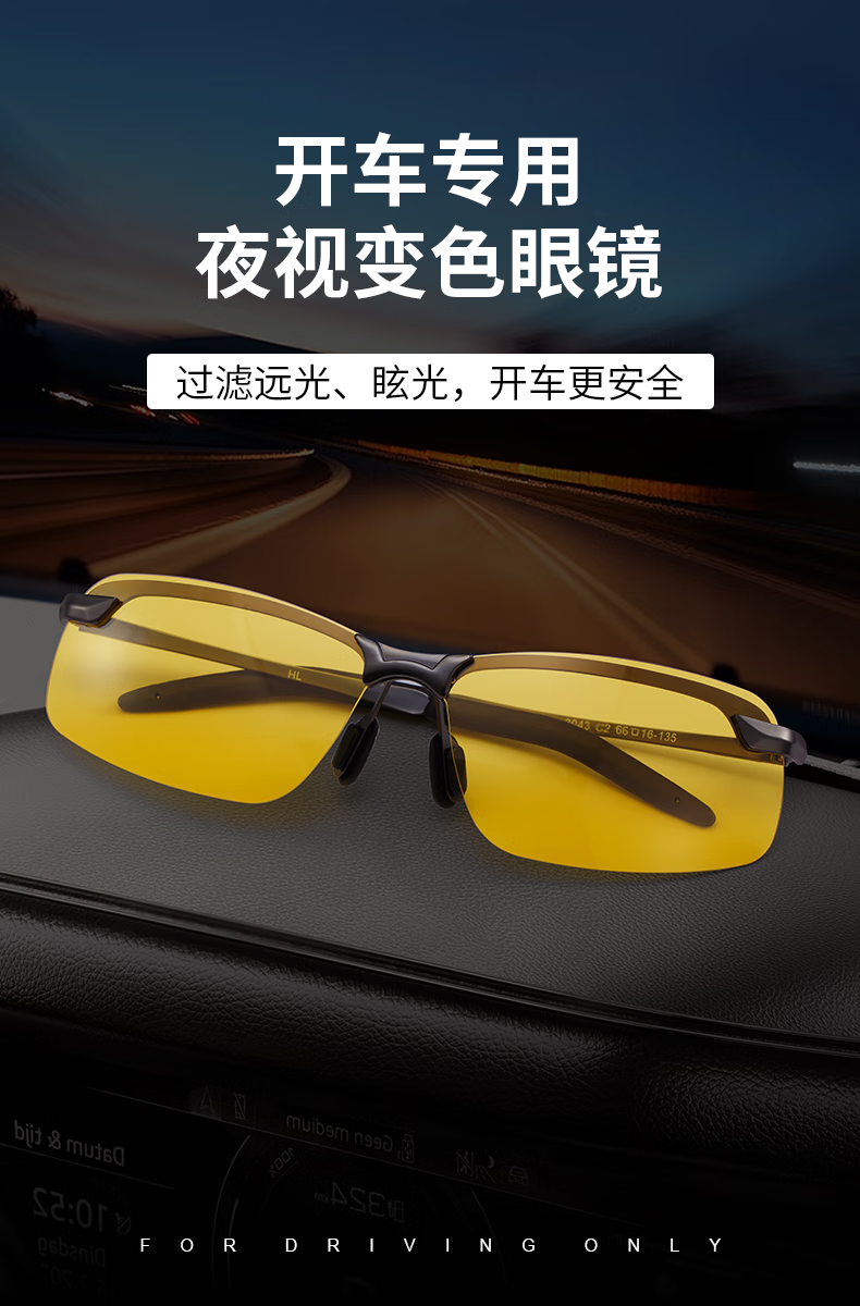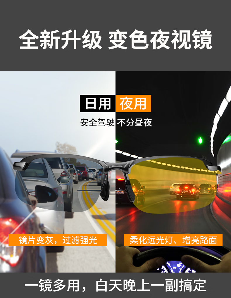 colore.in夜视眼镜开车专用男士驾驶墨镜日夜两用变色太阳眼镜夜间防强远光 枪框夜视黄变灰