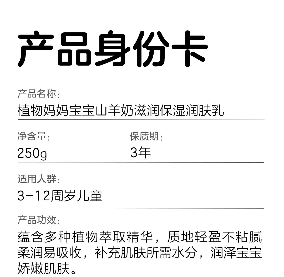 植物妈妈儿童身体乳3-12岁宝宝专用滋润身体乳秋冬专用护肤品干燥止痒润肤 【长效保湿】山羊奶儿童身体乳250g*1