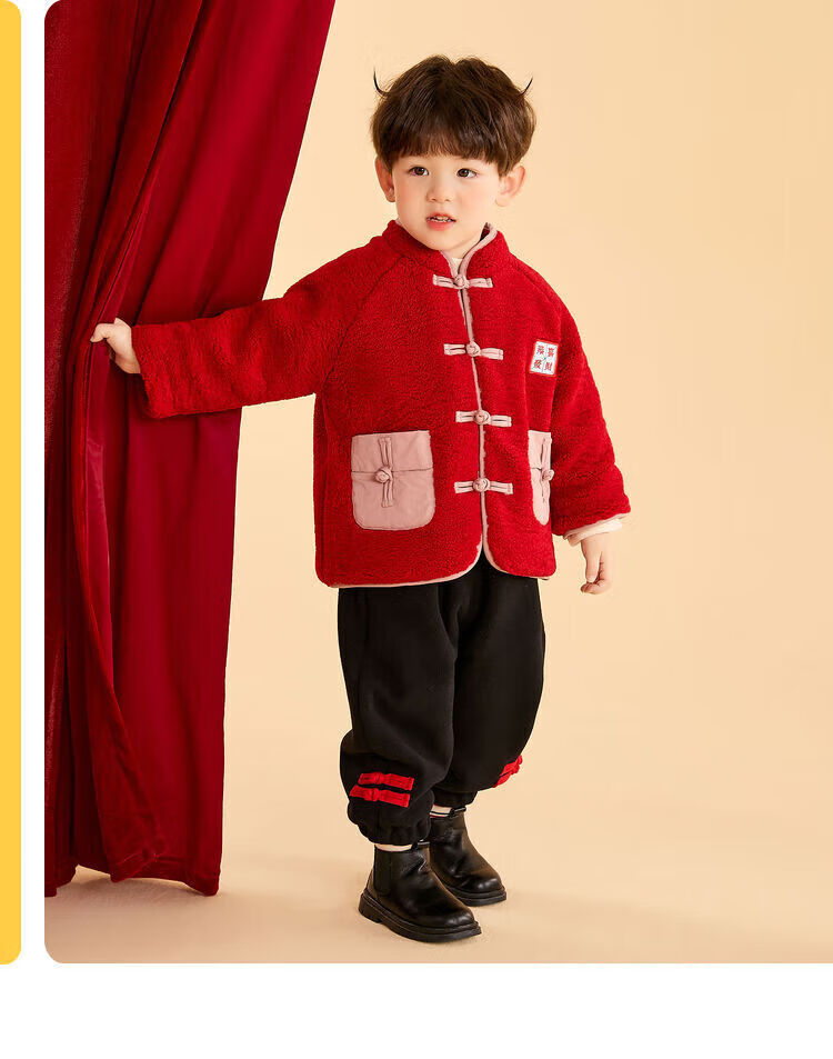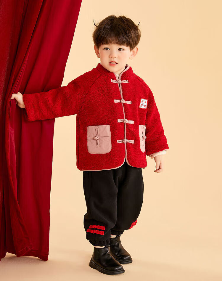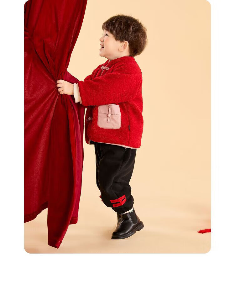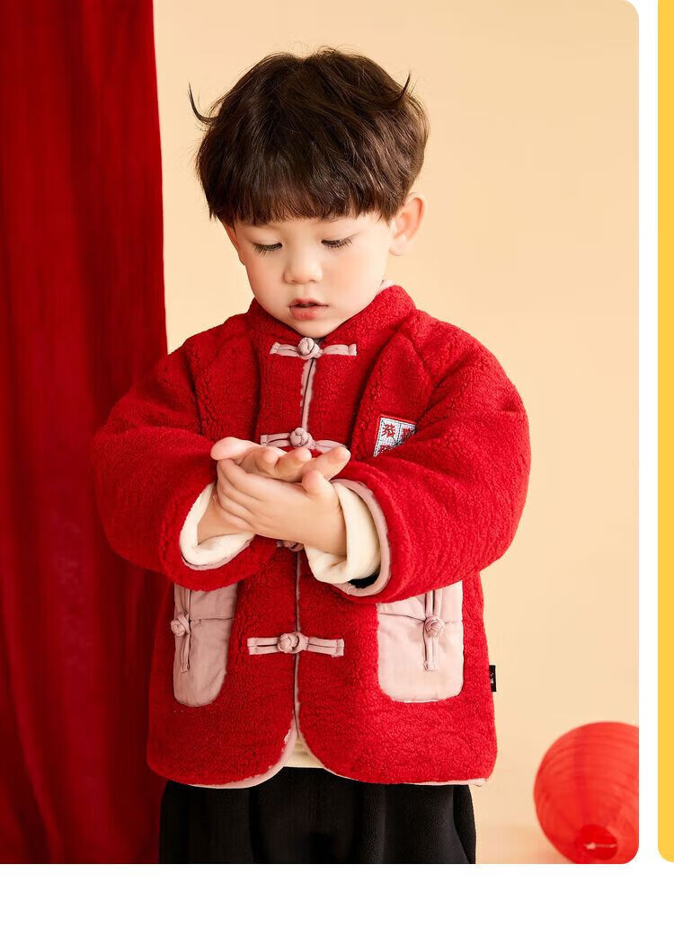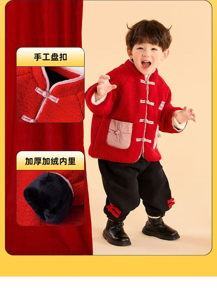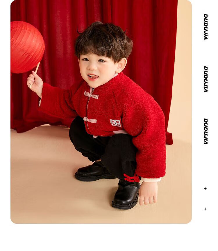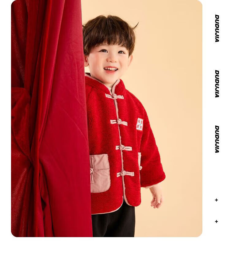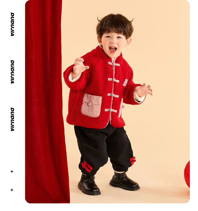 嘟嘟家儿童拜年服套装宝宝过年衣服红色喜庆男童新年装加 外套配裤子 90