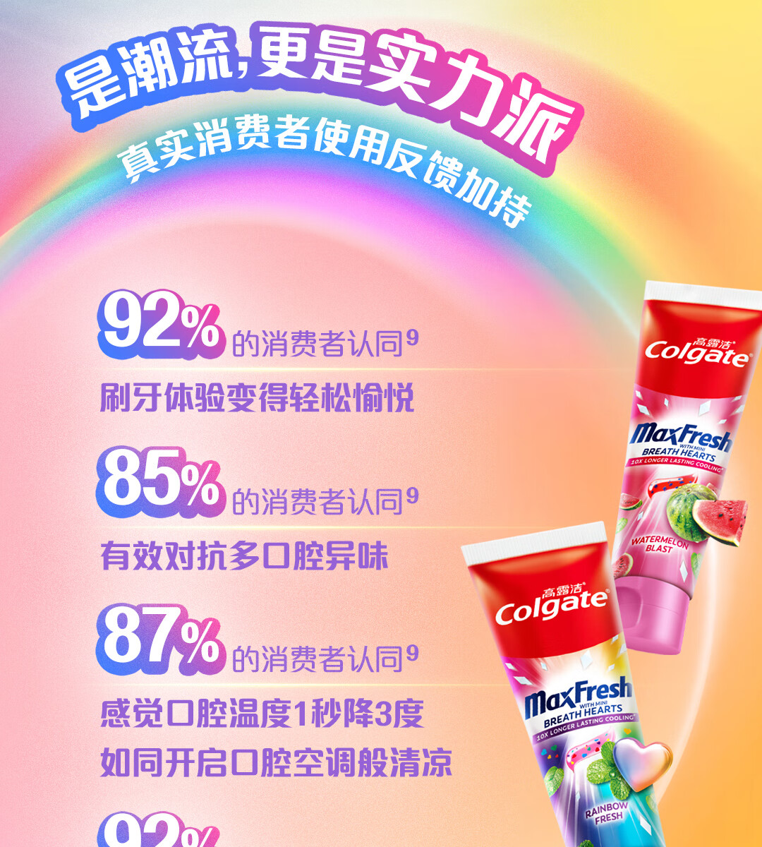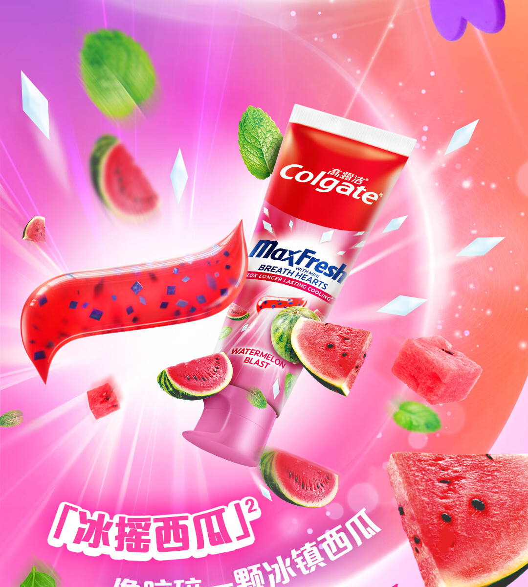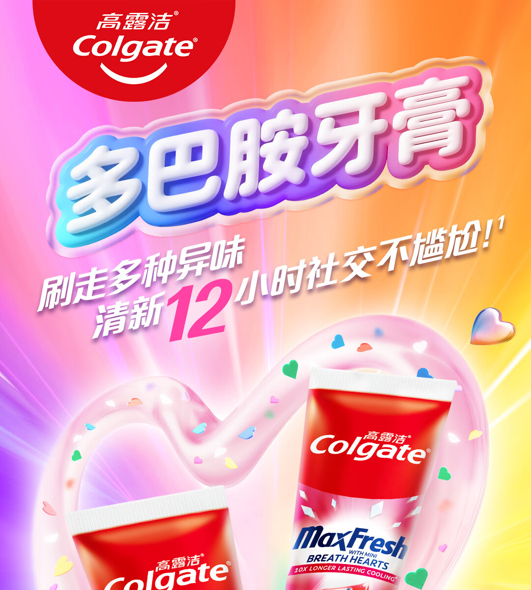高露洁多巴胺牙膏[孙颖莎同款]去烟渍去黄去口臭清新口气成人官方旗舰 冰摇西瓜*2+甜心彩虹*2+绿茶漱口水旅行装*6