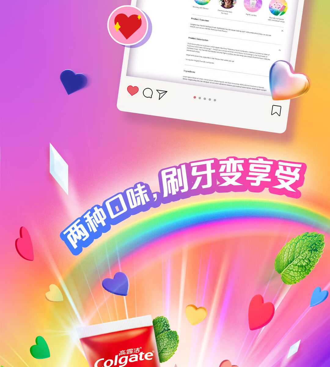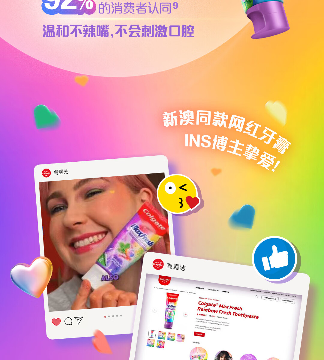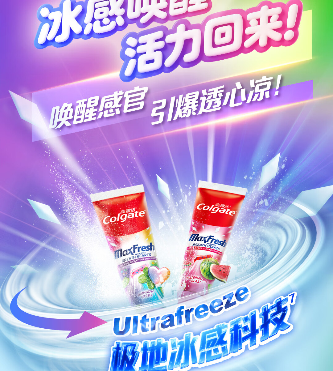 高露洁多巴胺牙膏[孙颖莎同款]去烟渍去黄去口臭清新口气成人官方旗舰 冰摇西瓜*2+甜心彩虹*2+绿茶漱口水旅行装*6