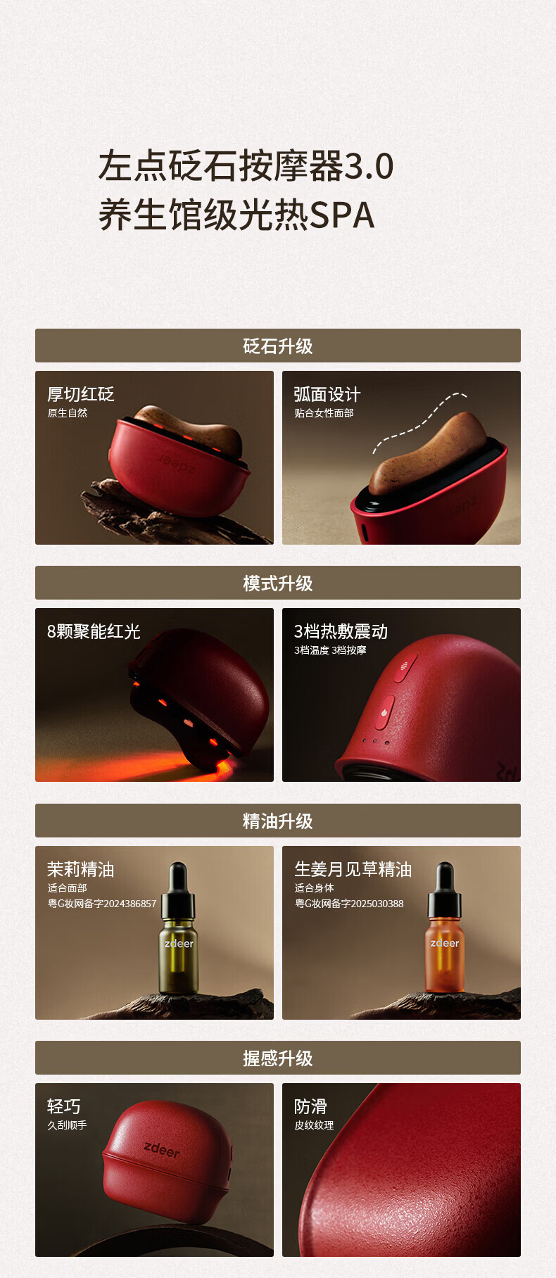 左点zdeer电动刮出痧板智能砭石按摩器面部加热刮脸仪器生日 新年礼物 【推荐礼盒】红砭石3.0+5瓶精油