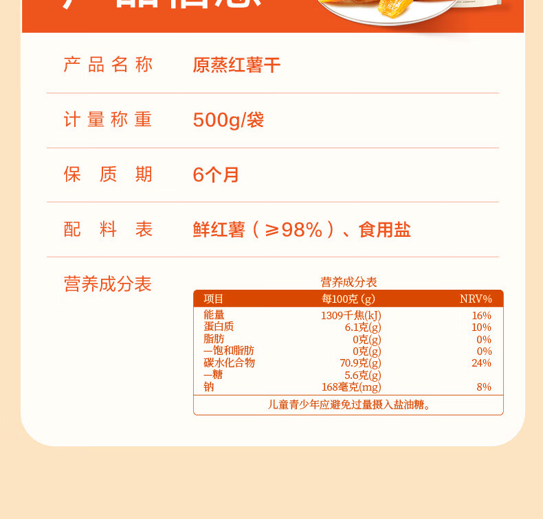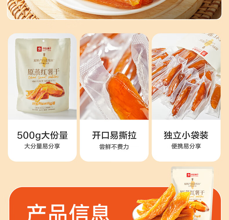 良品铺子红薯干鲜蒸番薯干地瓜干条代餐休闲食品包装 原蒸红薯干200g*2袋