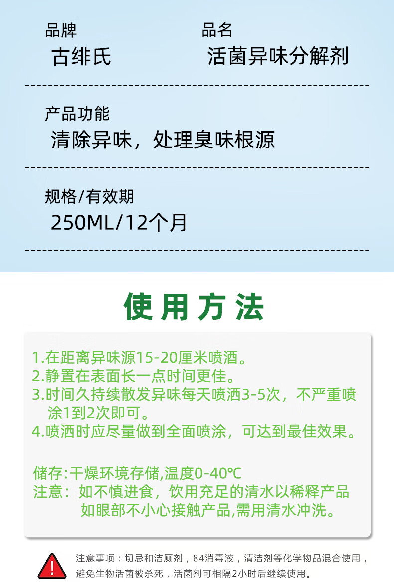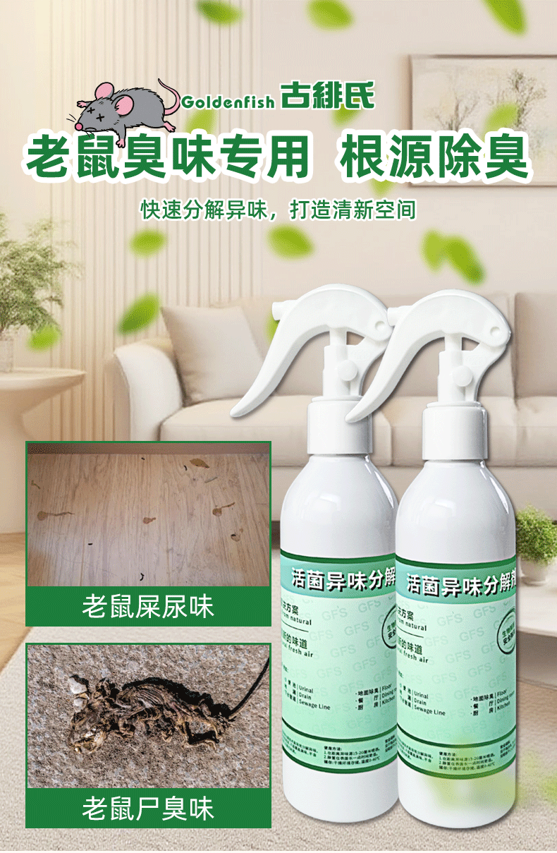 古绯氏生物活菌除臭液宠物除臭味神器尿味死老鼠臭味尸臭屎尿味无刺激 250ml*1瓶