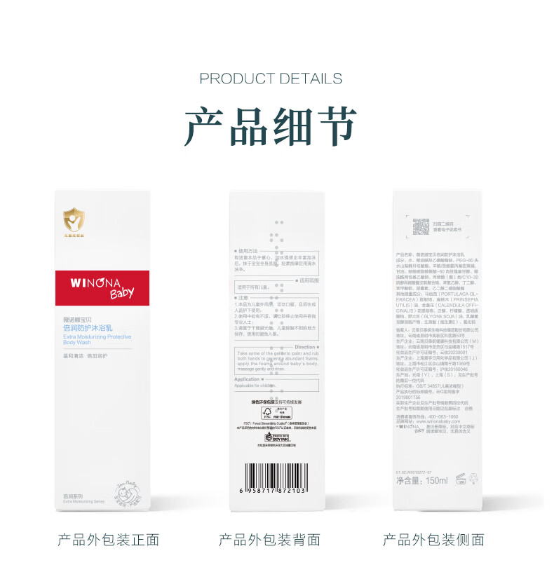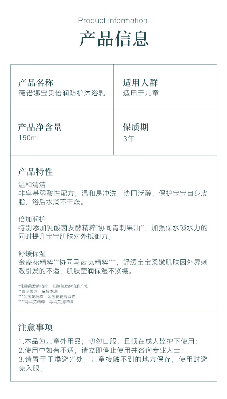 薇诺娜宝贝倍润防护沐浴乳3岁+儿童专用天然植萃不伤肤弱酸配方沐浴露150ml 【3岁+适用】天然植萃沐浴乳150ml