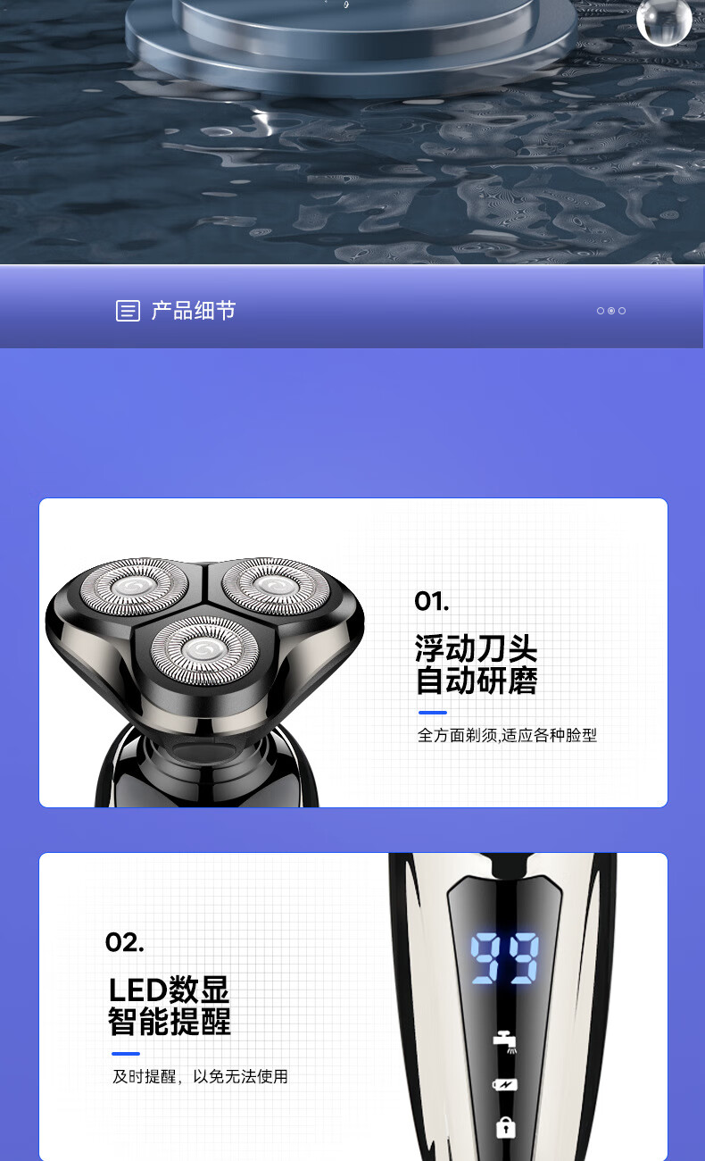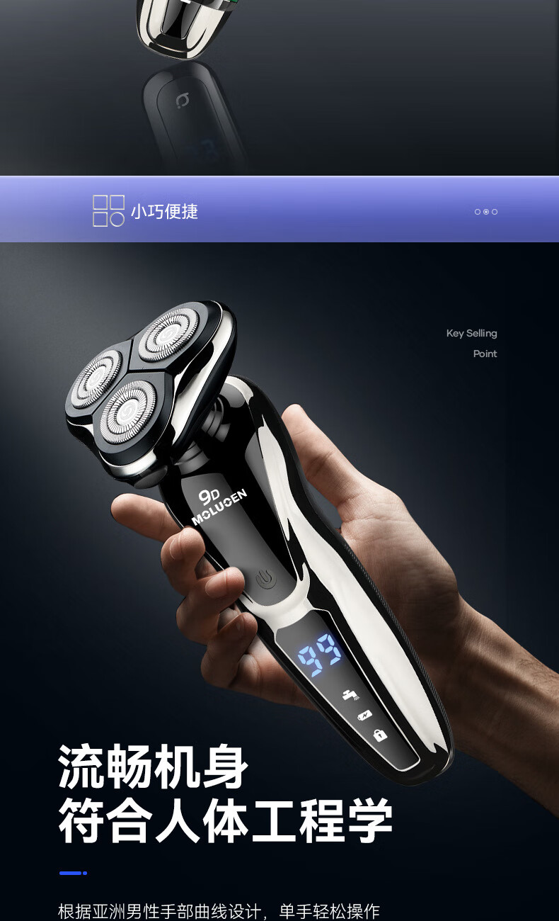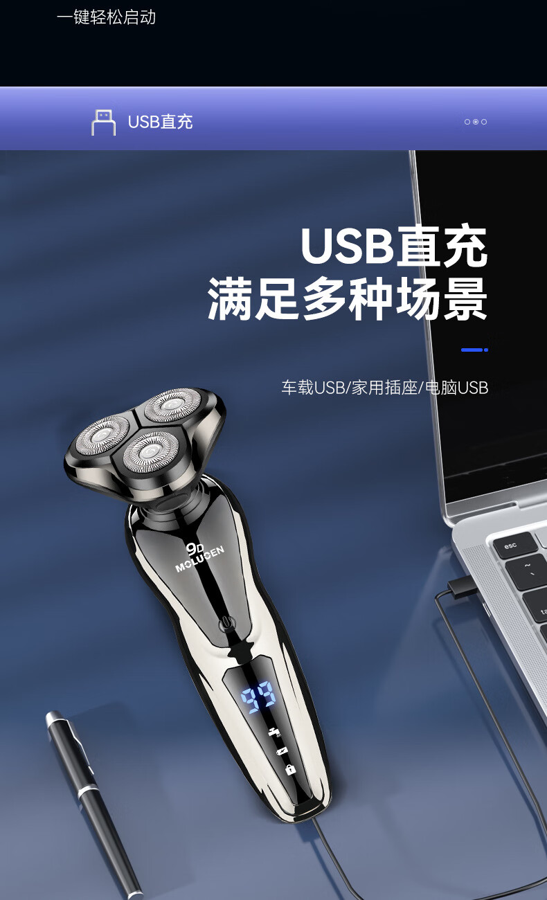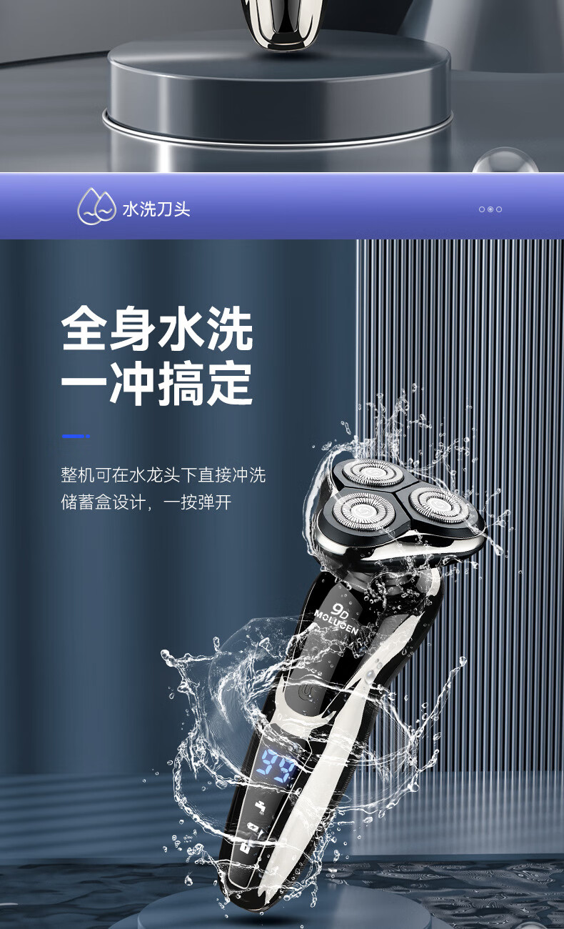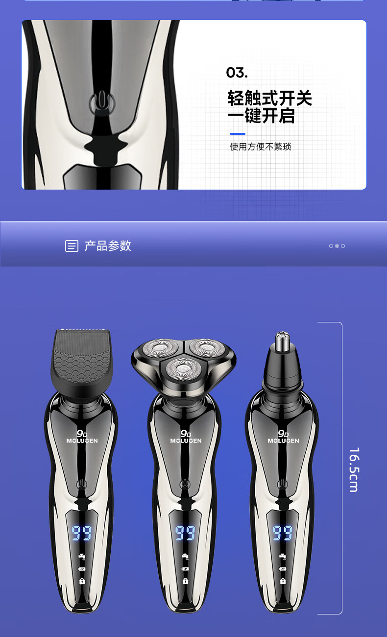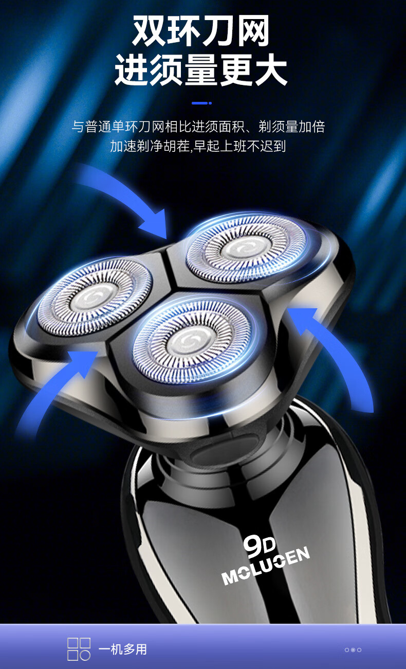摩洛恩德国多功能三合一剃须刀全身水洗数显快充电动刮胡刀深层剃净热卖销售榜TOP1 送父亲男友节日礼物 卓越礼【9D剃须刀+备用原装刀头+鼻毛器+鬓角器】