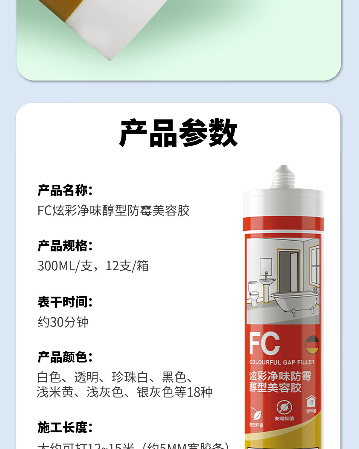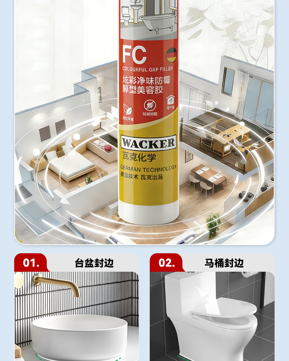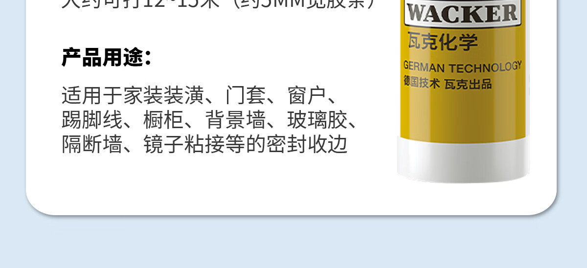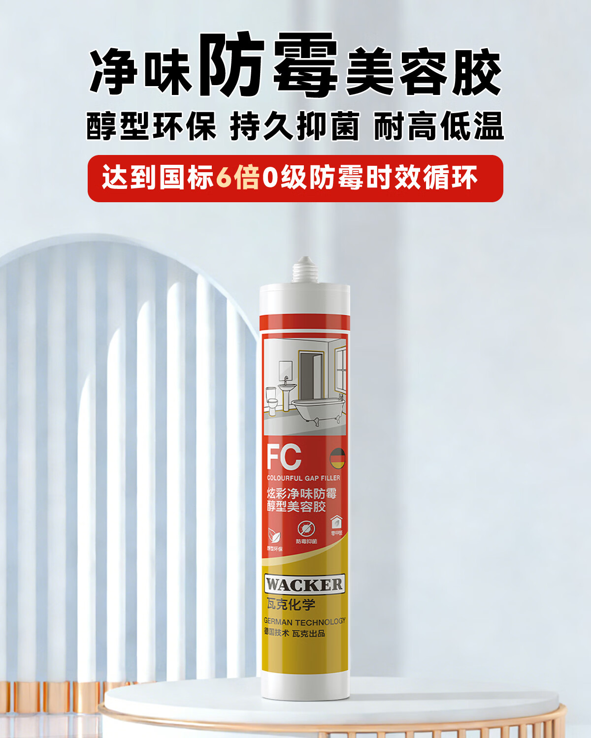 瓦克(WACKER)FC美容胶炫彩防霉净味醇型玻璃胶密封胶踢脚线美容收边全屋适用 【美容胶】净味防霉-白色*1