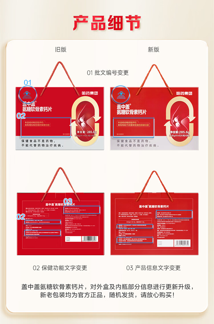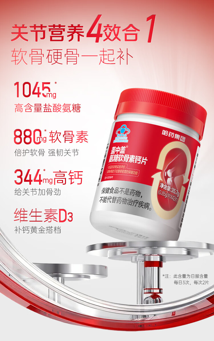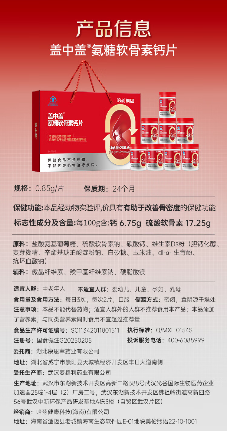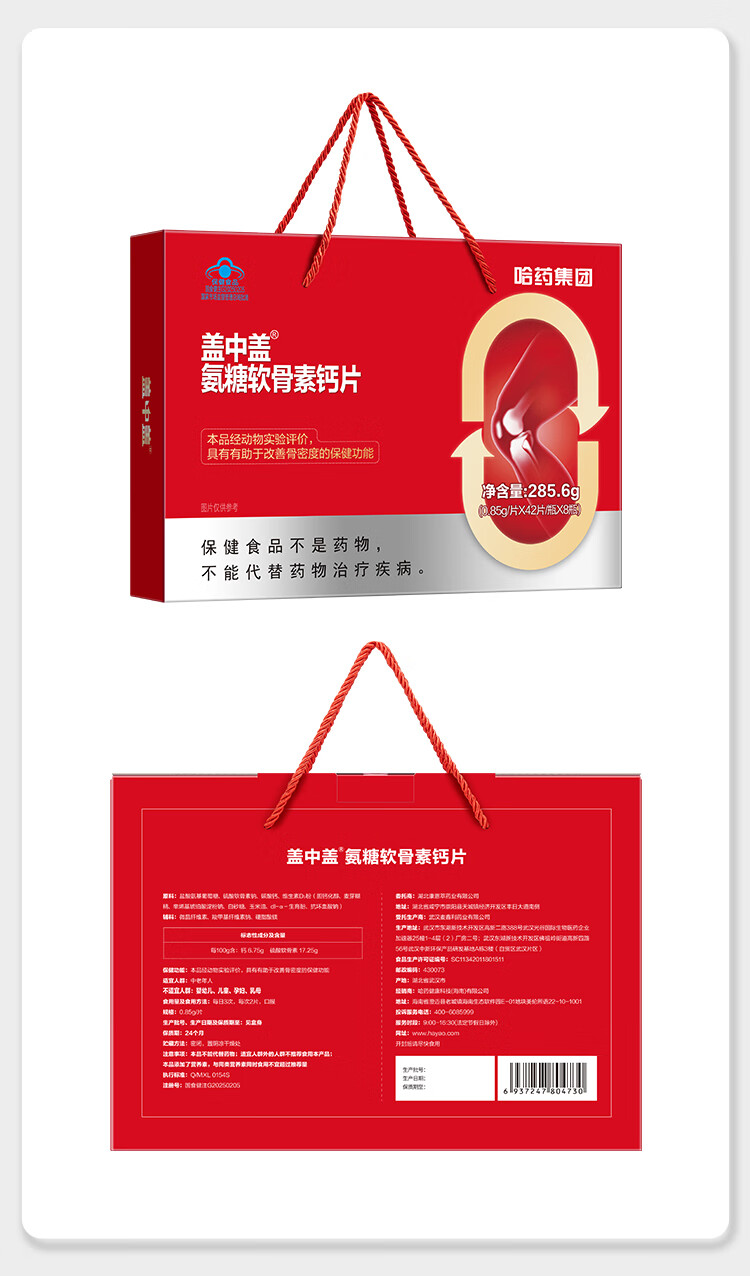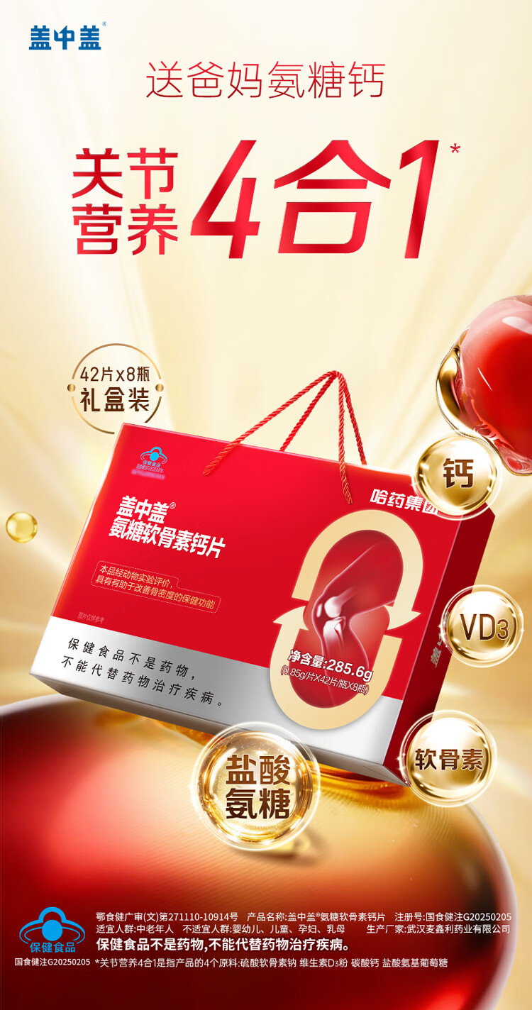 盖中盖哈药 四合一氨糖软骨素钙片 中老年补软骨护关节 送礼礼盒 42片*8瓶