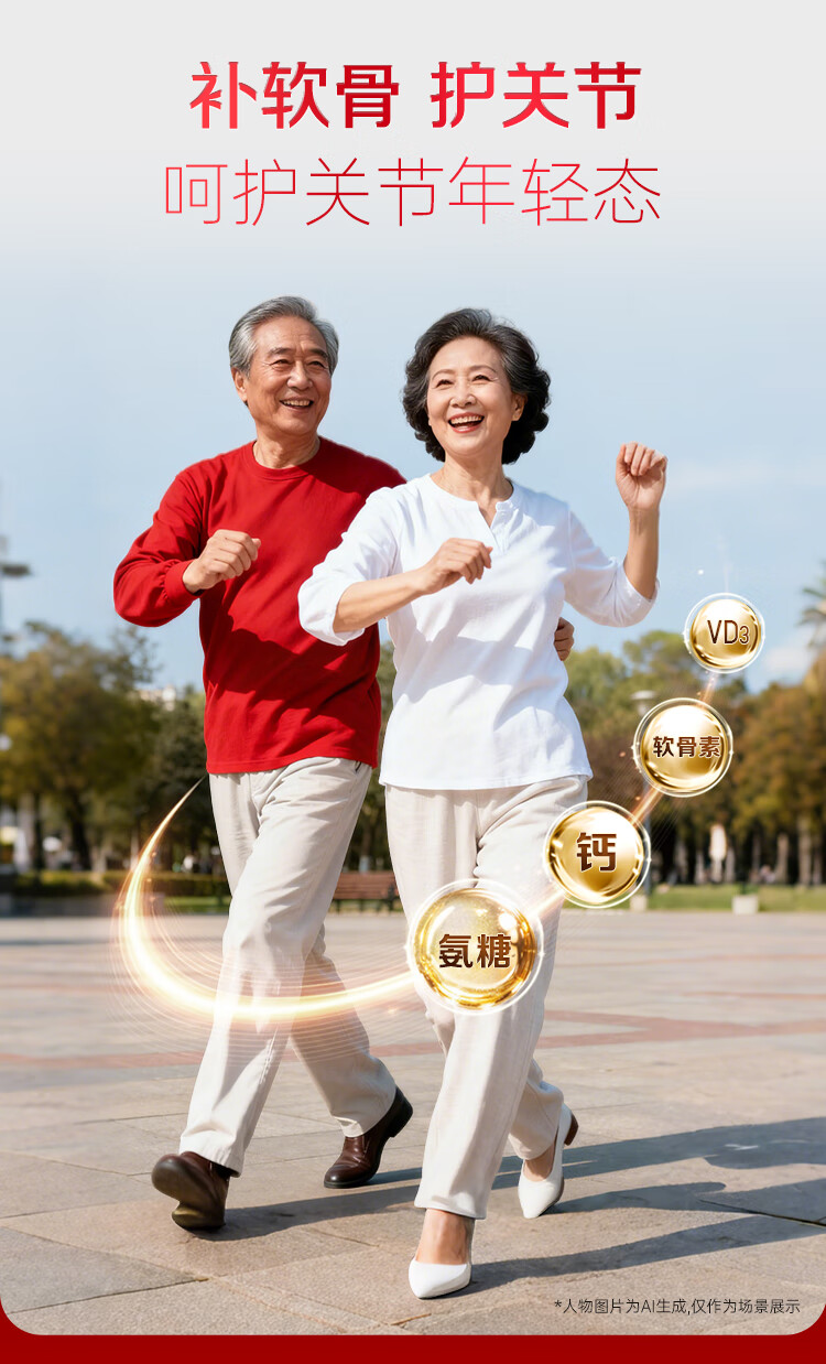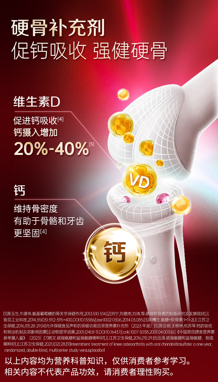 紫一氨糖软骨素钙片中老年人补钙增加骨密度硫酸软骨素 氨糖软骨素 40片*3瓶 【三合一周期推荐】