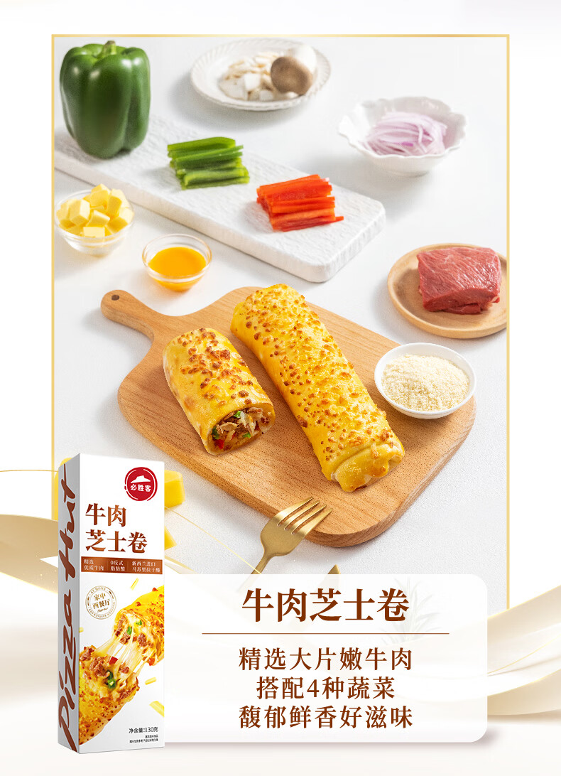 必胜客拉丝芝士卷饼 0反式脂肪酸 儿童早餐面点食品半成品 牛肉芝士卷130g*5