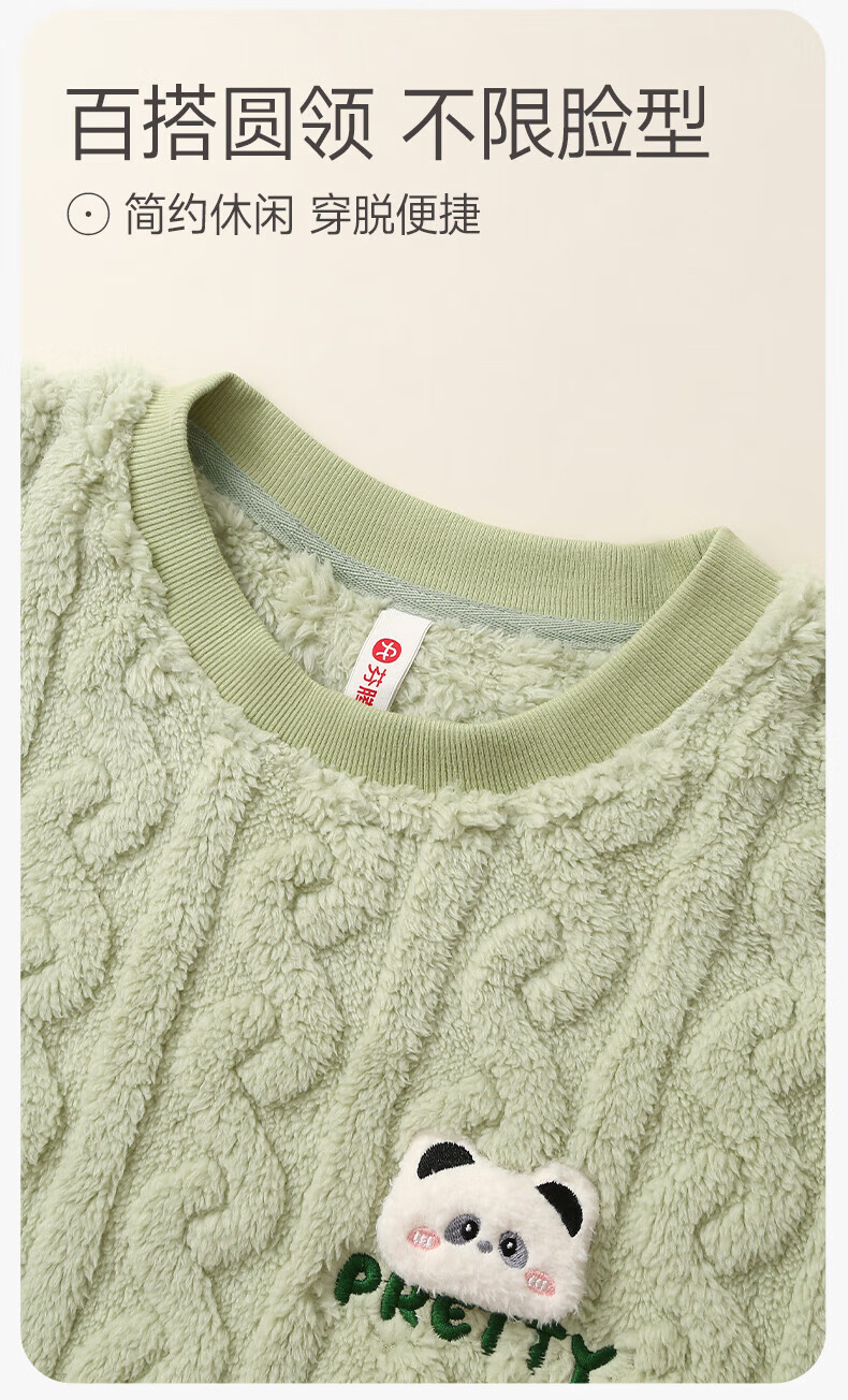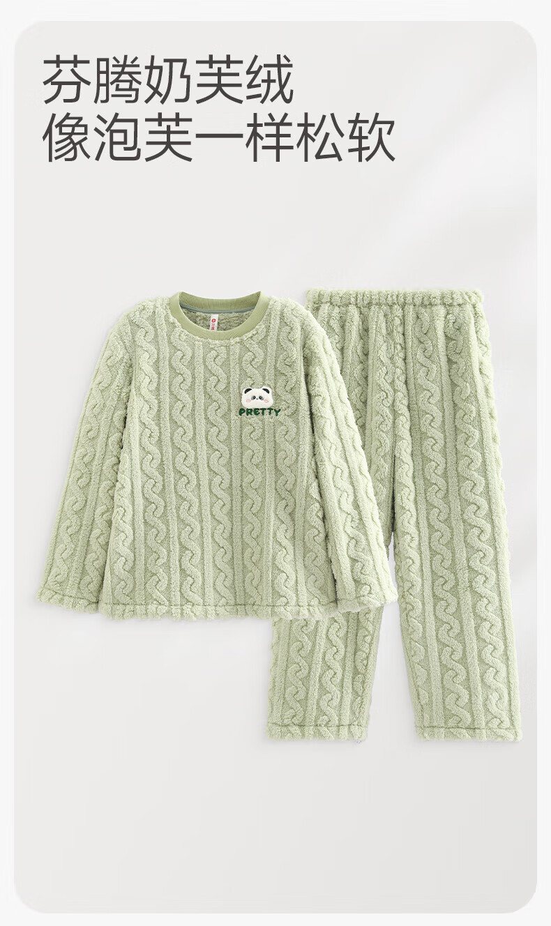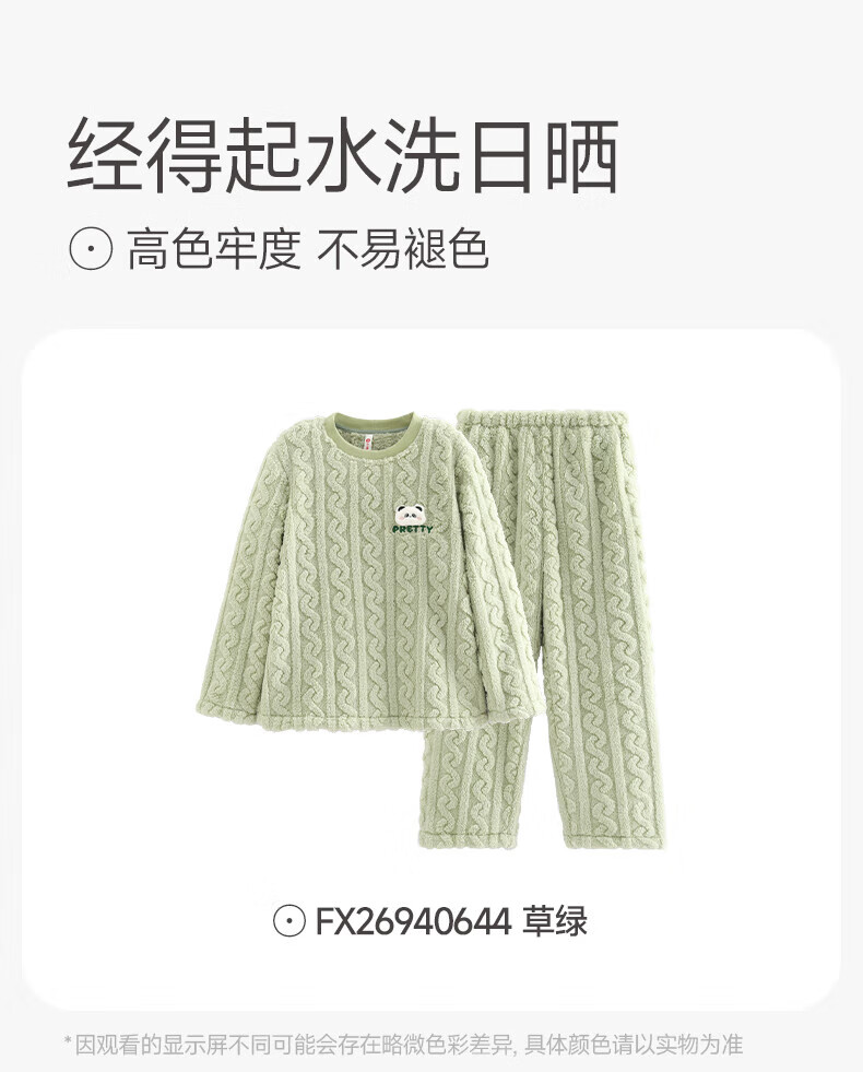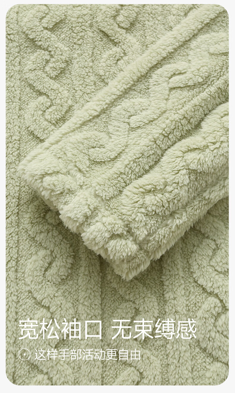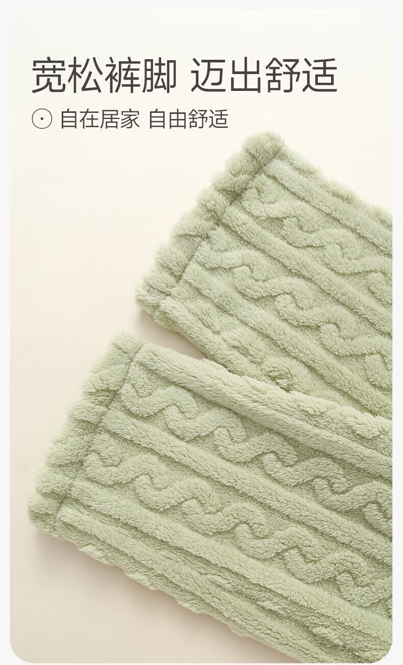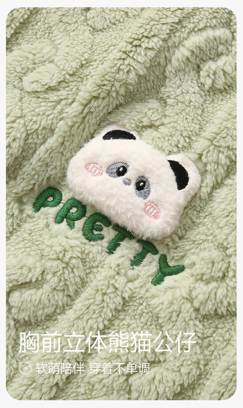 芬腾珊瑚绒睡衣女秋冬加厚保暖加绒休闲大码宽松可爱套头家居服套装 草绿 M 建议90-110斤