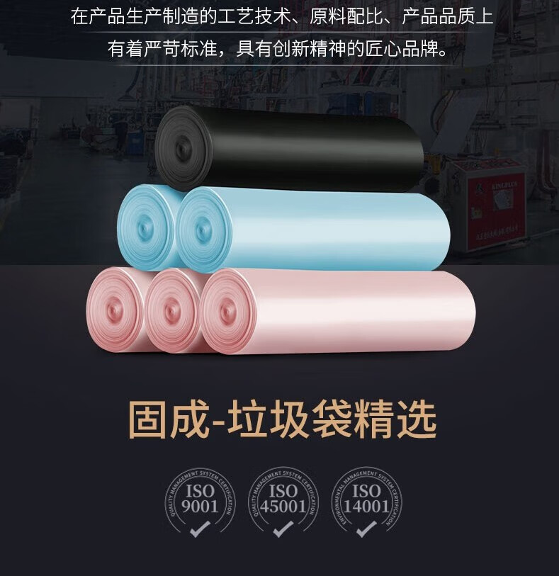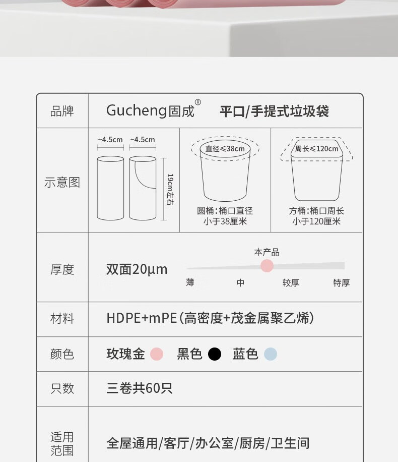 固成(GUCHENG)大号垃圾袋双面2丝 大容量20L家用厨房办公室加厚一次性塑料袋 玫瑰金3卷58只-60*75cm手提式