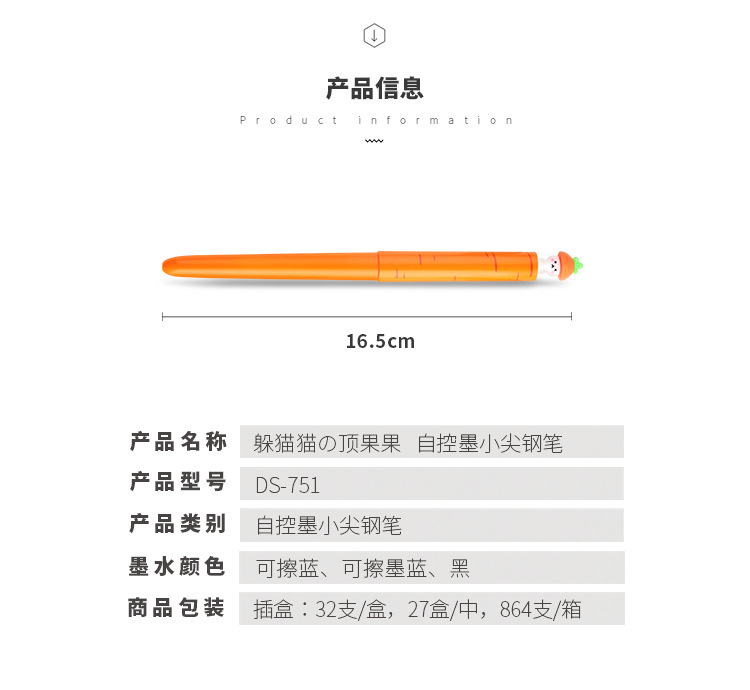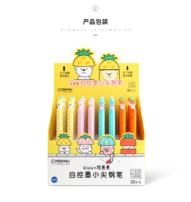 百今正品DS文具自控墨正姿墨囊钢笔躲猫猫顶果果学生练字办公文具DS751宫廷猫中国风 宫廷猫钢笔8支 0.5mm 官方标配 暗尖