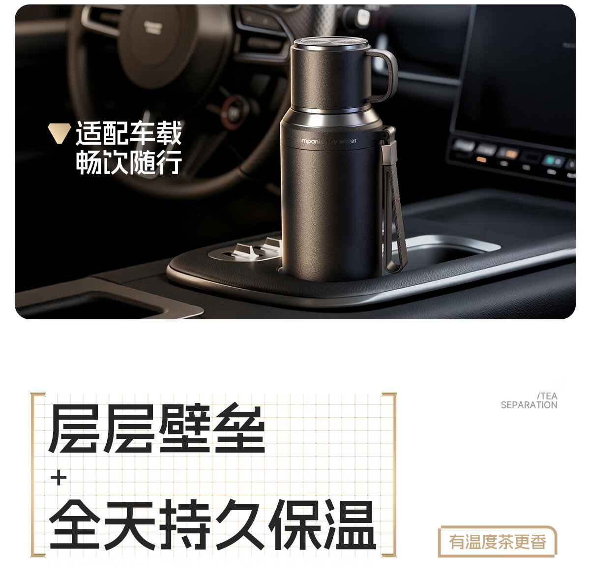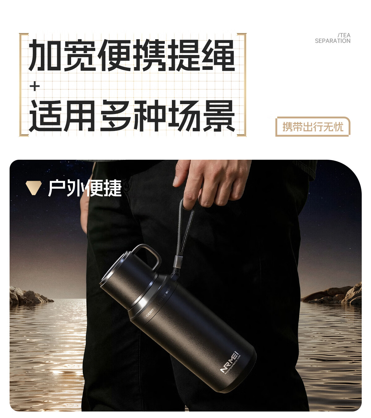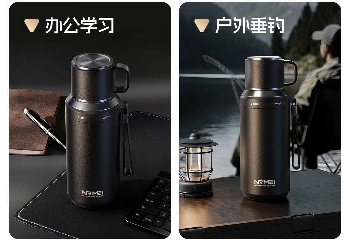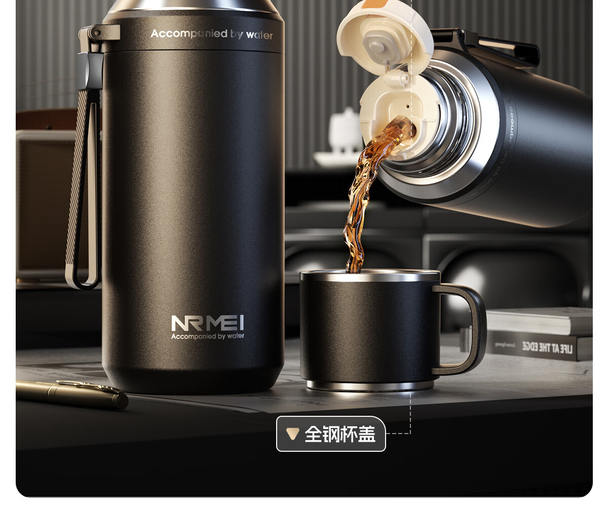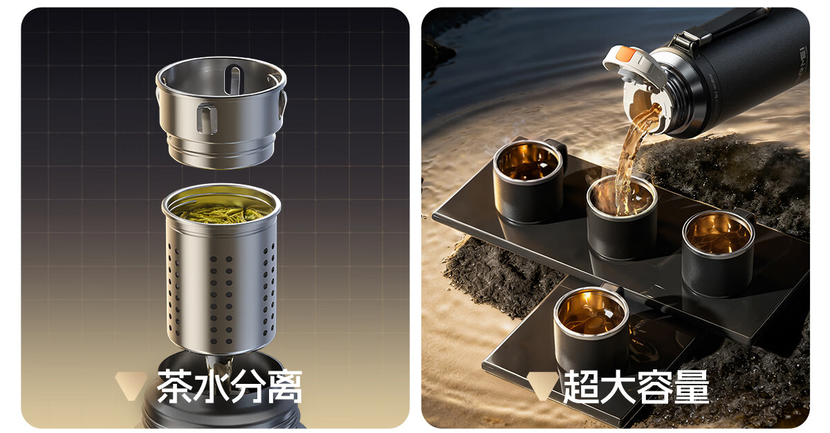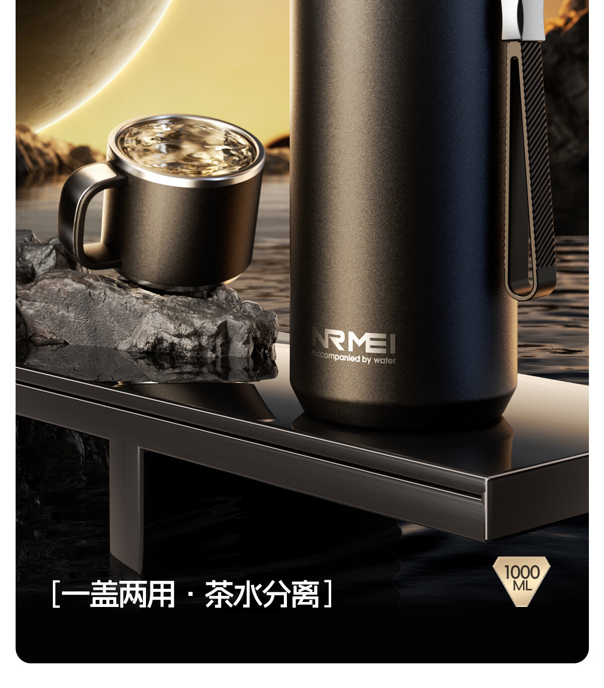 恩尔美(nRMEi)保温杯大容量男款茶水分离316不锈钢72小时便携泡茶专用水壶杯子 曜石黑600ml【升级316+茶水分离】