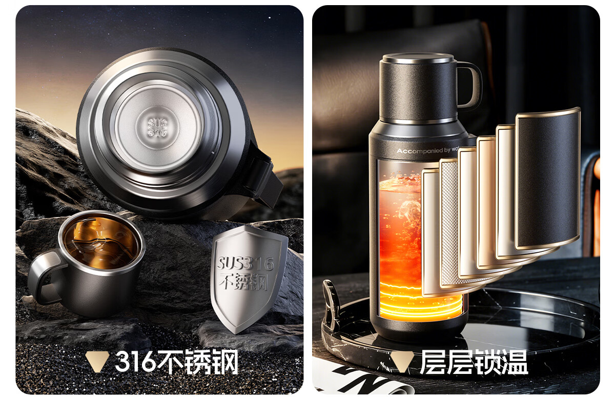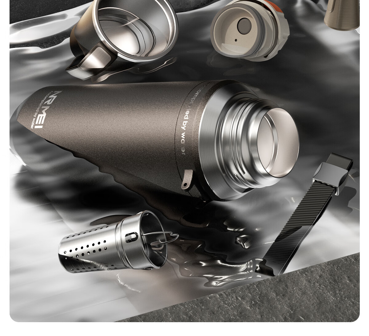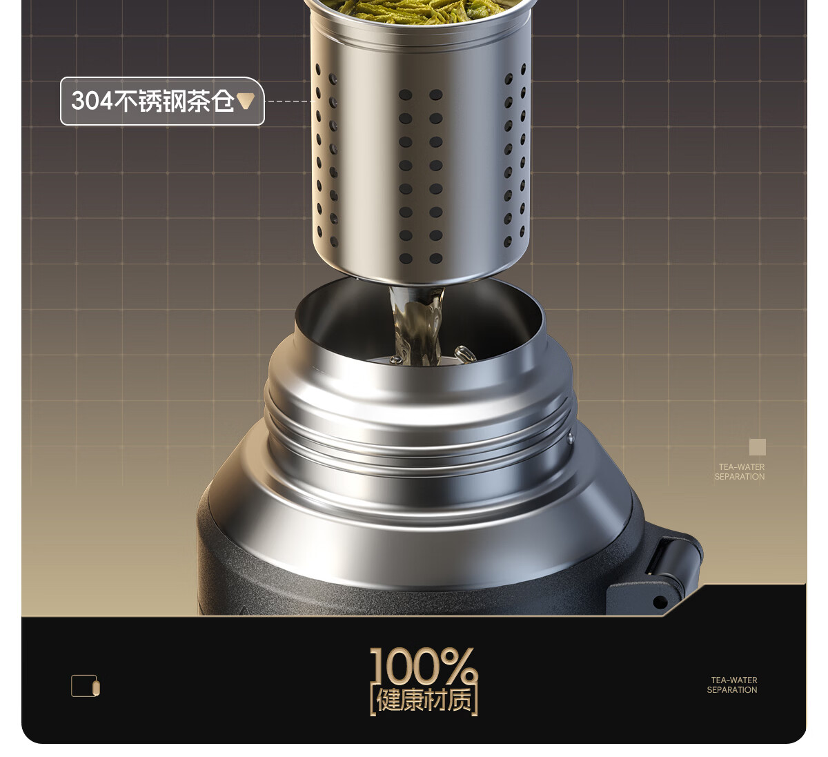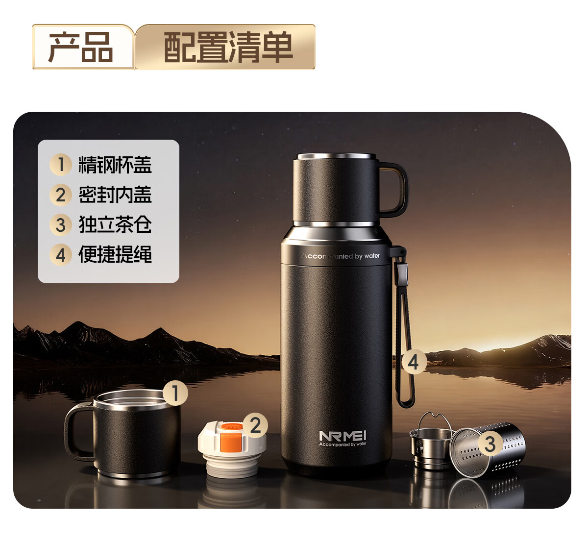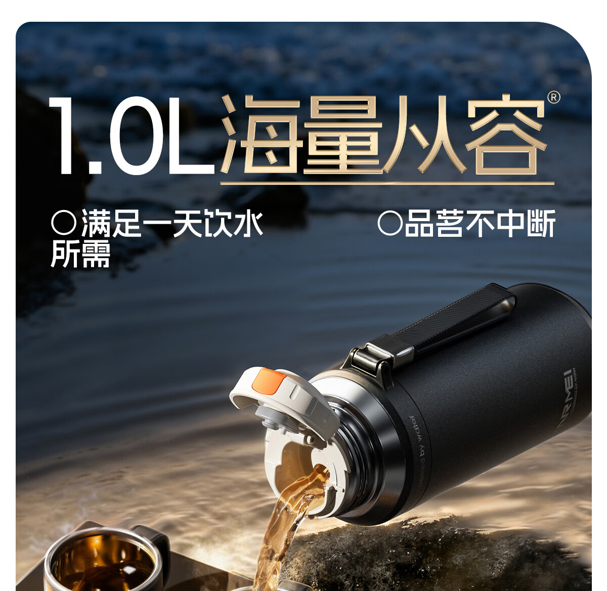 恩尔美(nRMEi)保温杯大容量男款茶水分离316不锈钢72小时便携泡茶专用水壶杯子 曜石黑600ml【升级316+茶水分离】
