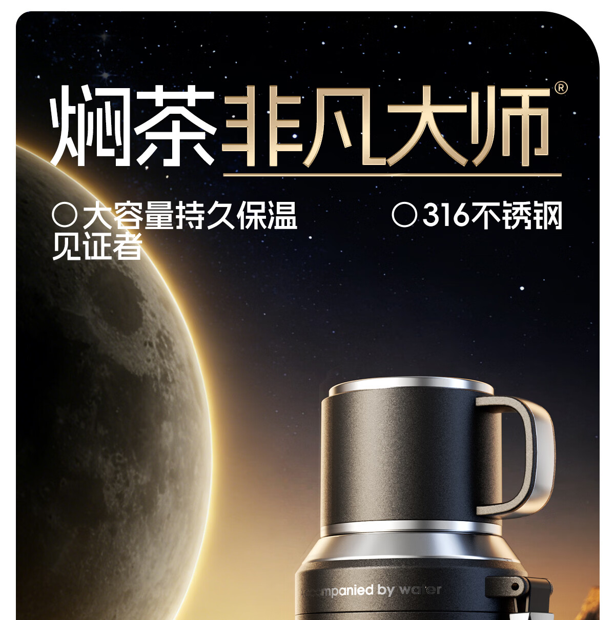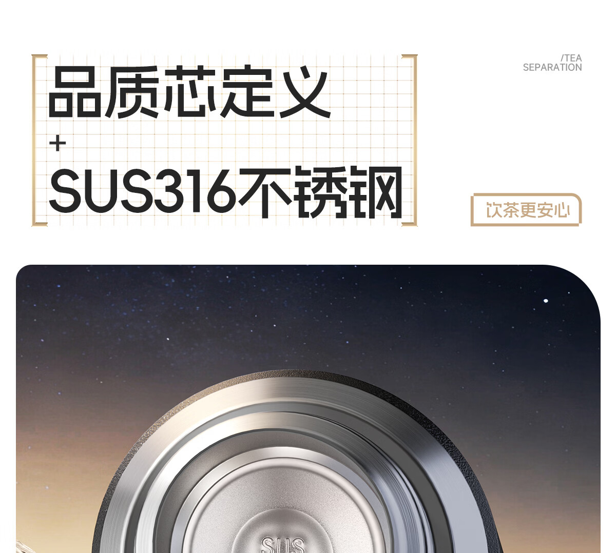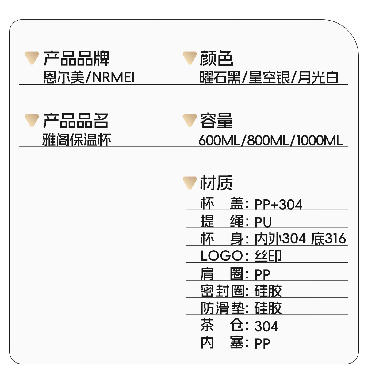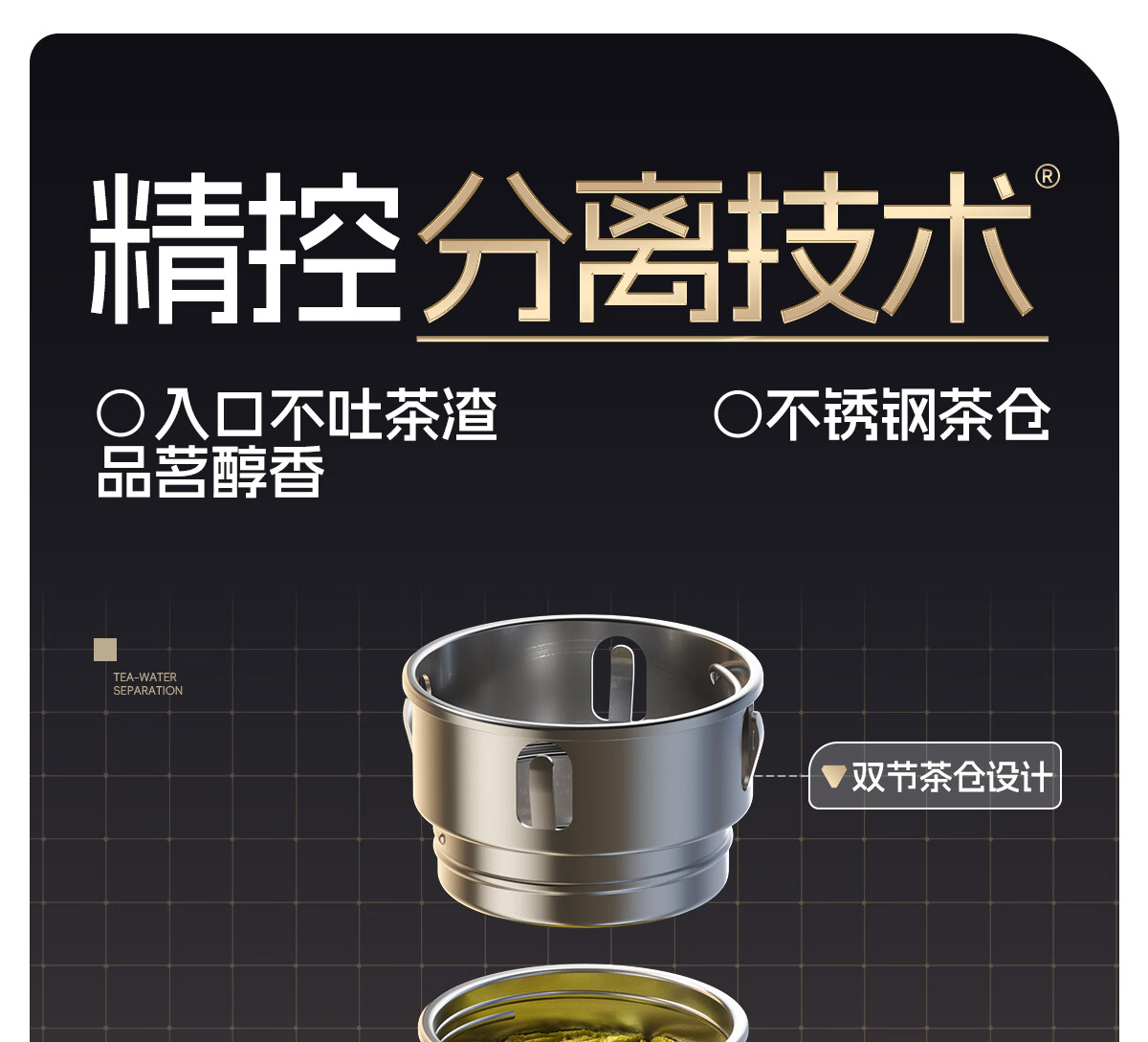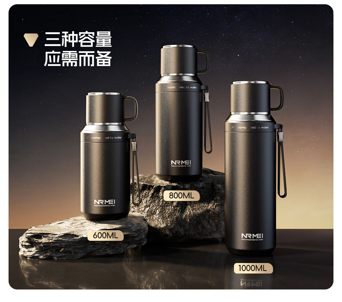 恩尔美(nRMEi)保温杯大容量男款茶水分离316不锈钢72小时便携泡茶专用水壶杯子 曜石黑600ml【升级316+茶水分离】