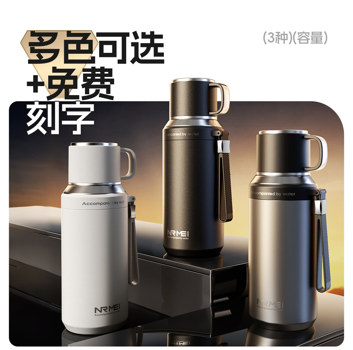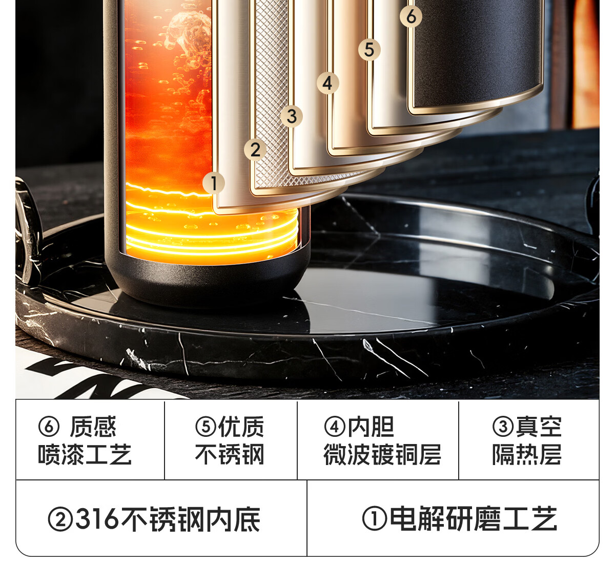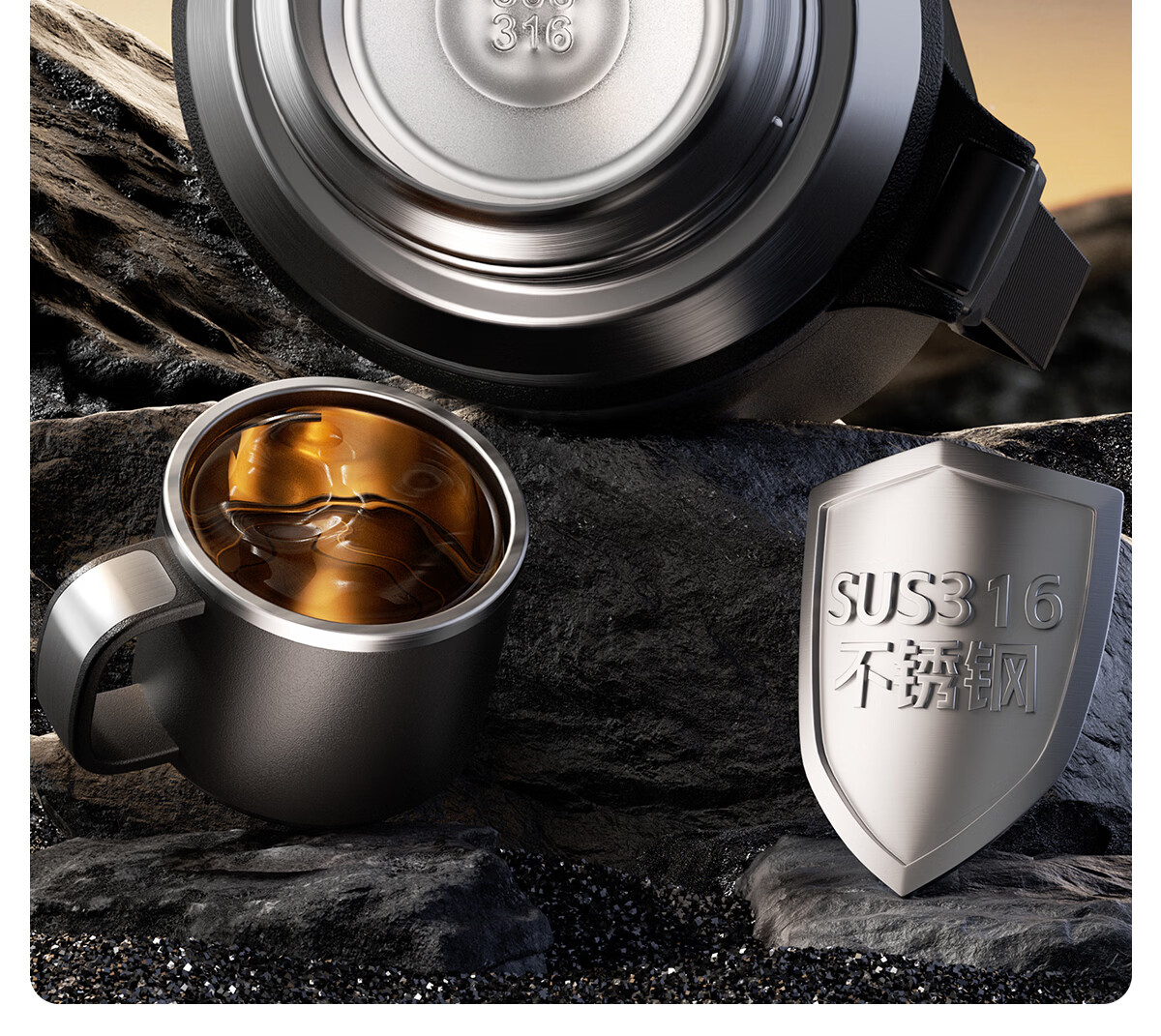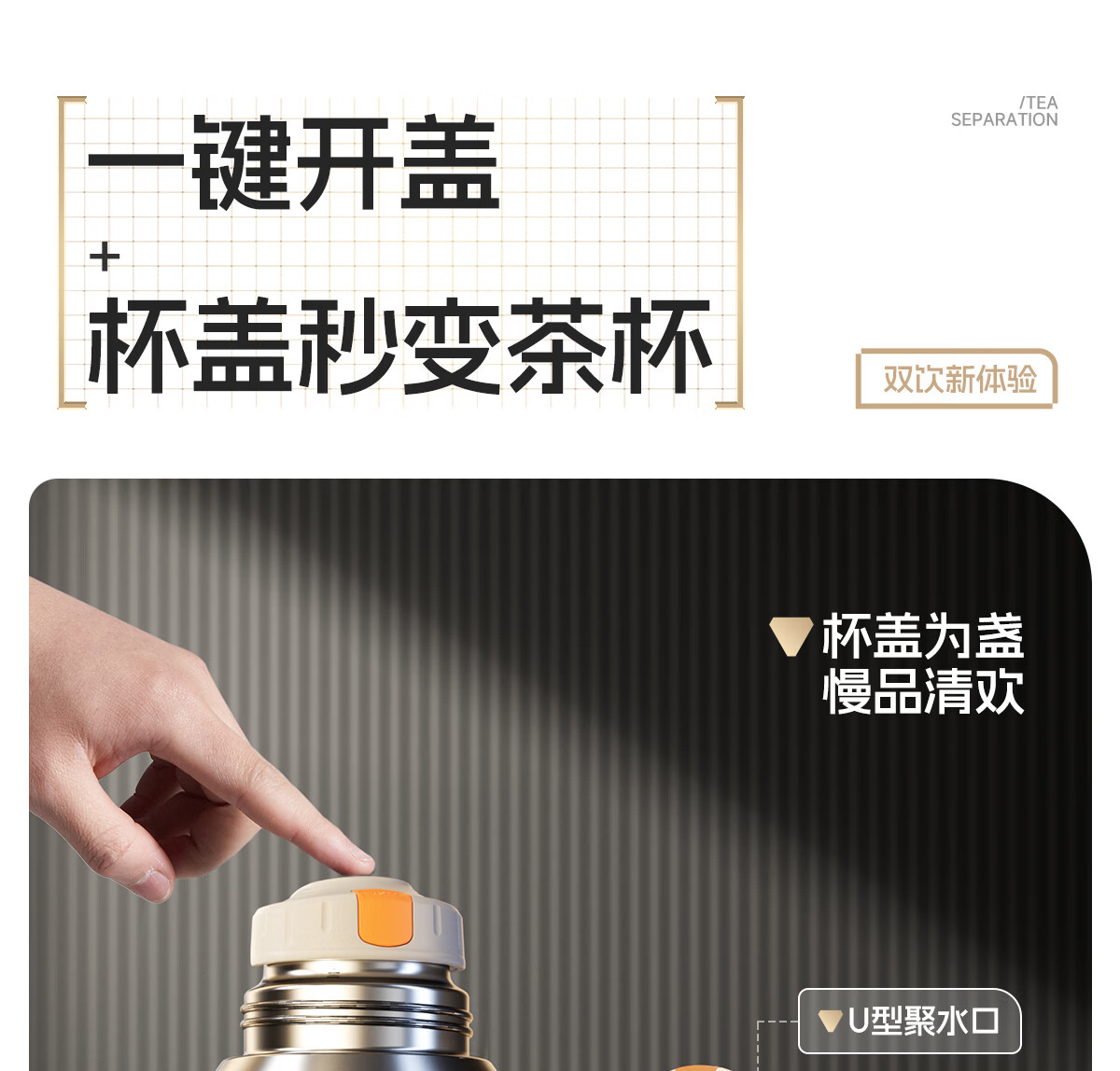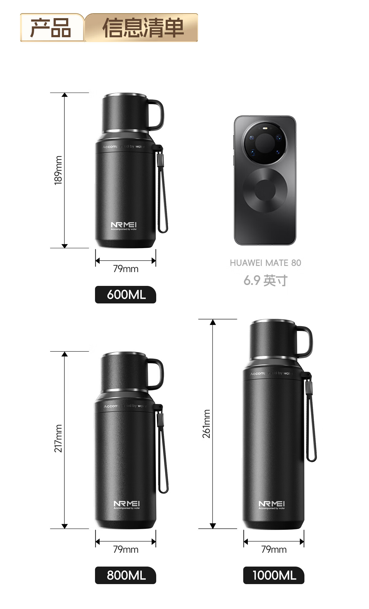 恩尔美(nRMEi)保温杯大容量男款茶水分离316不锈钢72小时便携泡茶专用水壶杯子 曜石黑600ml【升级316+茶水分离】