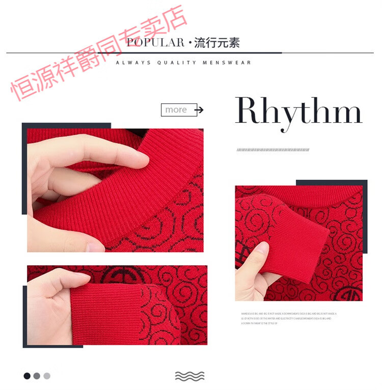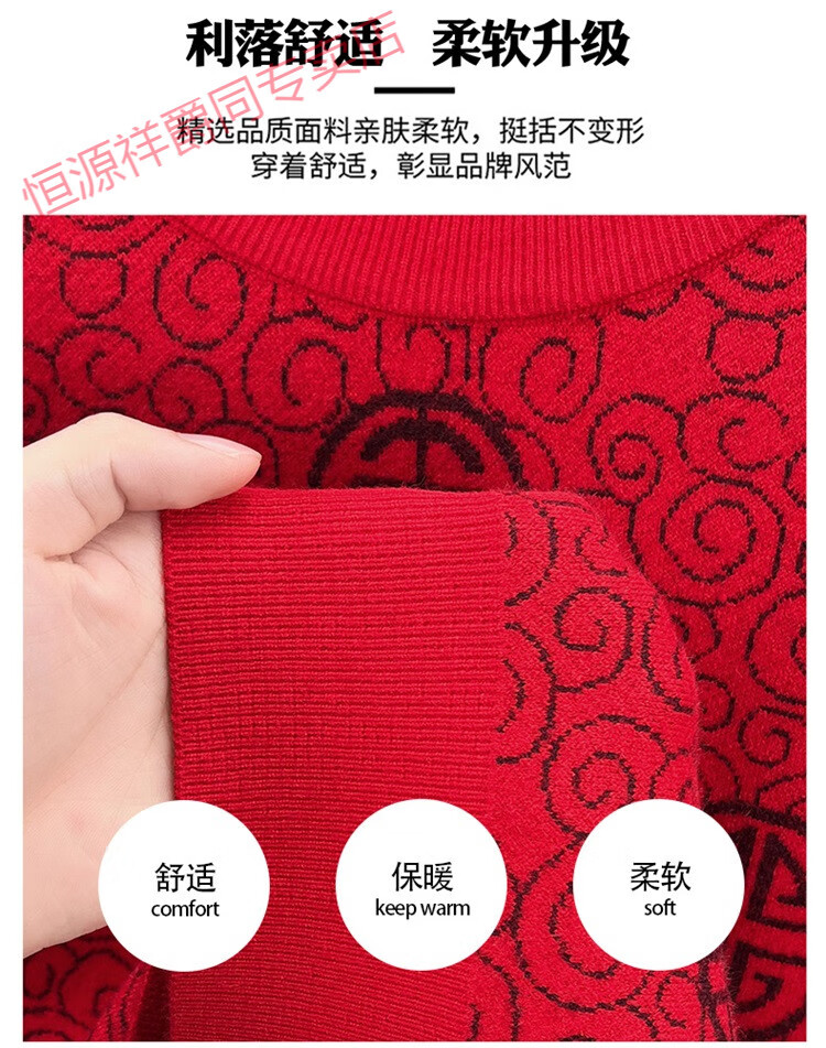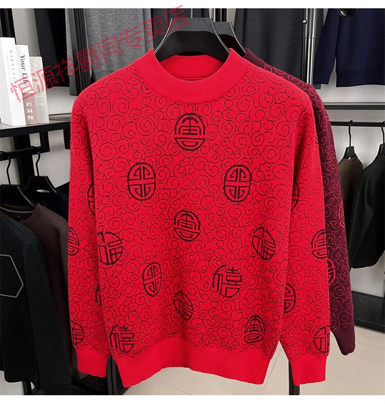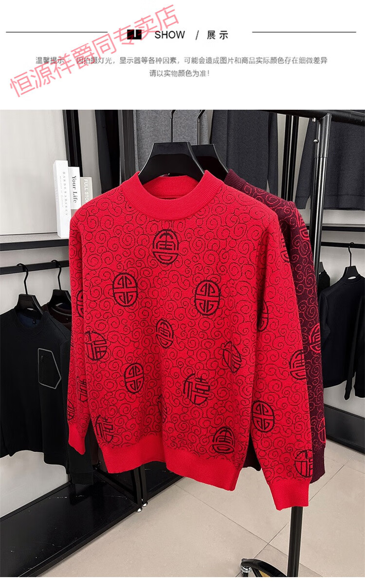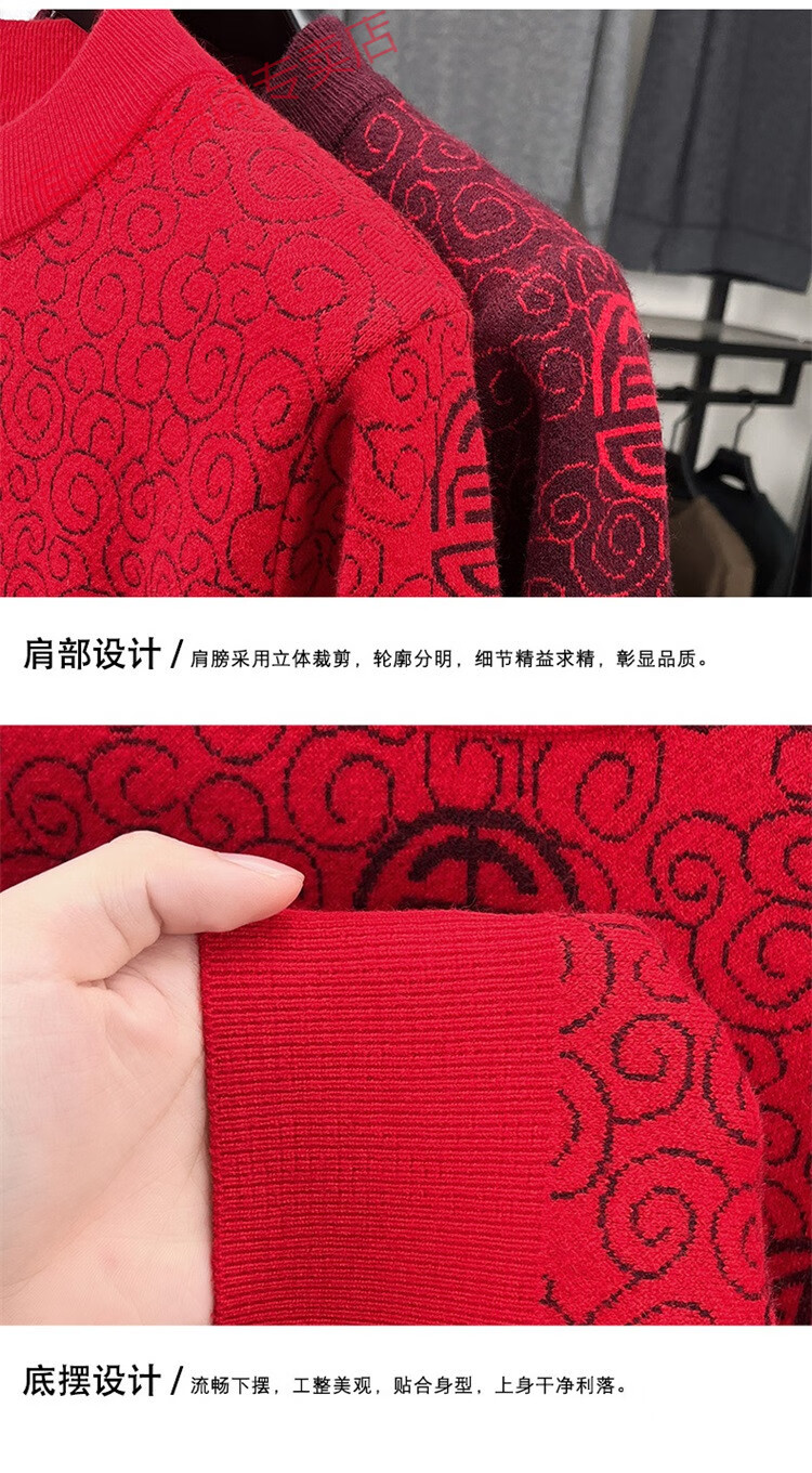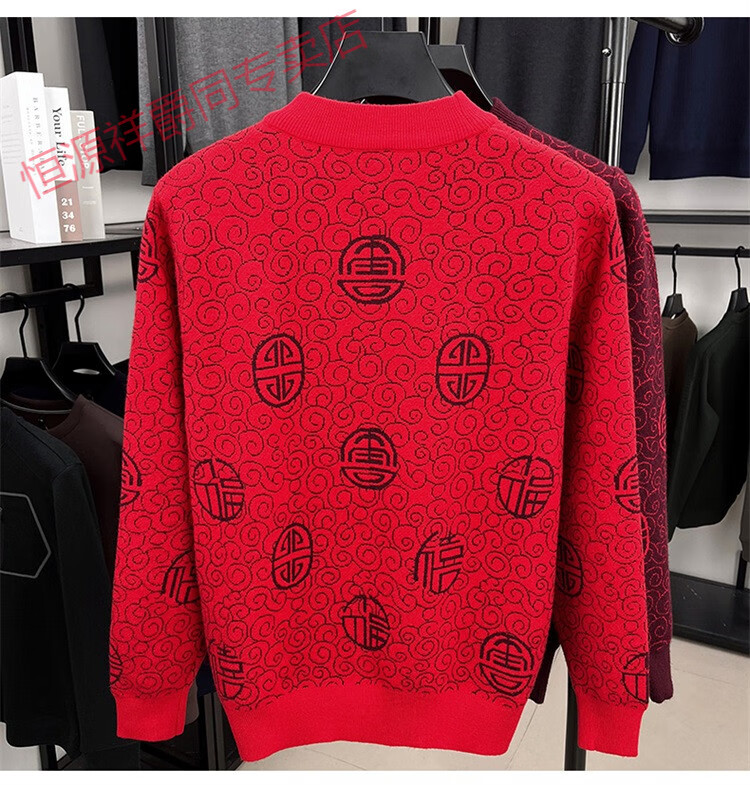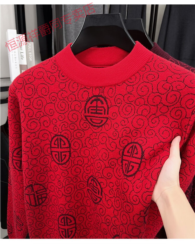恒源祥2025新款羊毛衫男士红色毛衣加绒加厚保暖针织衫春秋羊毛衫上衣 紫红96863 2XL 180