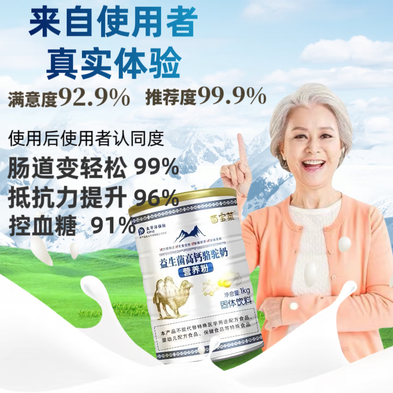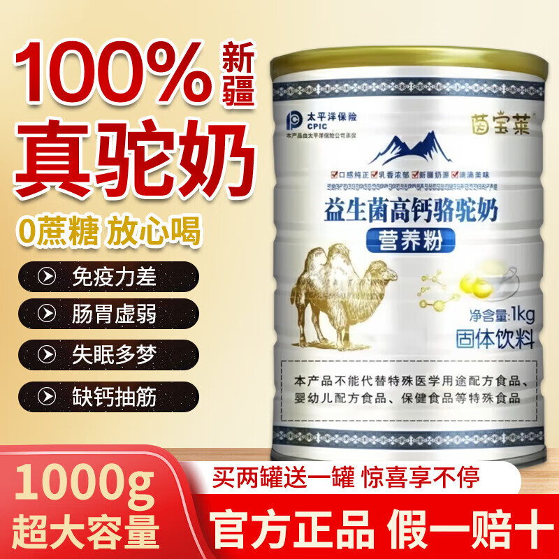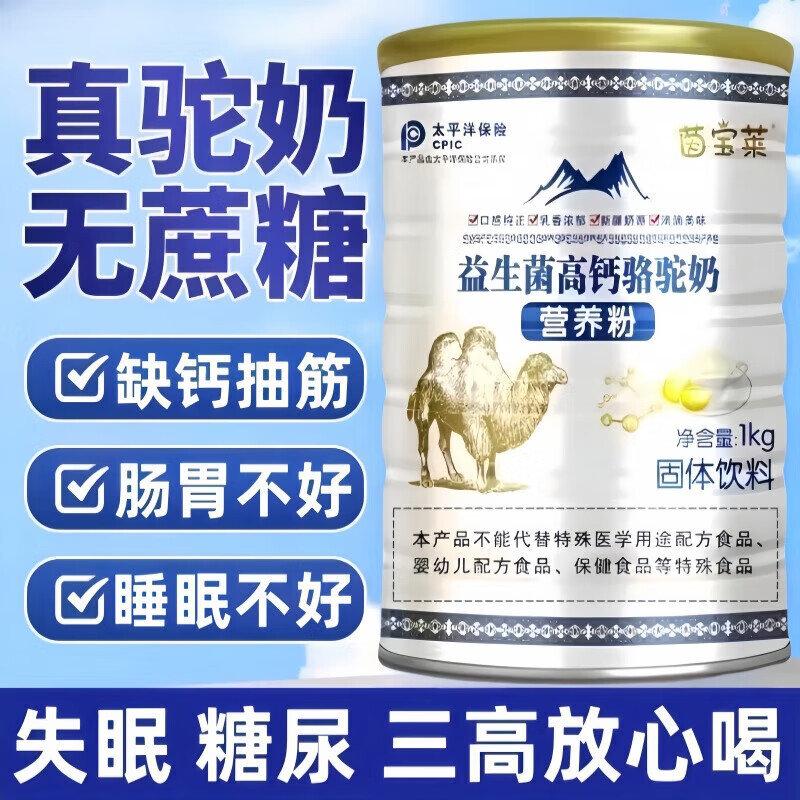 施元益生菌高钙骆驼奶粉新疆正宗驼奶粉中老年无蔗糖营养蛋白粉 【益生菌】骆驼奶蛋白质粉 1kg*1桶
