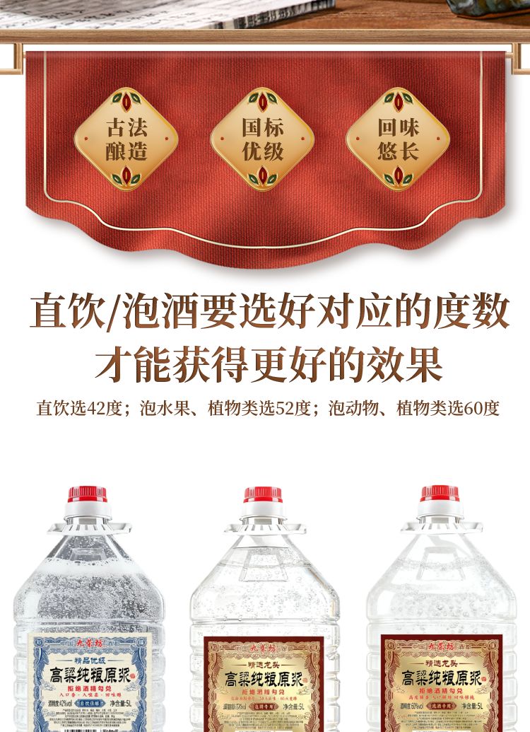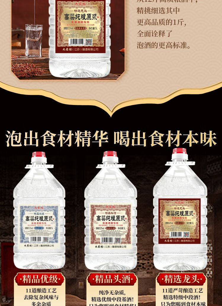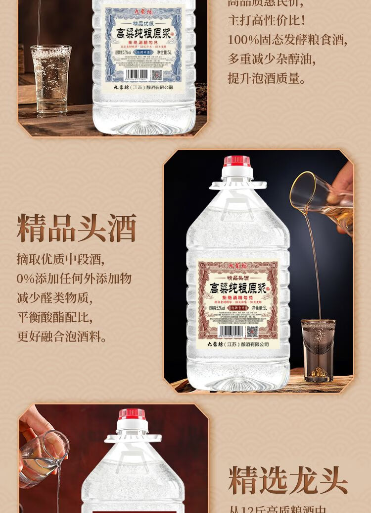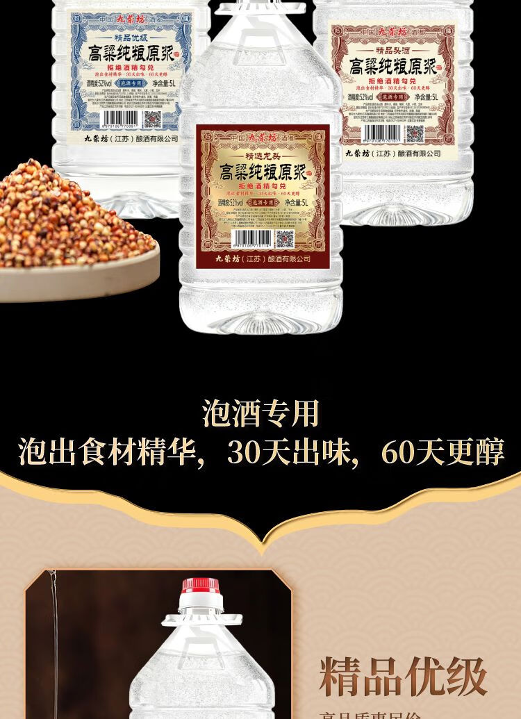 九荣坊52度纯粮酒桶装白酒原浆高粱酒固态发酵纯粮酒大桶装粮食酒 52度 5L 1桶 【8年窖】浓香纯粮自饮+ 中草药组合泡酒专用