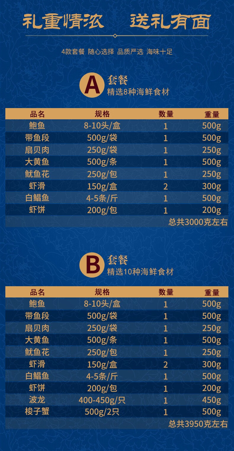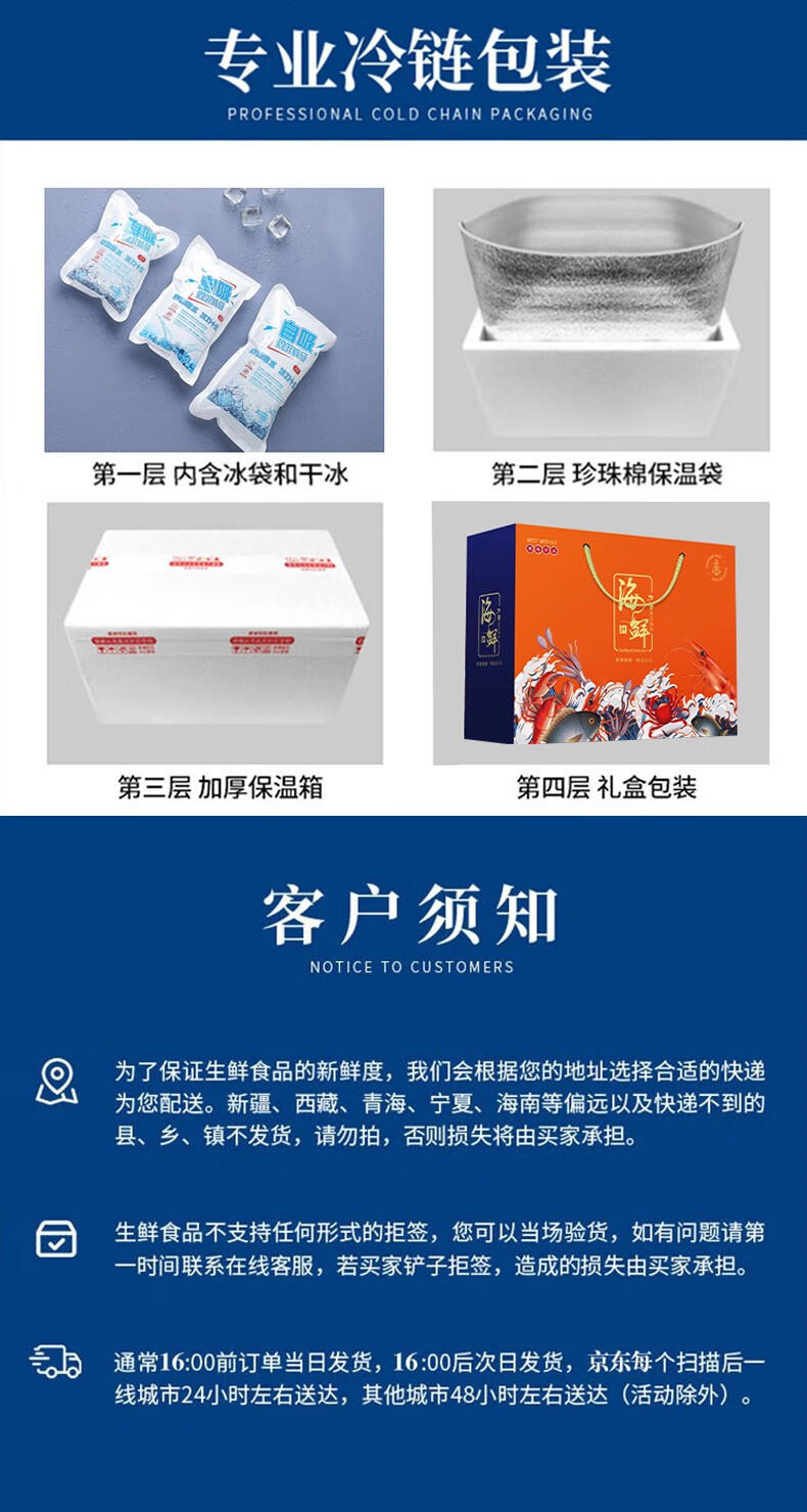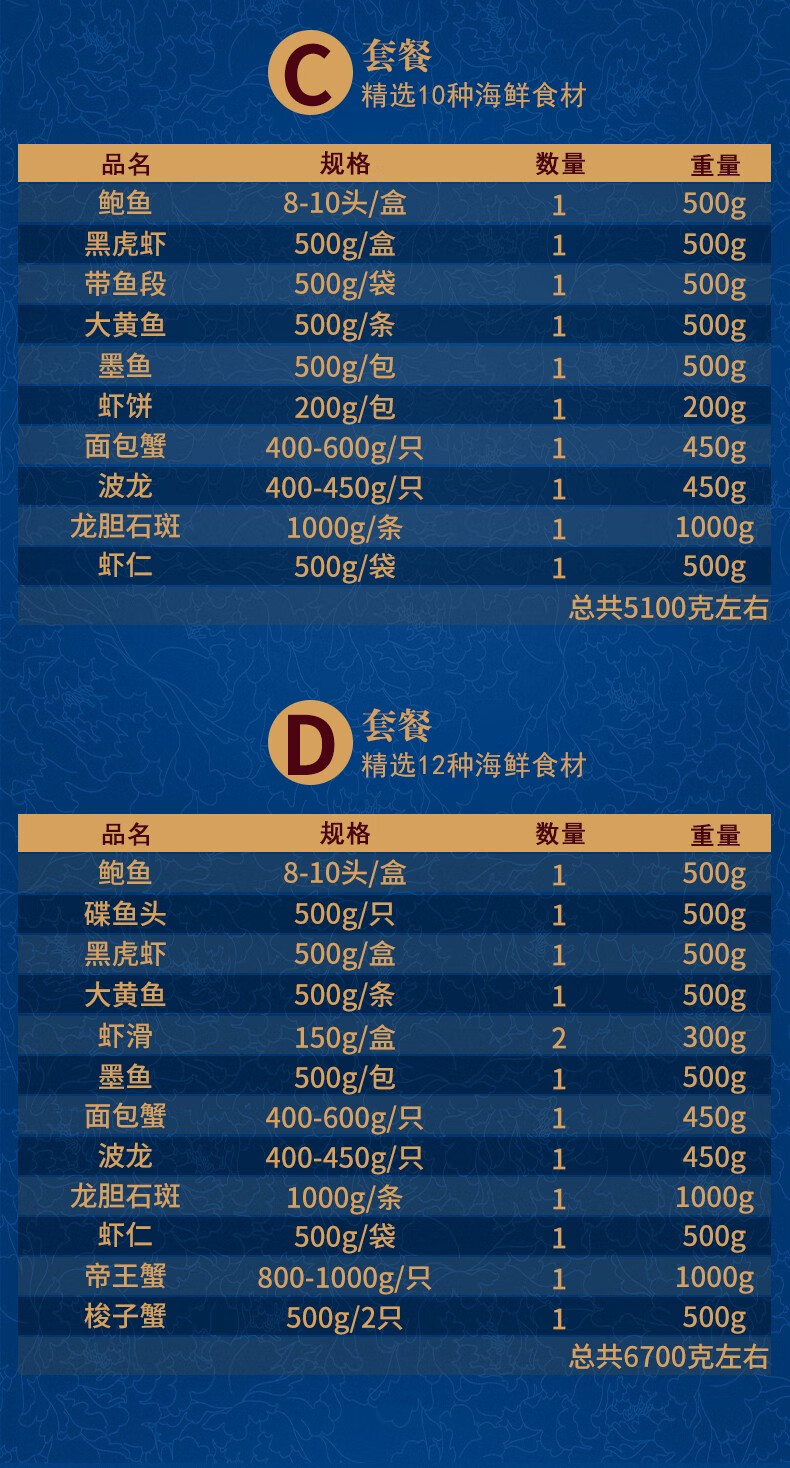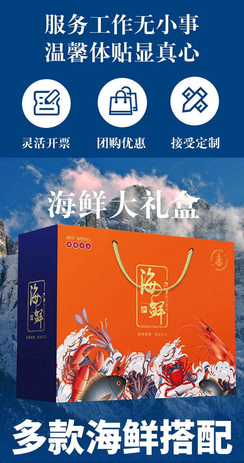 海鲜礼盒海鲜大礼包海产年货礼盒年货节送礼含帝王蟹10种海鲜礼盒 8种海鲜6斤家庭装 含活冻鲍鱼