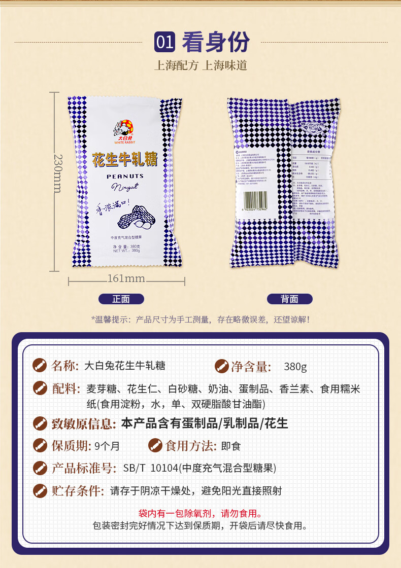 大白兔【采销推荐】 经典花生牛轧糖380g约55颗 糖果零食 喜糖 新年礼物