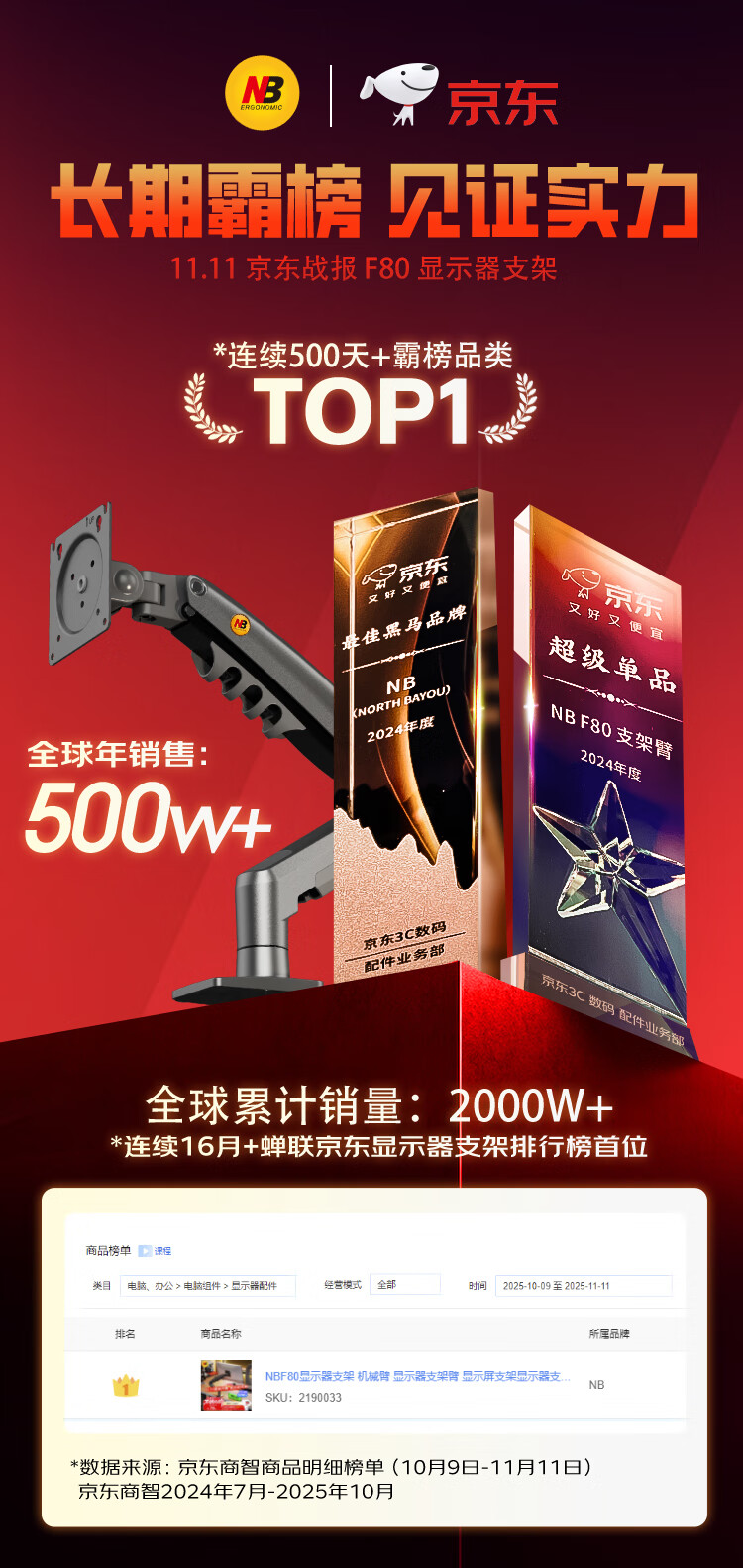 NBF80显示器支架 机械臂 显示器支架臂 显示屏支架显示器支架桌夹式电脑支架电竞卓威显示屏幕增高架