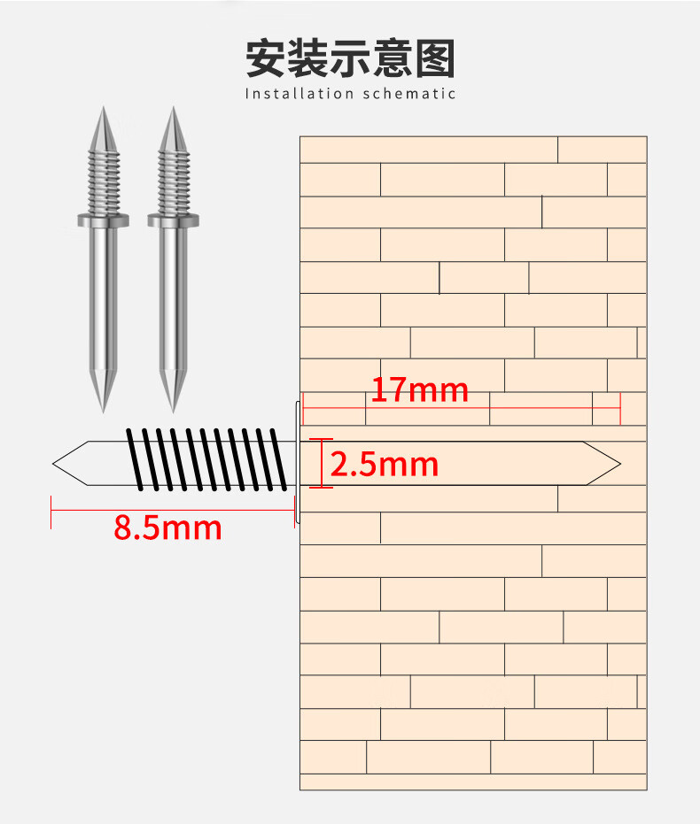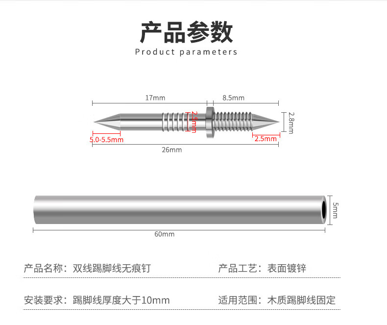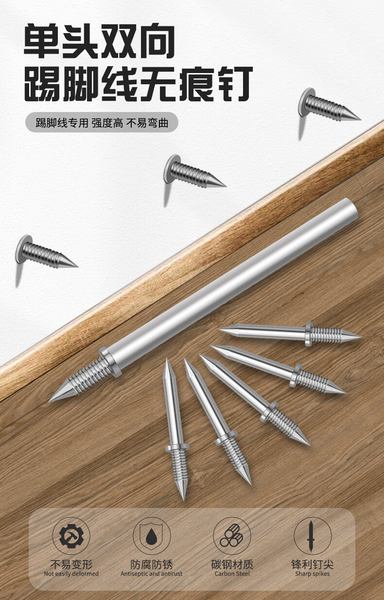嘉顺迪双向无痕钉羊角钉实木踢脚线钉子木工单头双头无头钉反扣两头尖钉 100颗装- 送1个套筒